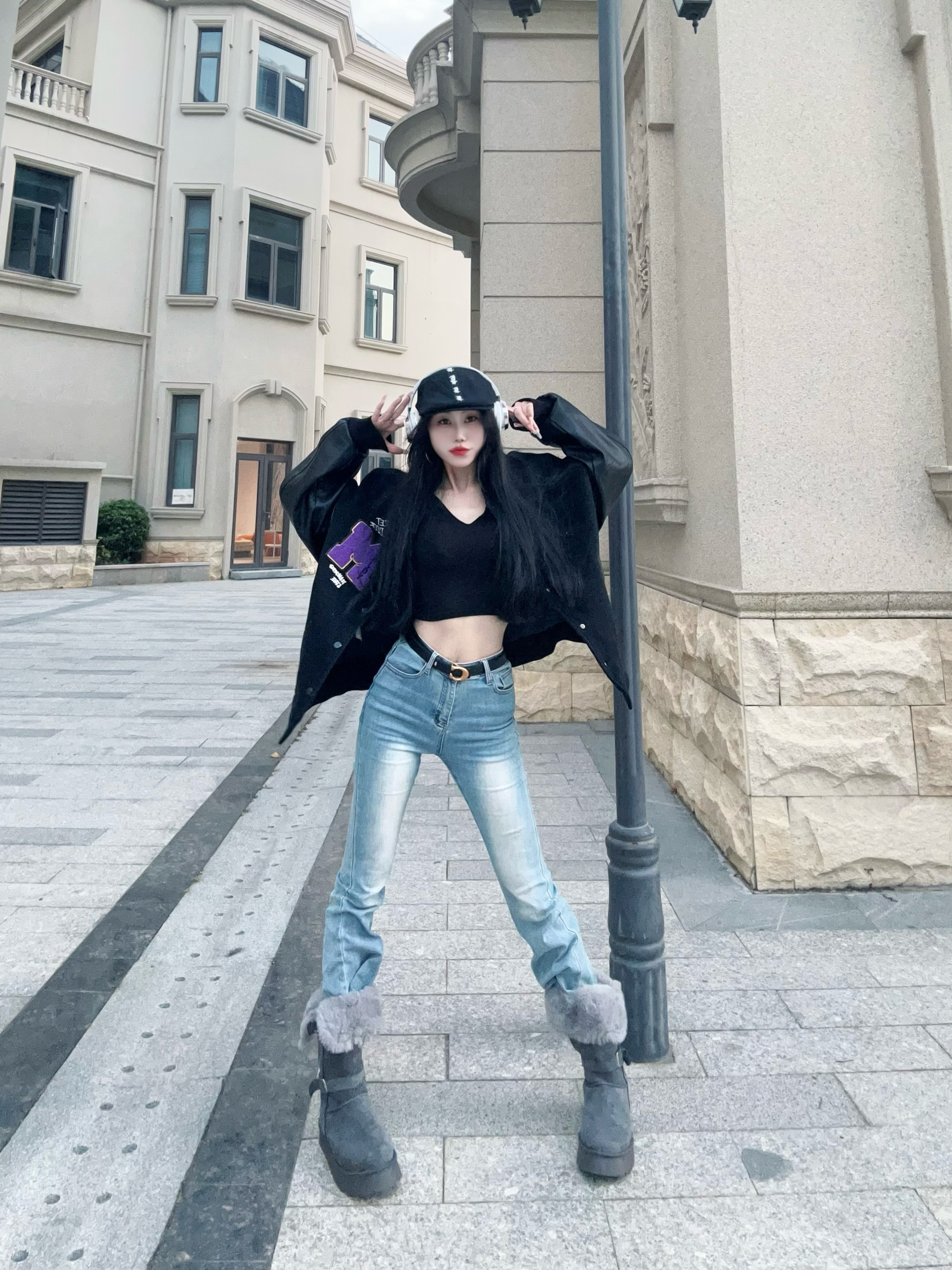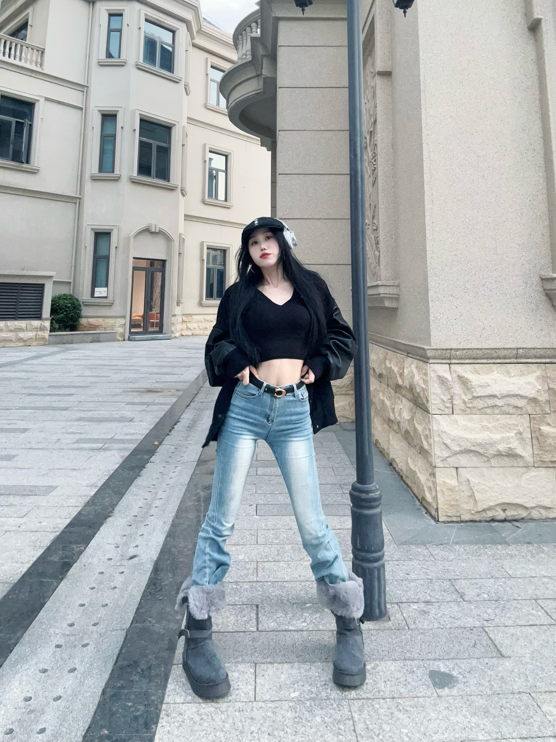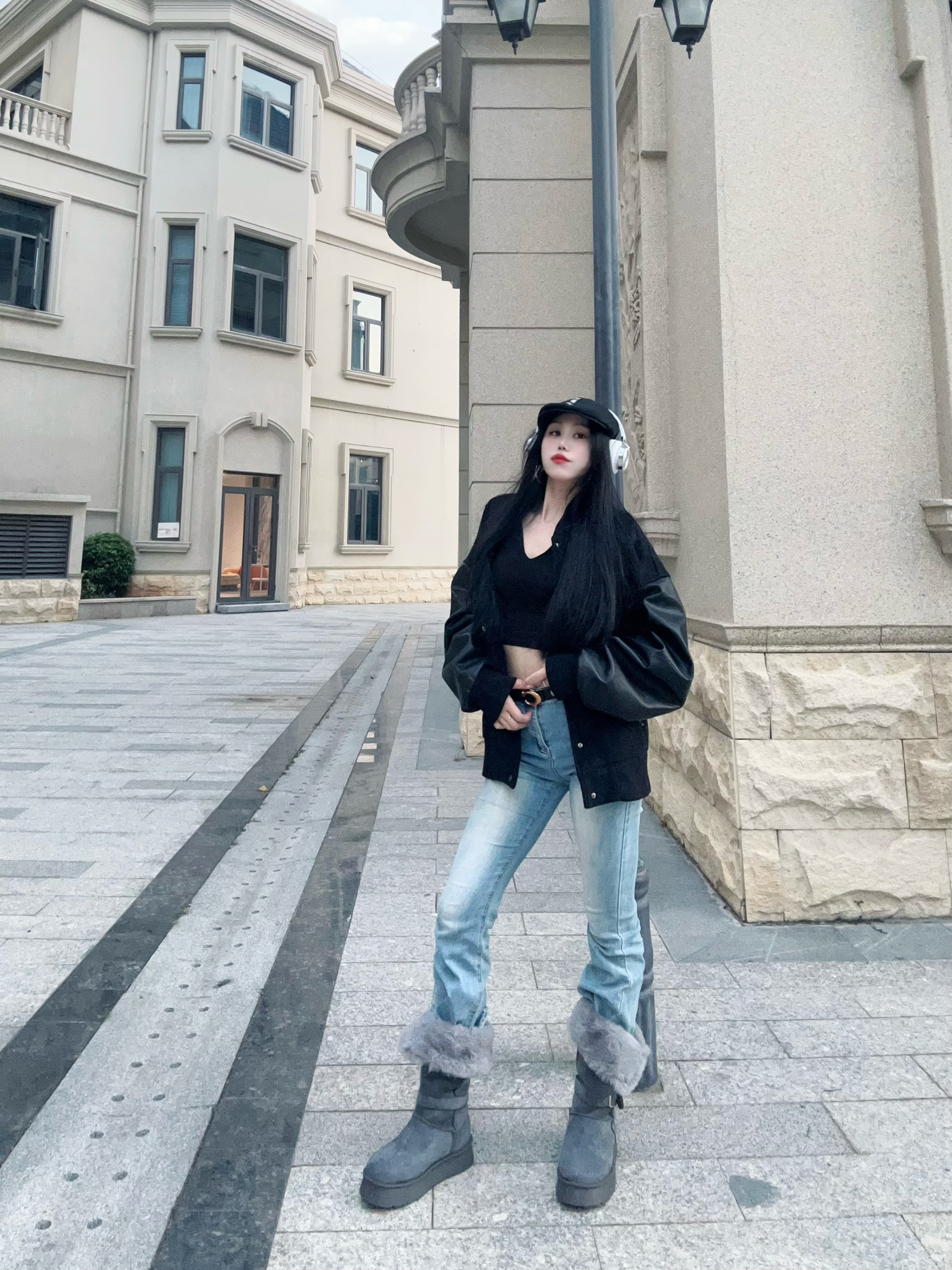 冬日出街从头暖到𝙟𝙞𝙤👣 性感好看又很有张力 随性高冷 却时髦感十足 - 今天的𝙤𝙤𝙩𝙙我真的好喜欢 紧身微喇叭牛仔裤👖搭配灰色长靴👢 裤腿塞进毛绒绒的靴子里面 小腿以下一下子就暖到要出汗 - 而且这个靴子还有两种穿法 全立起来真的无敌保暖 折一半下来露出毛绒绒的边边 视觉就暖和了很多呀🤩 鞋底防滑又耐磨 还自带增高效果 冬天穿它踩雪❄也不怕打滑 - 上衣搭配的紧身长袖+棒球服 感觉软硬结合...