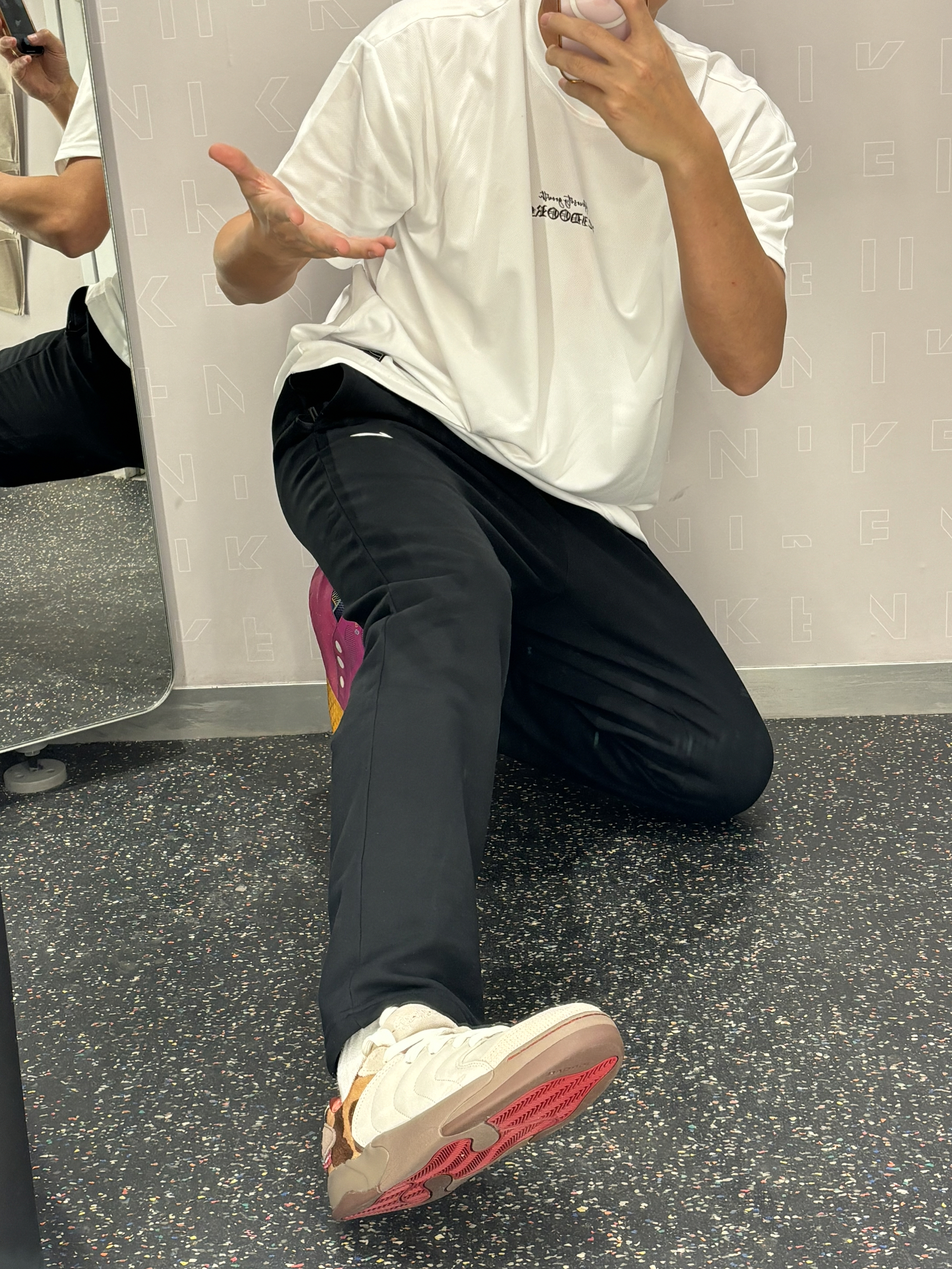 2025年度穿搭关键词我的是:马毛元素 年度衣橱老友记 我的马年老朋友又回来了 后跟的马毛设计这个也是耐克经常使用的元素了 米白色搭配红色很显眼 黑色直筒裤 搭配白色简单的短袖 很干净阳光的一身穿搭