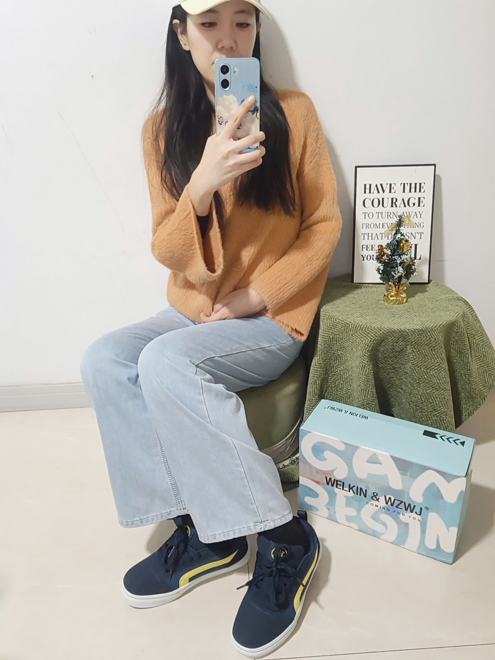 老公嘲笑我结了婚以后不温柔…… 今天出门就走一走浅色系的淑女温柔路线🤗 毛茸茸的荷叶袖毛衣 柔软舒适的风度里又不是温度 随便穿条浅色牛仔裤👖就已经很温柔了! 踩上最近很💥的跳色板鞋👟 这种藏青撞黄还真的别🈶一种风格! 加宽的鞋楦对我这种拇外翻的人来说真的不要太友好~ 这个季节出门压街怎么能少了棒球帽 果然浅色系就是这么减龄❗