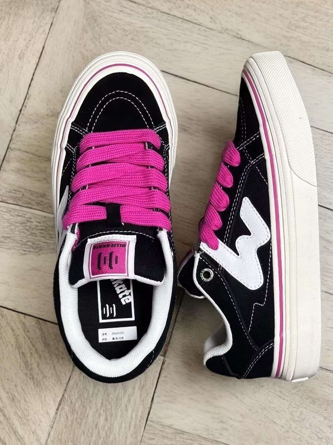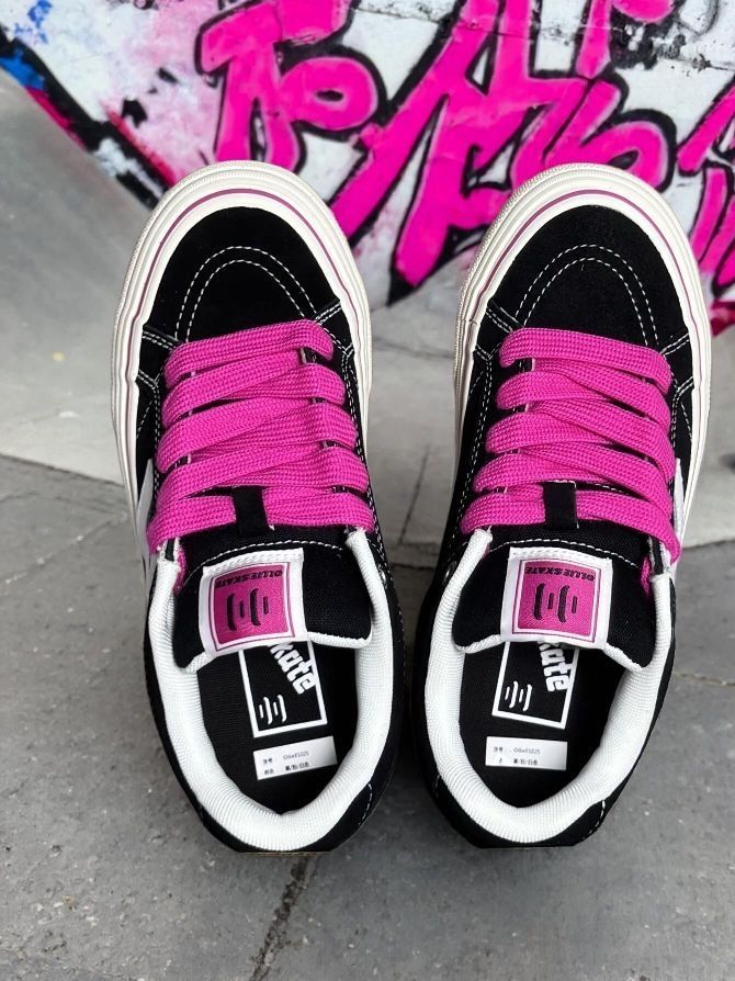 黑色鞋面搭配火龙果色鞋带真的小众又吸睛👍🏻👍🏻穿着还不容易撞款😍太爽了…… 有人觉得板鞋鞋底一定会硬 No这个完全不存在😚上次在学校🏫操场跑了四圈,没有不适感👀搭配裤子绝绝子