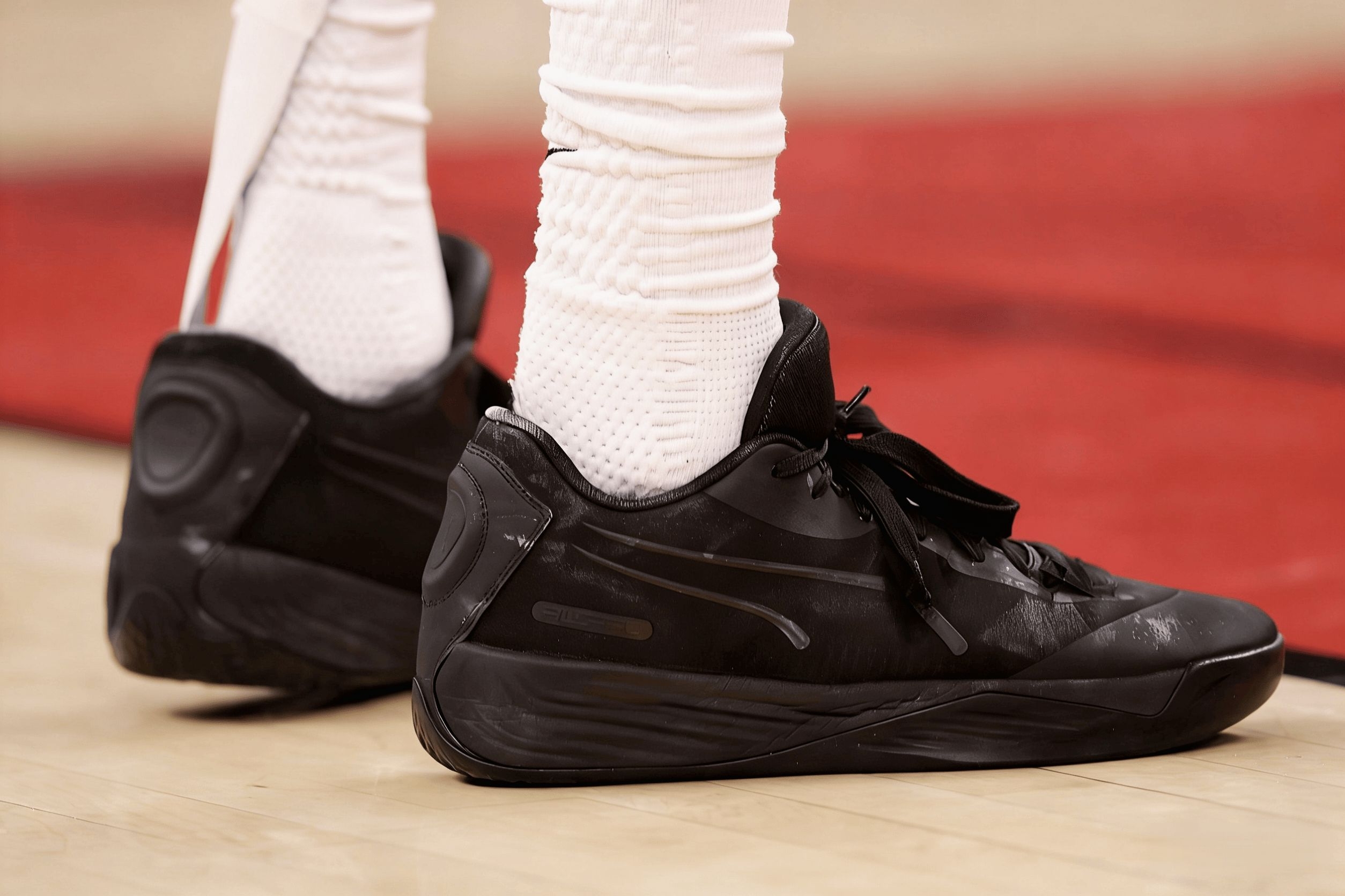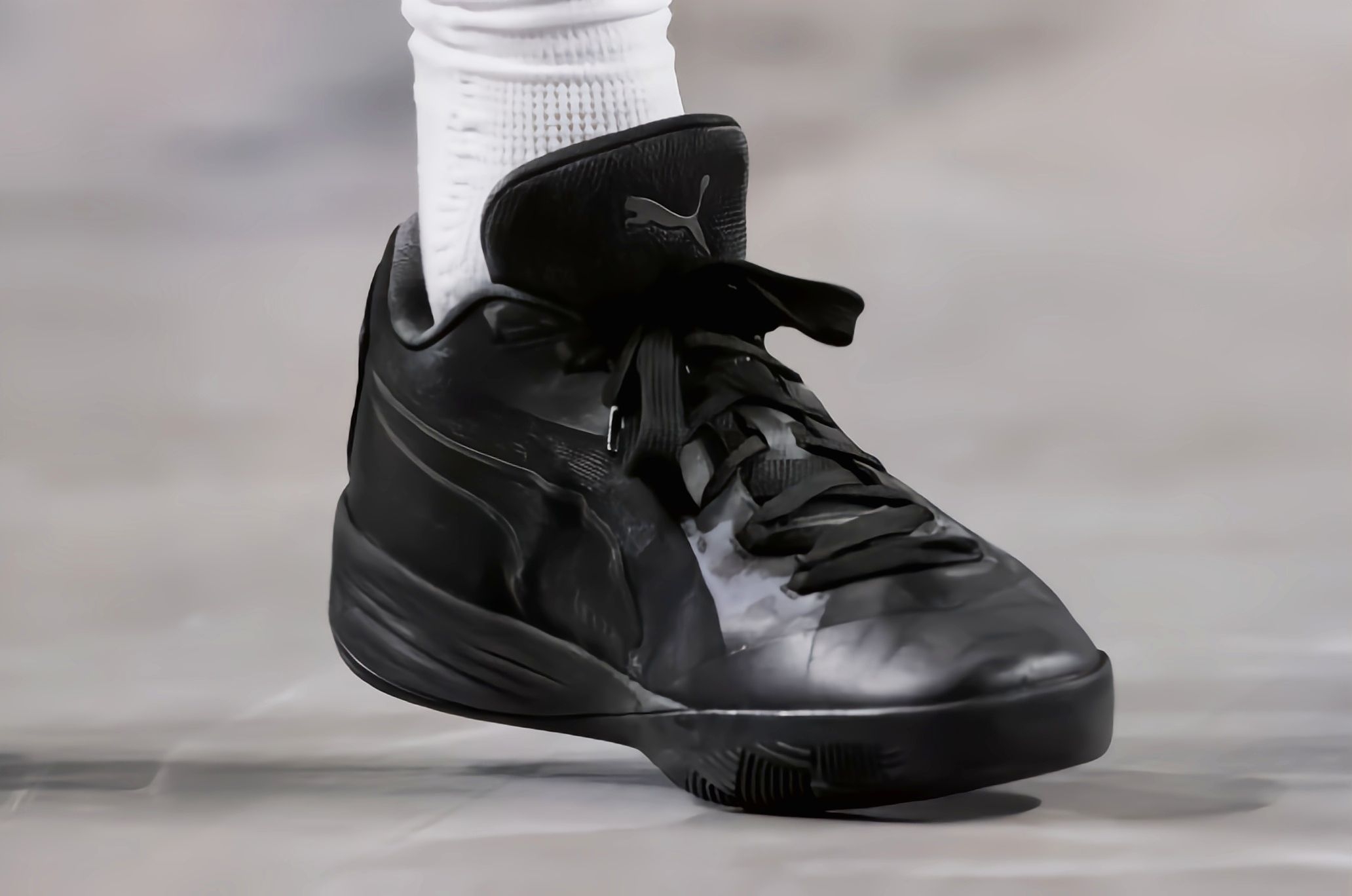 看篮网的比赛镜头,小波特上脚的这双Puma All-Pro Nitro,抓地表现从赛场画面里能看得一清二楚。全黑的鞋身搭配的是人字纹外底,纹路深度和排布在木地板赛场的视觉里很规整,没有花哨的设计,主打一个实用。 比赛里小波特多次做连续变向、急停横移的动作,镜头下能看到他的鞋底和地板接触时没有出现打滑的迹象,哪怕是快速启动再突然制动,鞋子也能稳稳贴住地面。甚至在有轻微汗水的赛场地板上,他做突破第...