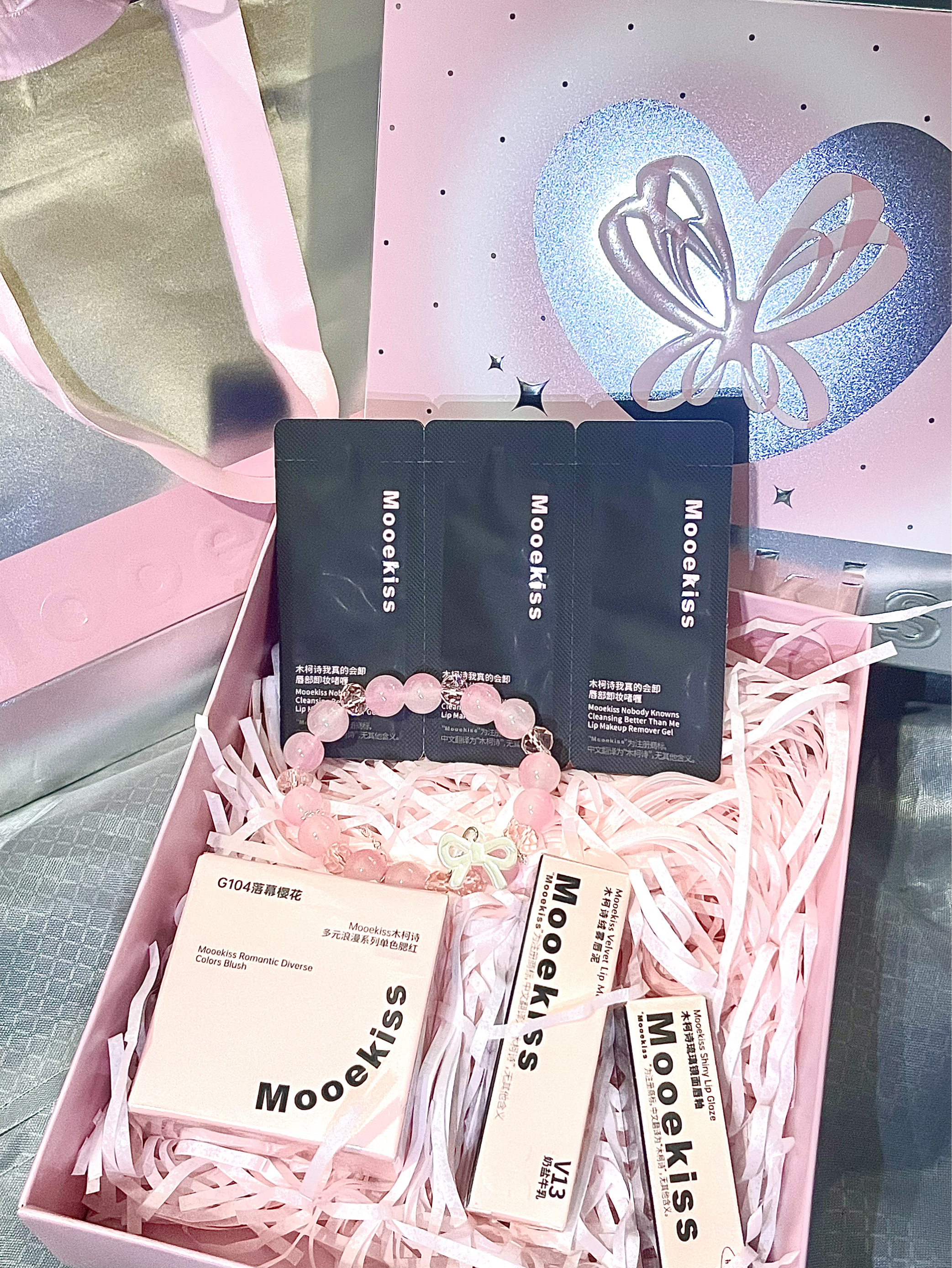 木柯诗这个礼盒真的太戳我的少女心了🎀 一打开包装粉粉嫩嫩的!! 腮红膏色号特别低饱和🥹 对新人特别友好,不用担心涂多成猴屁股 唇泥色号完全不会出错 素颜都能驾驭得住~ 拿来送礼也非常拿得出手 包装特别高级