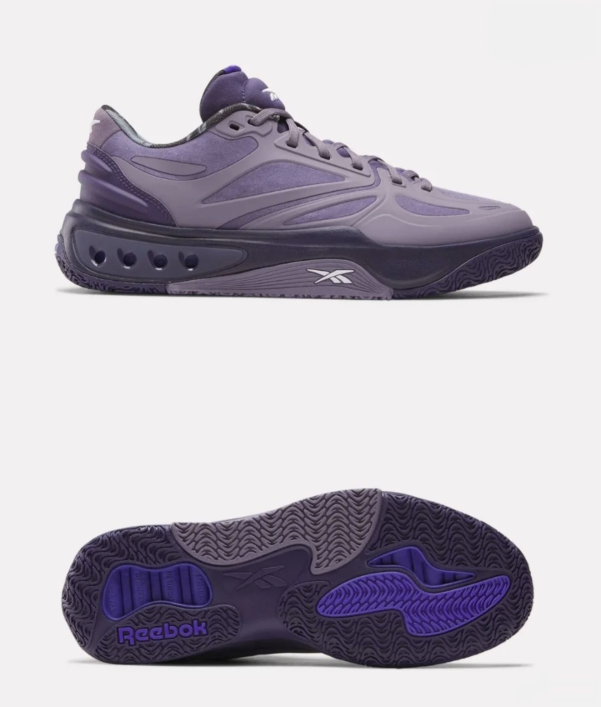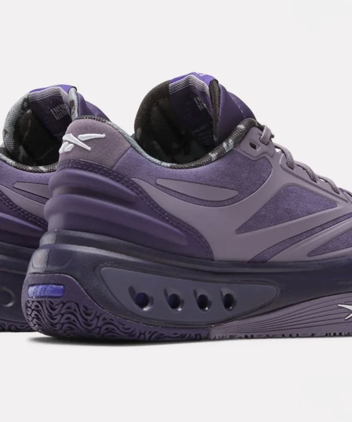 外观设计 1. 配色质感:以「Purple Fusion」紫调融合为核心,低饱和灰紫哑光质感覆盖鞋身,深浅紫的层次渐变营造出低调的高级感,小众配色不撞款。 2. 造型线条:流线型低帮鞋身搭配棱角分明的分层设计,鞋侧锐化线条勾勒出前卫的未来感,后跟立体轮廓进一步强化视觉张力。 3. 细节巧思:鞋侧的锐步logo低调融入鞋身,中底透明气垫窗形成视觉亮点;鞋底的撞色紫纹路与鞋身主调呼应,从鞋...