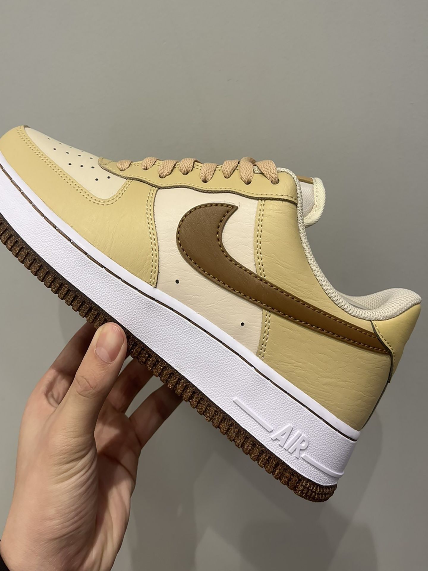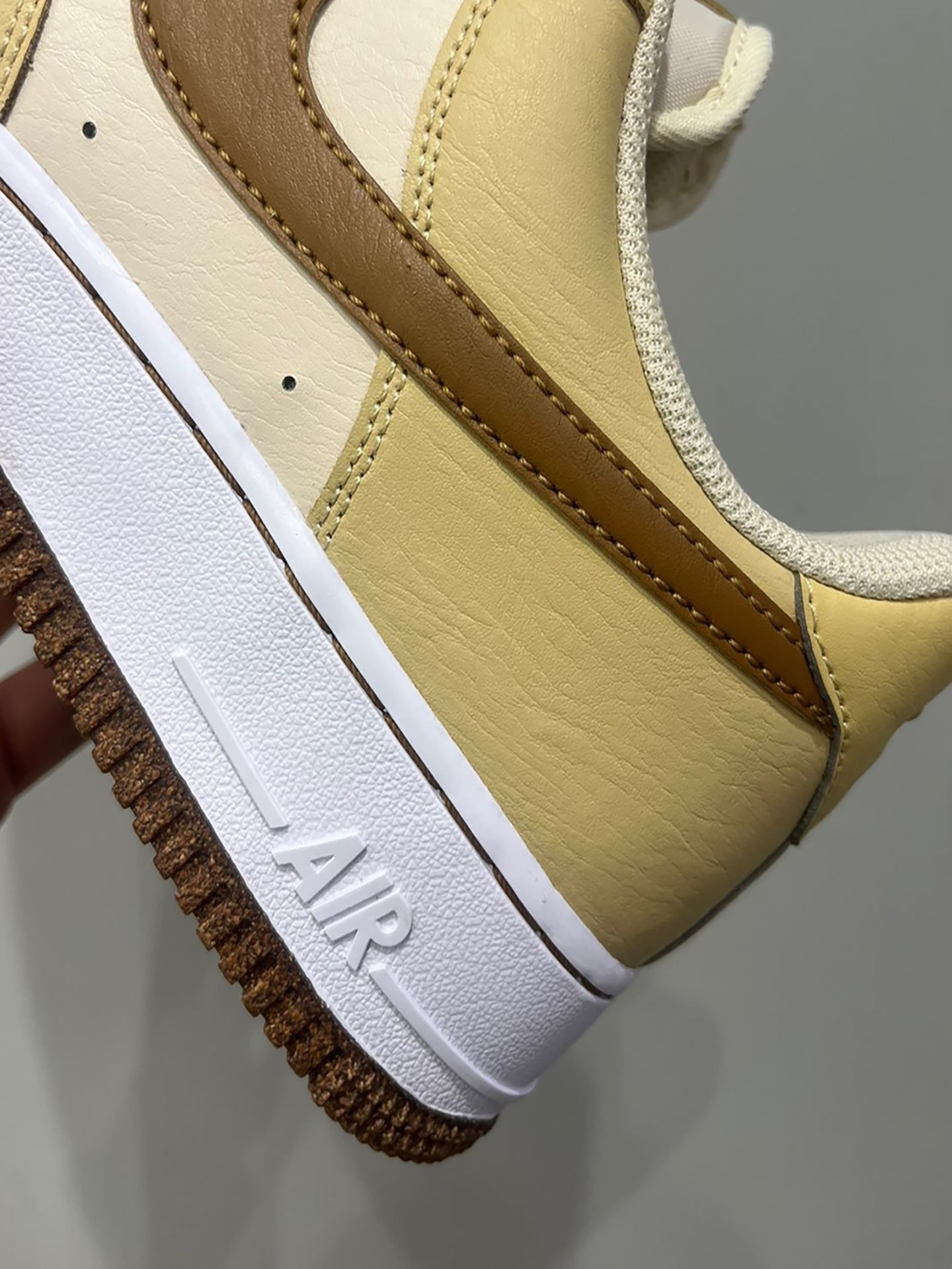 颜色很适合冬季的一款AF1~配色整体白棕色,很耐看🌟 鞋面是光滑的皮革🍩,脏了一擦就干净,很好打理 刚入手的时候,我开心的穿着它在公园逛了一大圈,搭配身上穿的白色休闲服,整个人看起来很时尚,朋友也夸我选的鞋子好看。而且我穿着它走了一天,脚感很舒服,一点也不觉得累脚 需要注意的是⚠️,新鞋的鞋底会有点偏硬,穿几天就会好很多 小伙伴可以参考下呦~