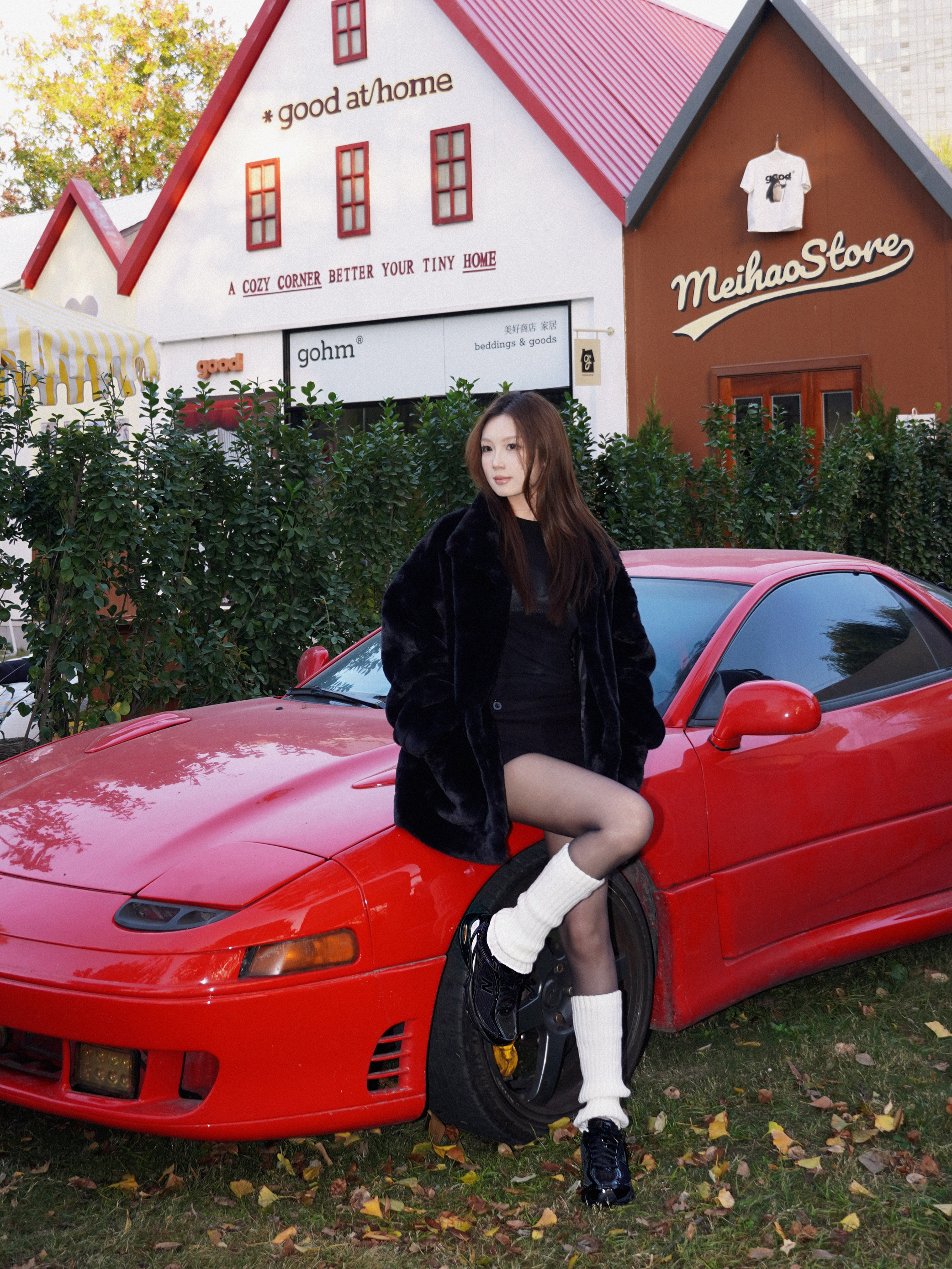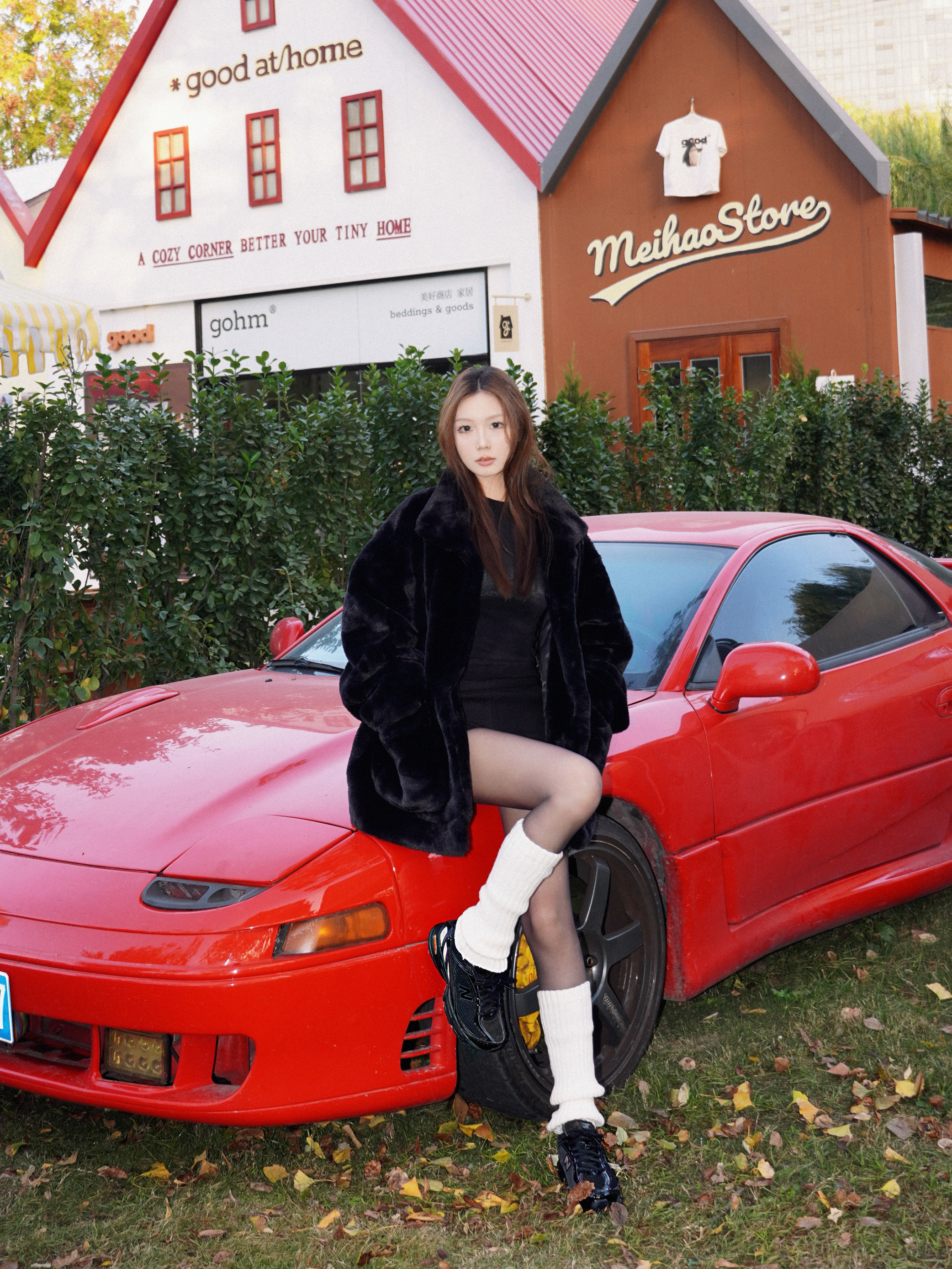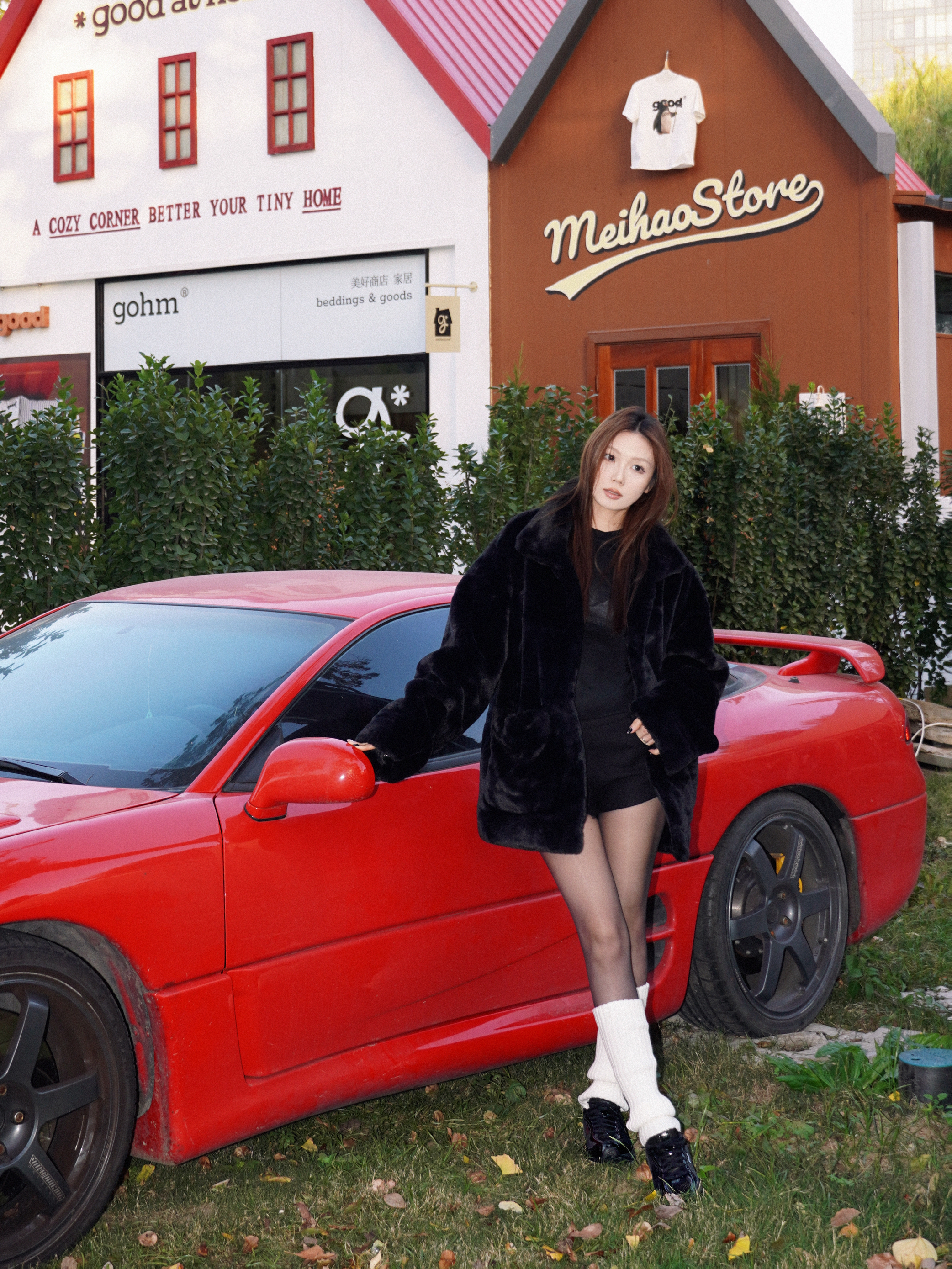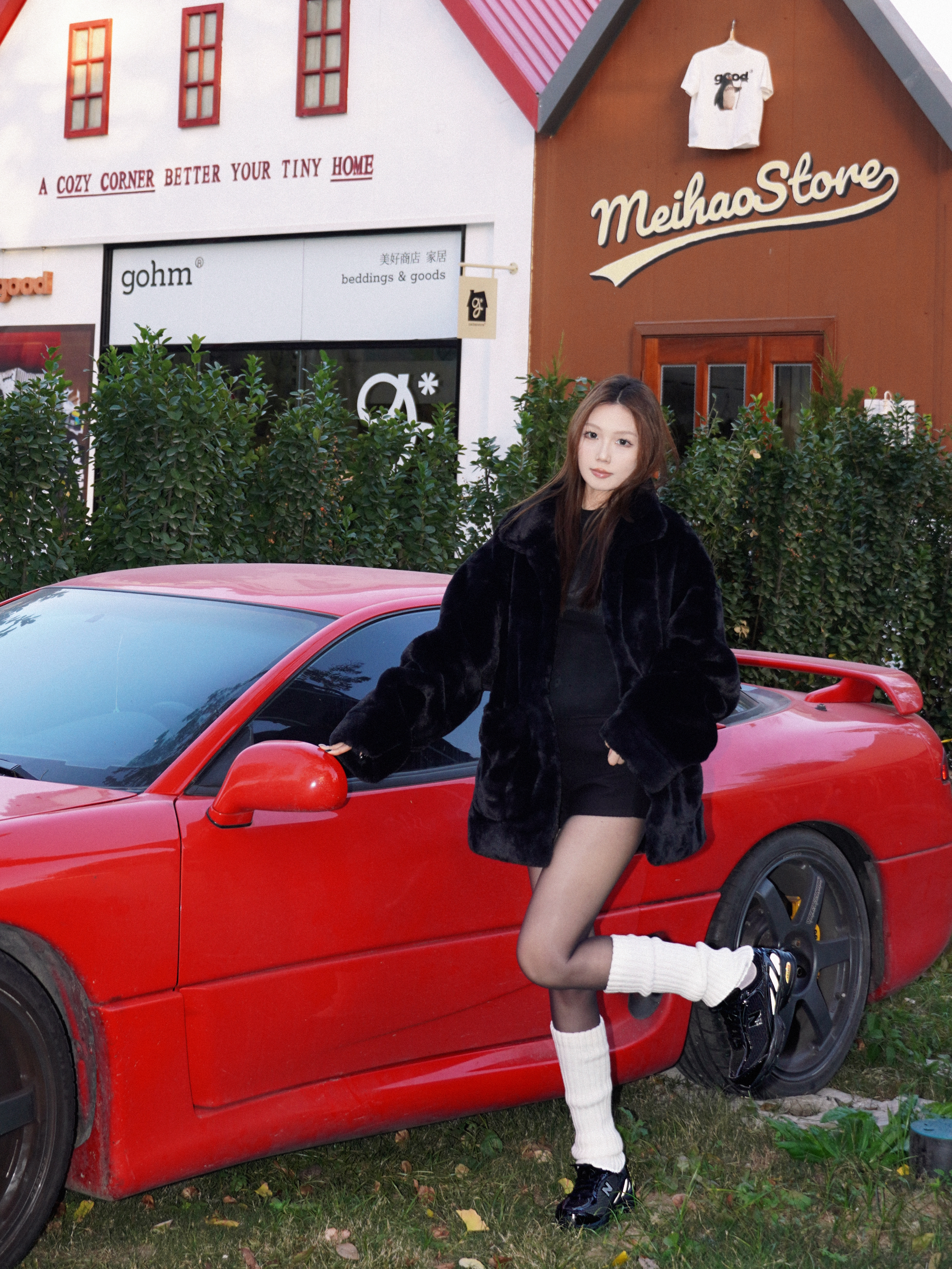all black被复古红色轿车衬出高级电影感🎬 随手一拍就是美剧女主角现场 就算是一身黑也可以穿出穿搭的层次感❄️ 宽松的皮草最容易混搭出高级感 内搭选择紧身的黑色T 不会太臃肿 下身的黑色丝袜搭配白色堆堆袜🧦 既保留了性感又凸显了层次 不会太沉闷🔥 黑色针织短裤很好的衔接上下穿搭 穿一双黑色跑鞋 用基础单品混搭出高级感🖤 皮草的贵气与运动跑鞋的随性 时髦毫不费力 📸 拍照场景选对了真的加分💯 ...