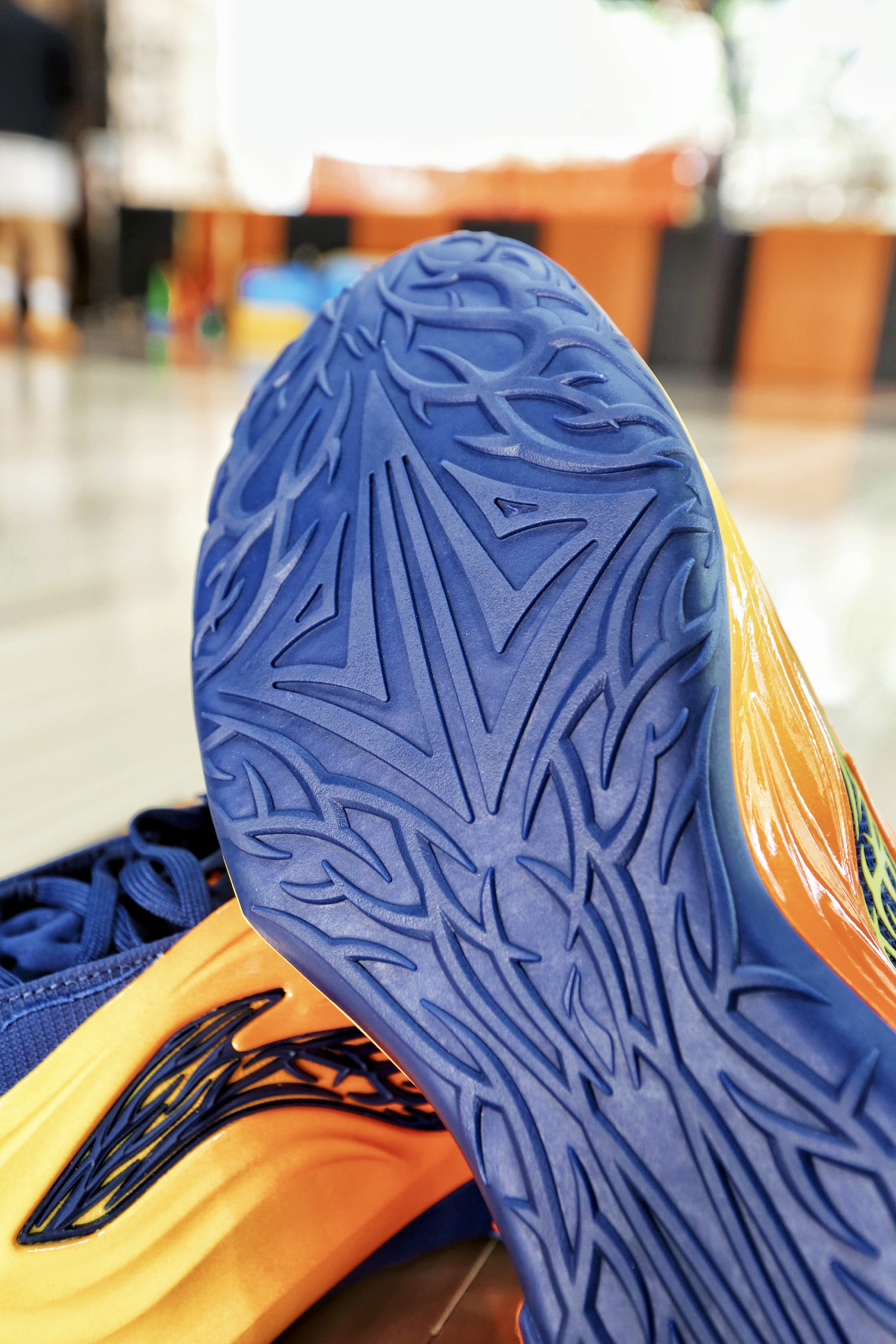 李宁巴勒特JB4-湾区之刃 鲜艳高饱和度的黄橙渐变鞋面,球场上绝对是吸睛点。 但有一说一,不吹不黑。 上脚感重心适中,缓震不错。 鞋头翘起本来是为了更好的推进, 但这鞋身真的硬,需要起码打好几场才能打开脚感。我兄弟160斤上脚都说这鞋刚上脚脚感太硬。所以轻体重的兄弟建议有心理准备。