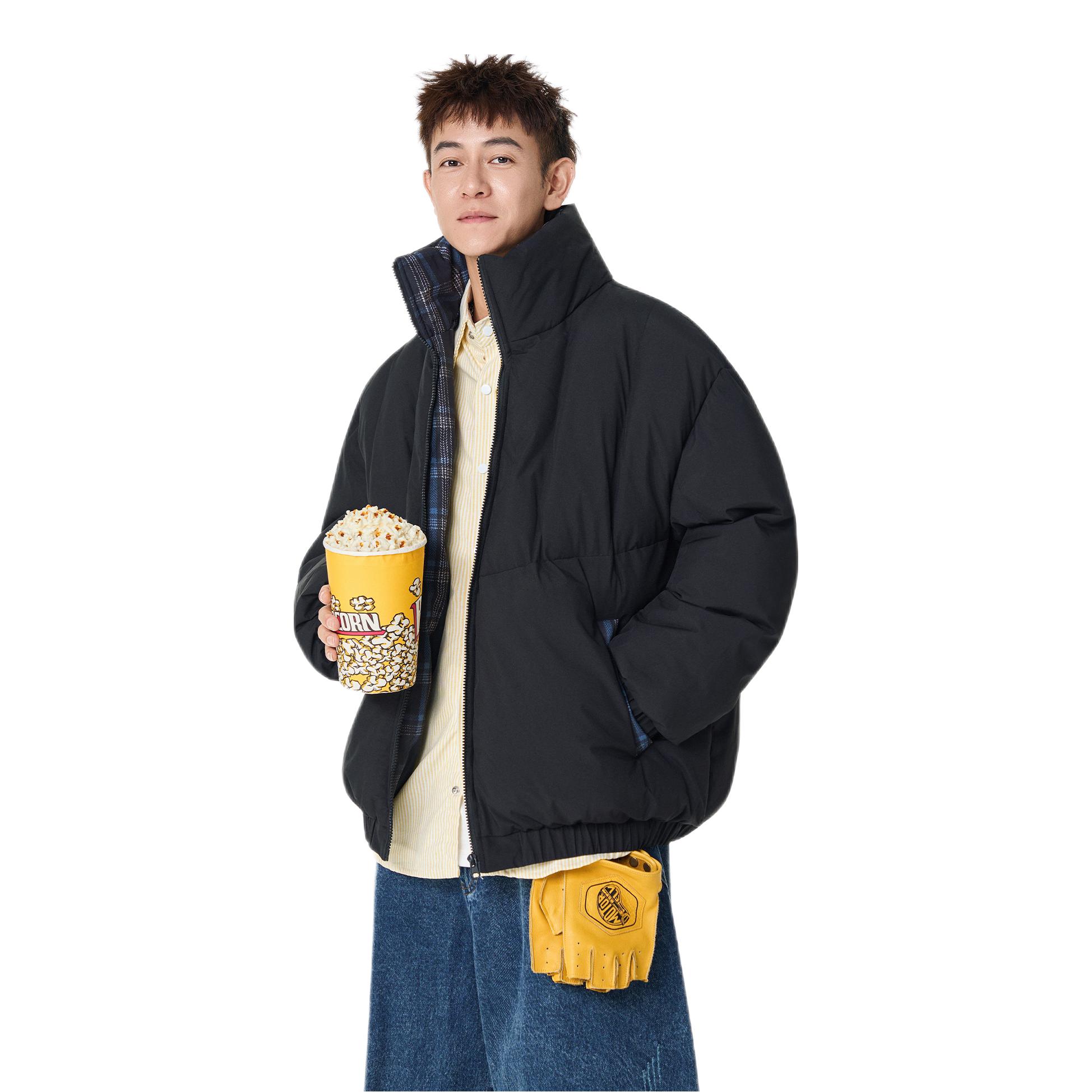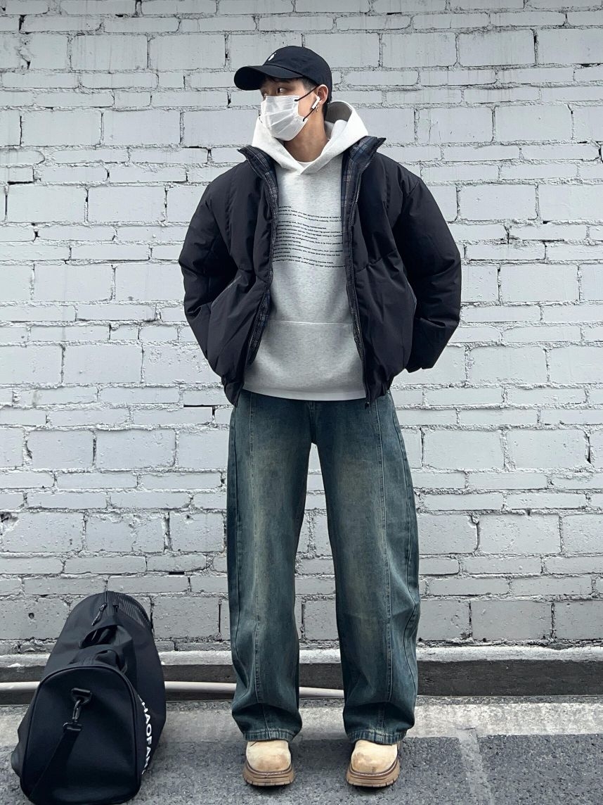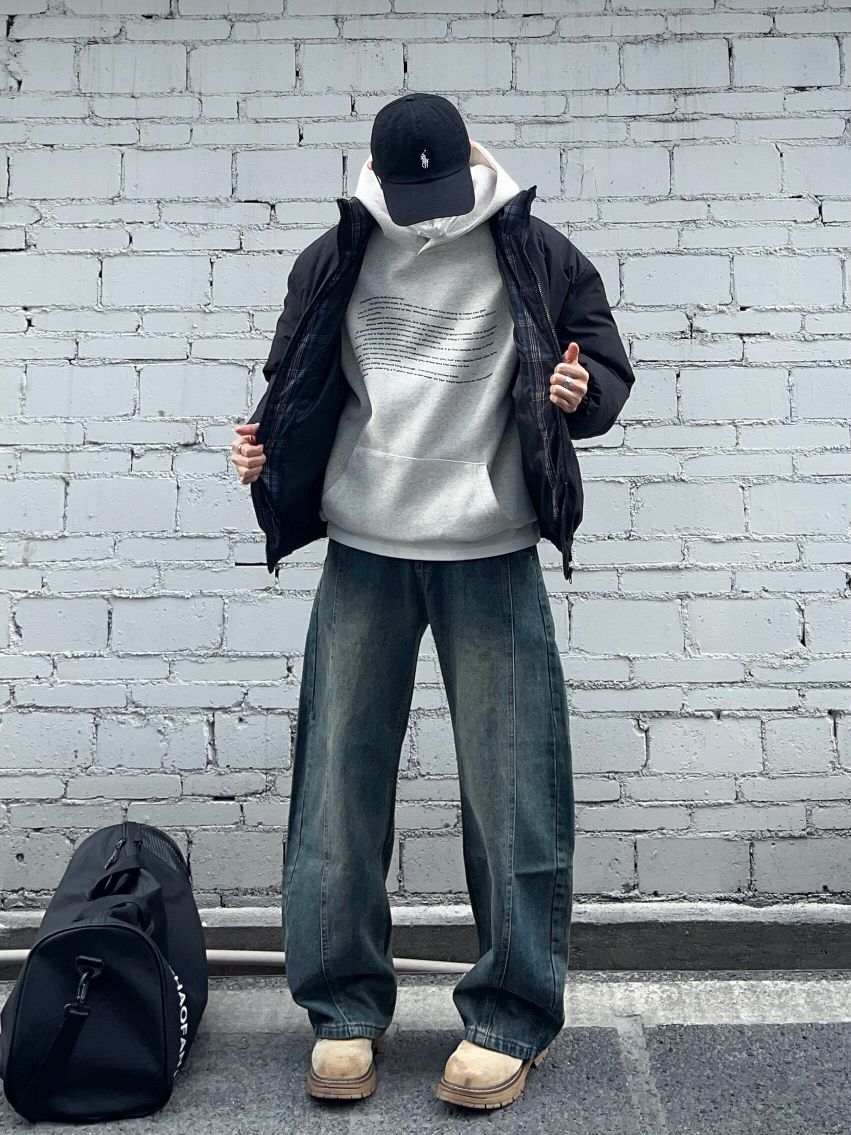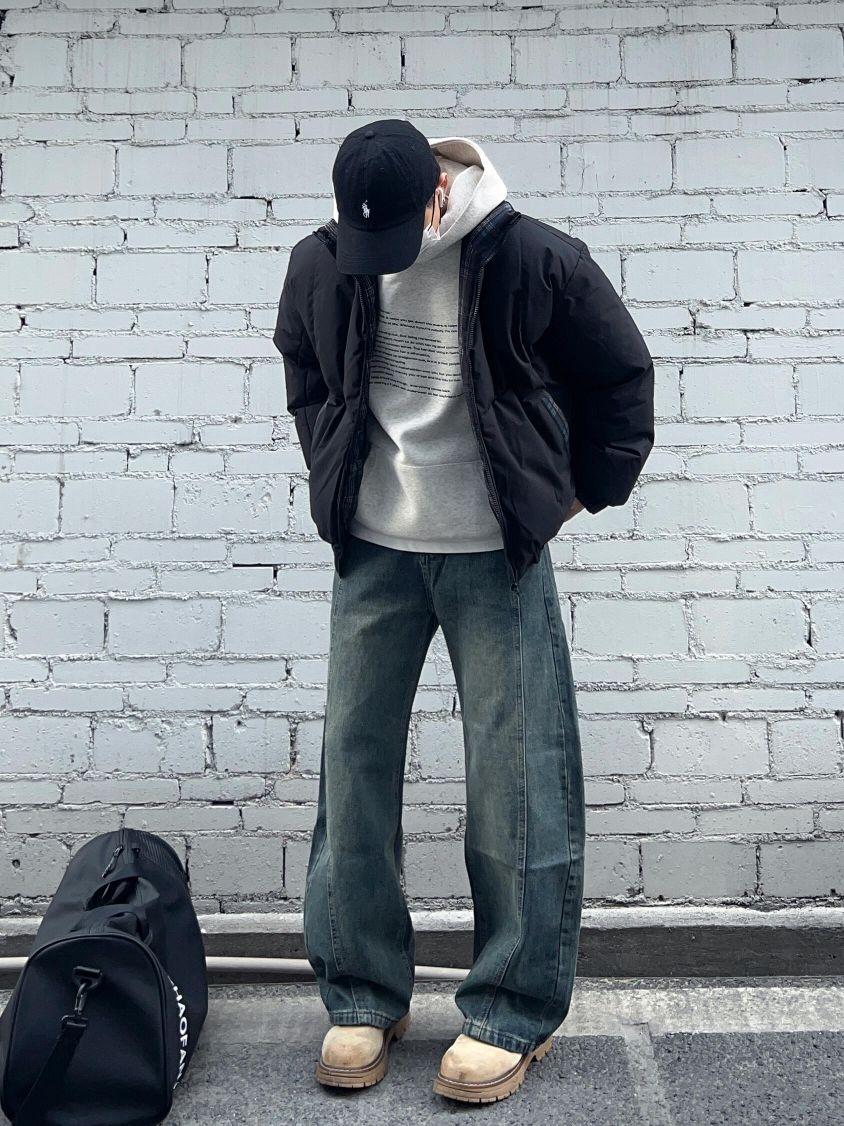 秋冬立领棉服卫衣叠穿||黑色立领棉服+怀旧蓝弯刀牛仔裤 保暖又通勤帅气的一套!