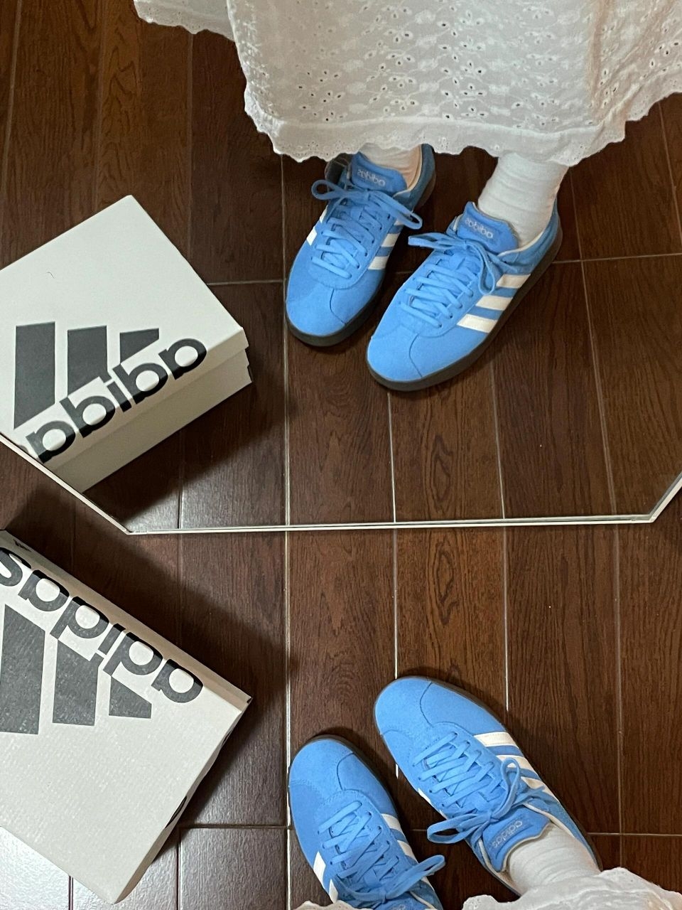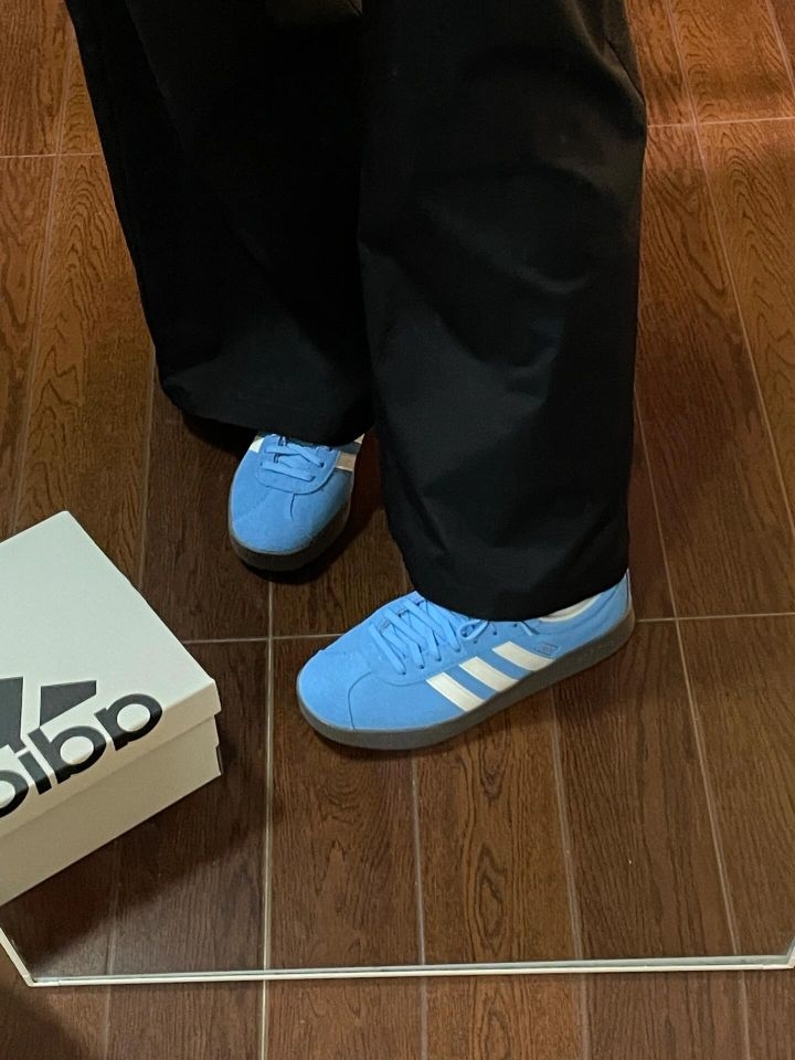 🔥之前很火的gazelle系列蓝色一直没买上,看见这双vl court classsic T头鞋姐秒入! 👟鞋型竟然还不错,显得脚很瘦。一开始有在纠结买黄色还是蓝色,因为没买上gazelle蓝色,还是坚持选择蓝色!这个春夏估计这双T头鞋会焊在我脚上✔️。 🚶🏼对比鬼冢虎,t头鞋脚踩偏硬,但码数很正。