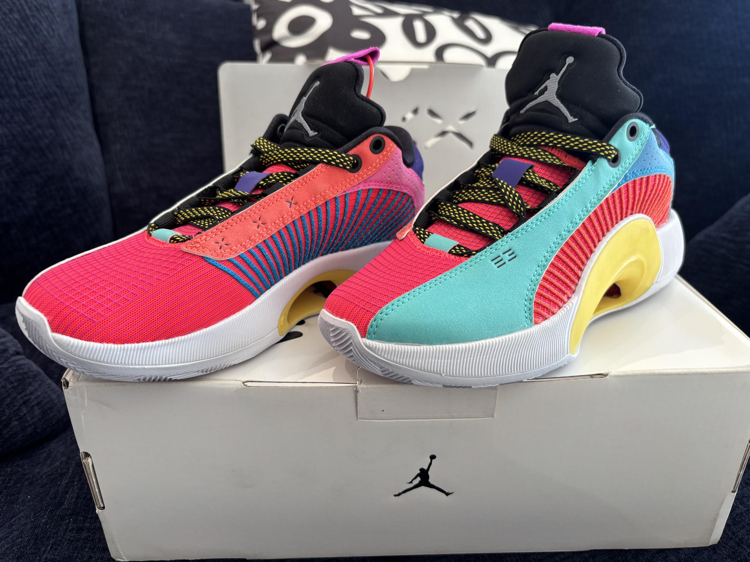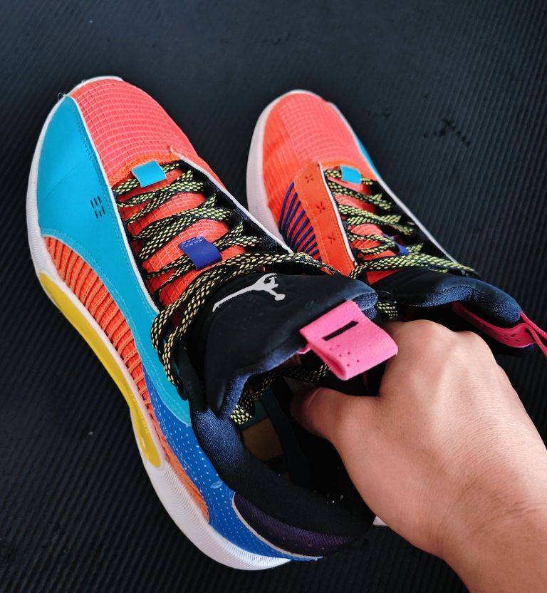 Nike科9 EM版本,取消了碳板,换成TPU,更适合我们普通人穿着,整体重心不高,不算极致贴地,上脚轻快,脚感韧弹,踩下去有反馈。重点是帅,太帅,2014年科比中国行打出名堂上脚,那时初二结束,一眼就爱上了这双鞋,不知道是这双鞋,现在算是圆梦了。