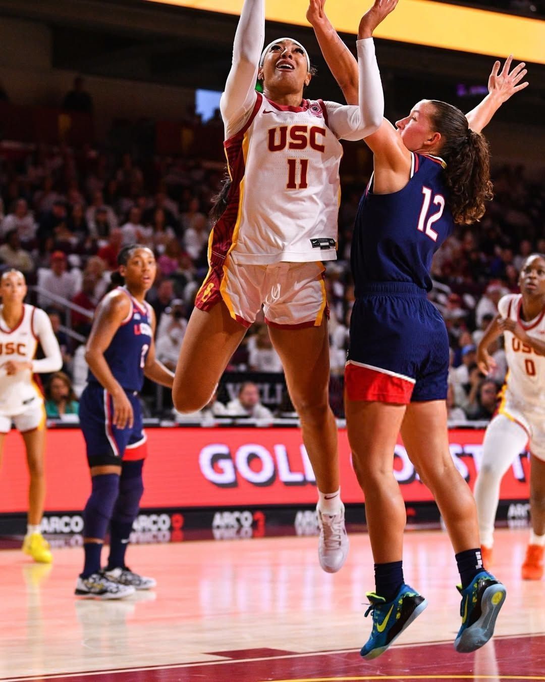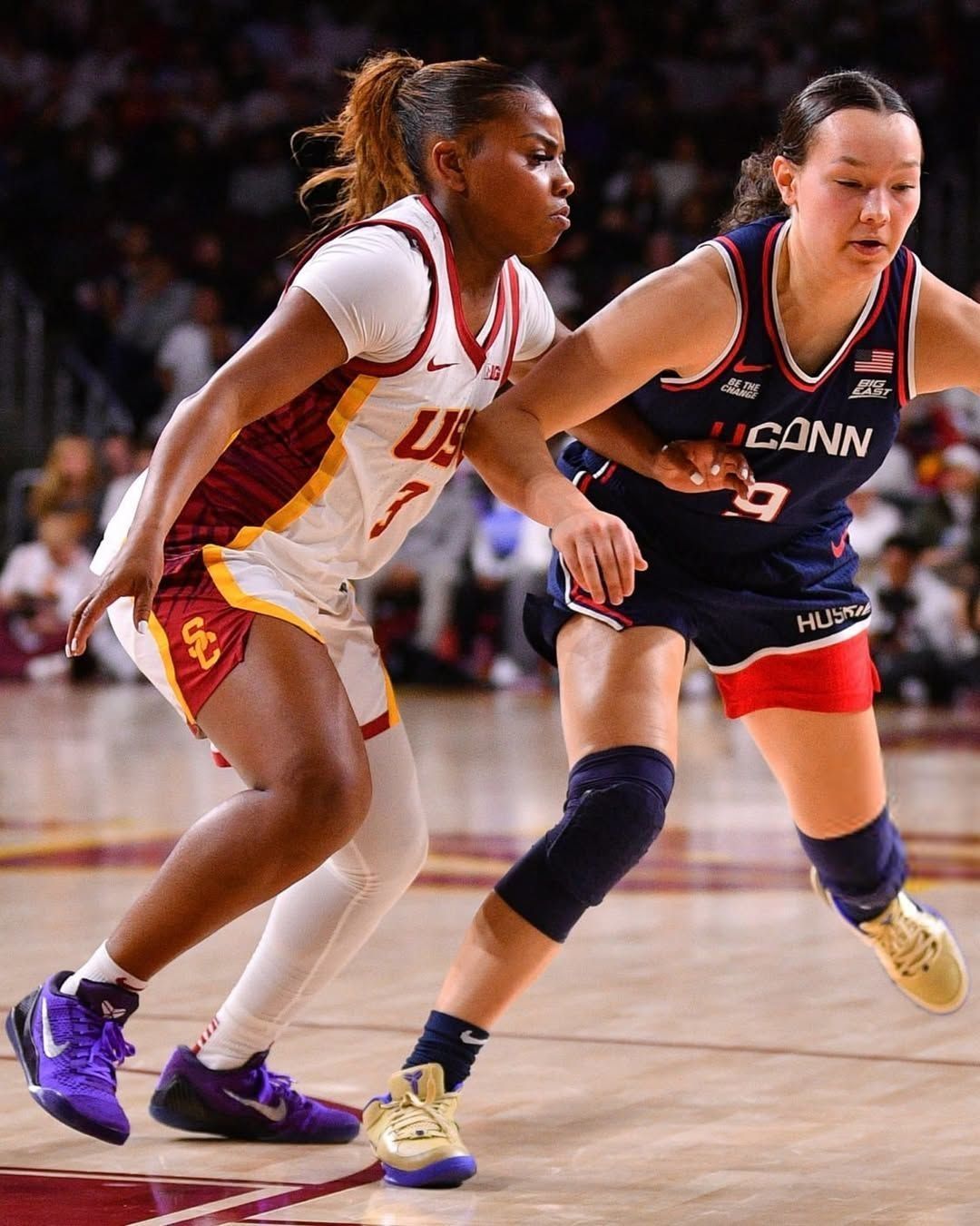 今日NCAA常规赛南加利福尼亚大学主场51-79不敌康涅狄格大学的比赛中,两队的全体球员均穿着不同款式及配色的Nike Kobe系列签名鞋出战,即使是因伤未能出场的球员,也均在替补席穿着科比联名款空军一号观战。同时,两队教练组的所有成员也均穿着科比联名款空军一号进行执教。 两支球队此番举动,旨在表达对科比-布莱恩特和吉安娜-布莱恩特的致敬缅怀,以及感谢科比对女篮事业发展做出的贡献。