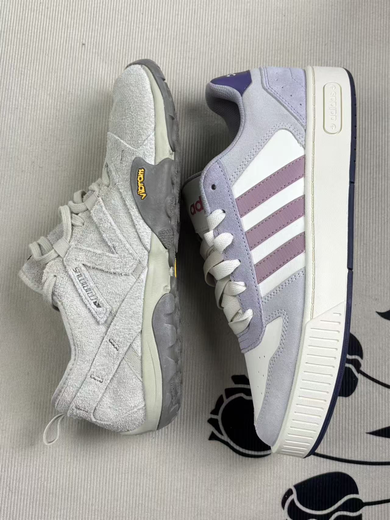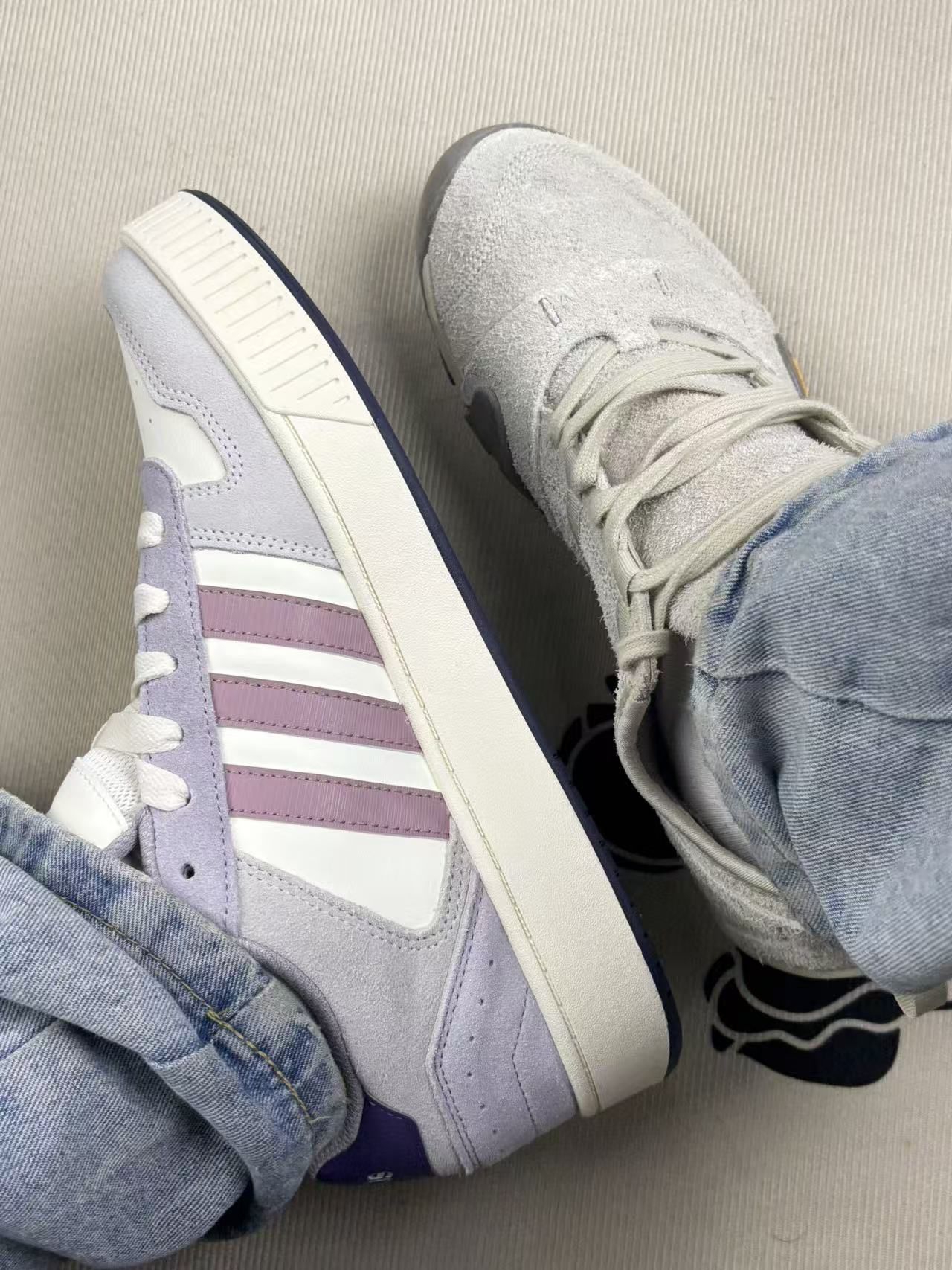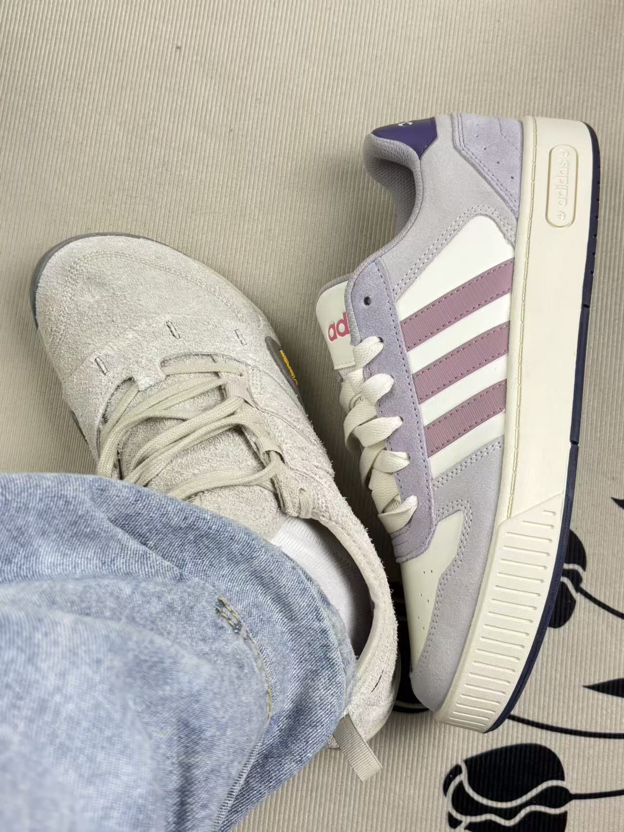 作为学生党,选鞋既要兼顾四季穿搭的实用性,又得踩中性价比和颜值的平衡点,而adidas neo D-PAD CLASSIC和New Balance MT10这两款薄底板鞋,直接把“四季友好”和“学生党适配”拉满。 adidas neo D-PAD CLASSIC的白灰紫配色走的是清新挂,浅灰翻毛皮鞋面自带质感,淡紫条纹和藏青包边做点缀,不会过分张扬,搭校服裤、牛仔裤都毫无违和感。薄底设计轻量化,春...