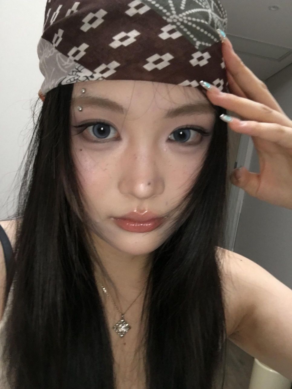 就是头发+头巾+氛围感ccd 脸型遮住就没有脸型了~快准狠 对了还有额头很宽很高的也直接遮住 不要担心头发被风吹开,脸没定妆很粘,头发全黏脸上了