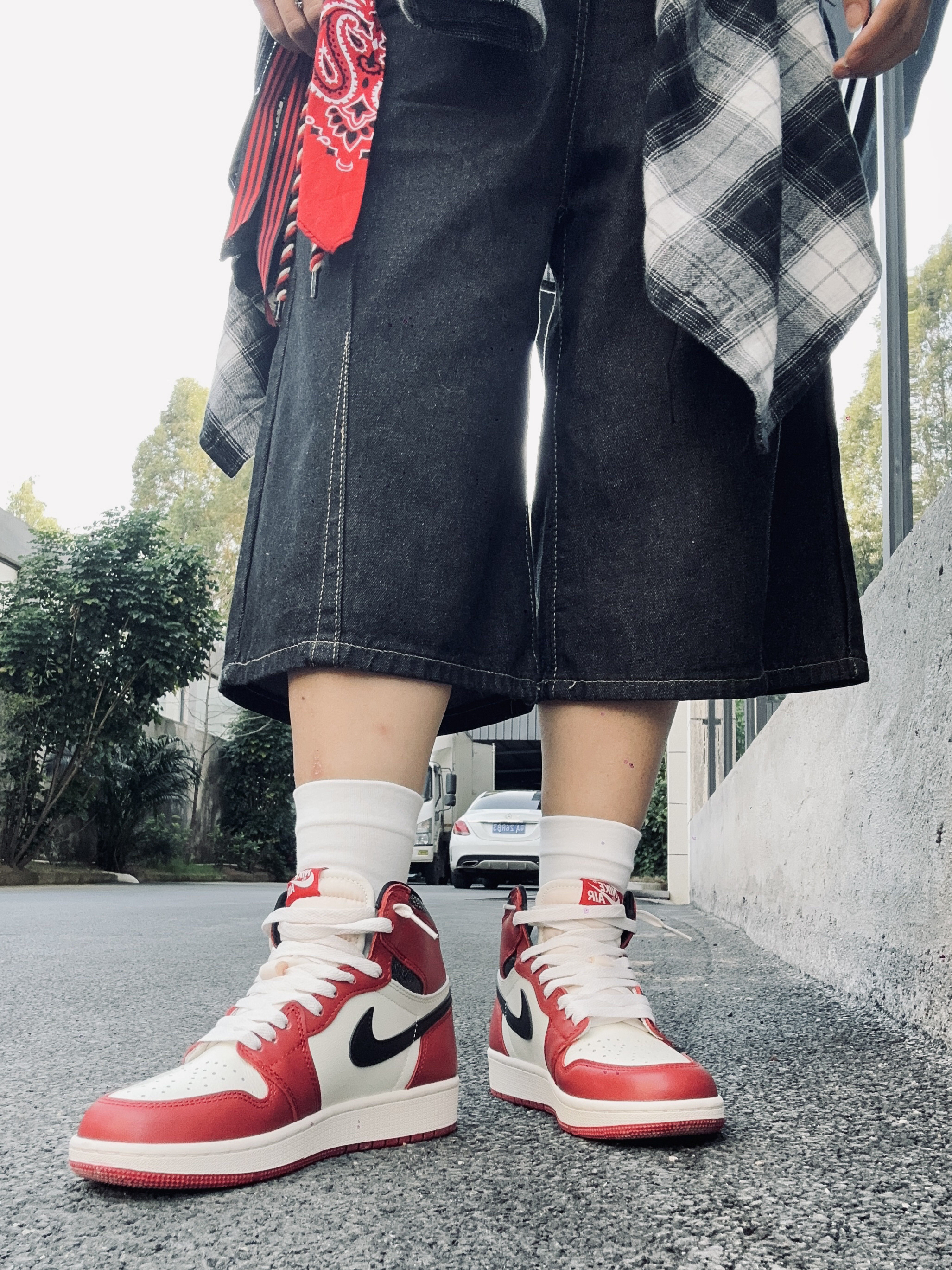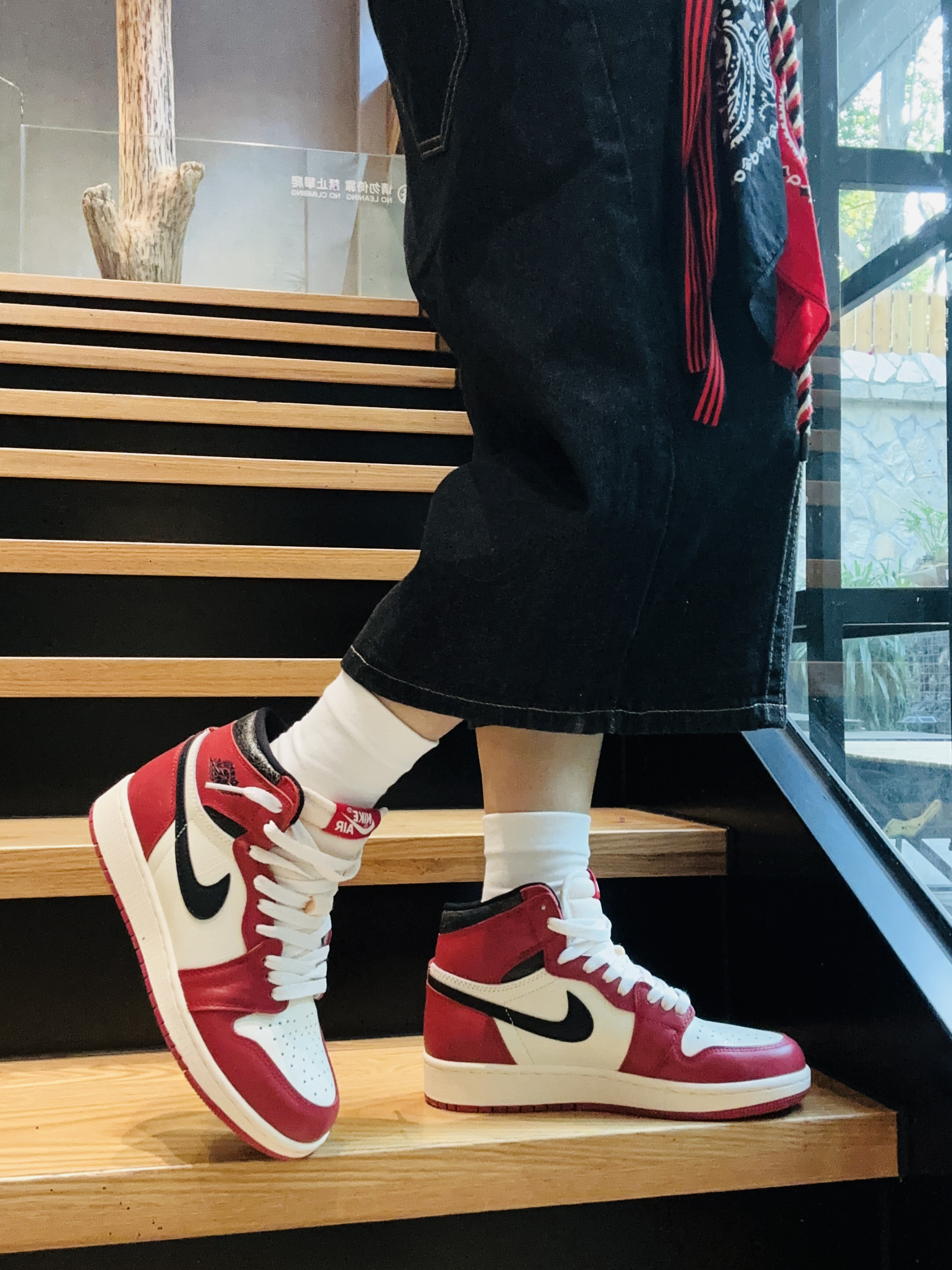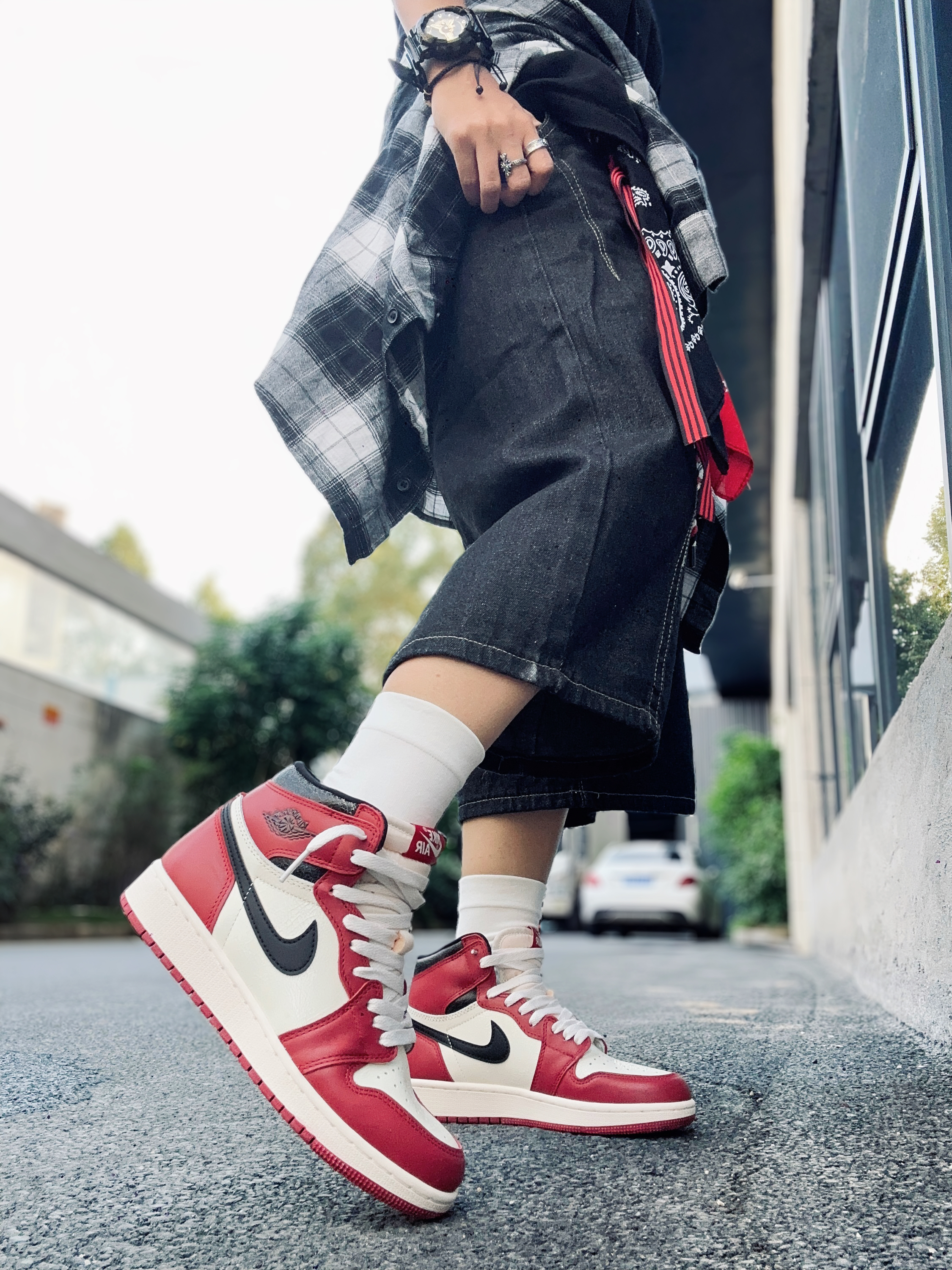 今天开车半小时去个好看的咖啡厅!没想到居然不给我商拍😂😂😂!我什么都没拿出来,只是放了双鞋子在地上都不行。哼😡亏我还消费了那么钱! 算了!赶时间立刻跑出来停车场🅿️拍几张!我的芝加哥岂能不出镜! 🔺上身搭配了很简单的浅灰色一件连帽卫衣!下半身搭配黑色牛仔七分裤! 🔺我的颜色呼应就是小红帽还有裤腰挂丝巾!搭配上我的AJ红白芝加哥板鞋!完美😍 ▪️外面拍的真的更出片!拍摄真的不建议去去网红咖啡厅了...