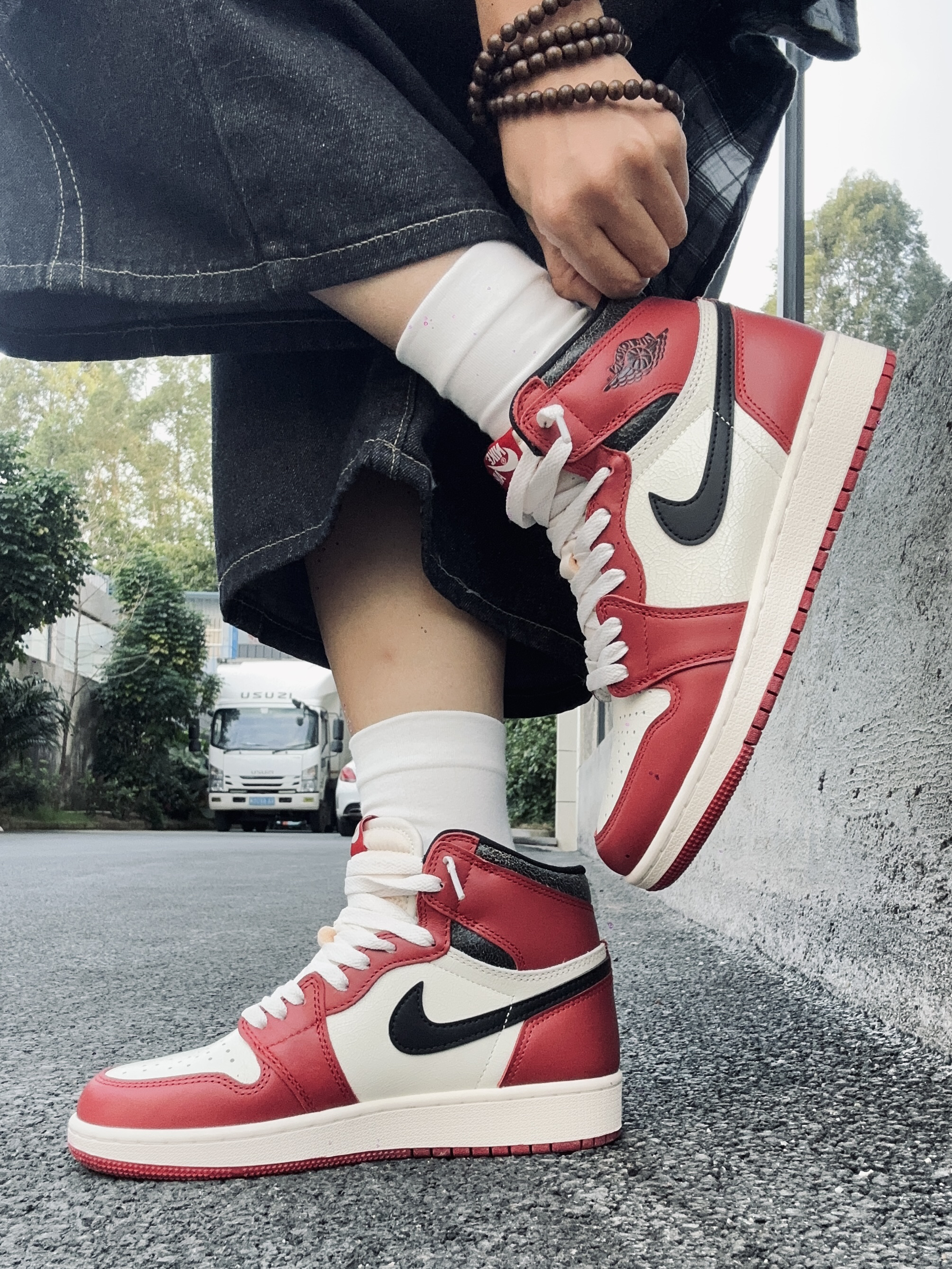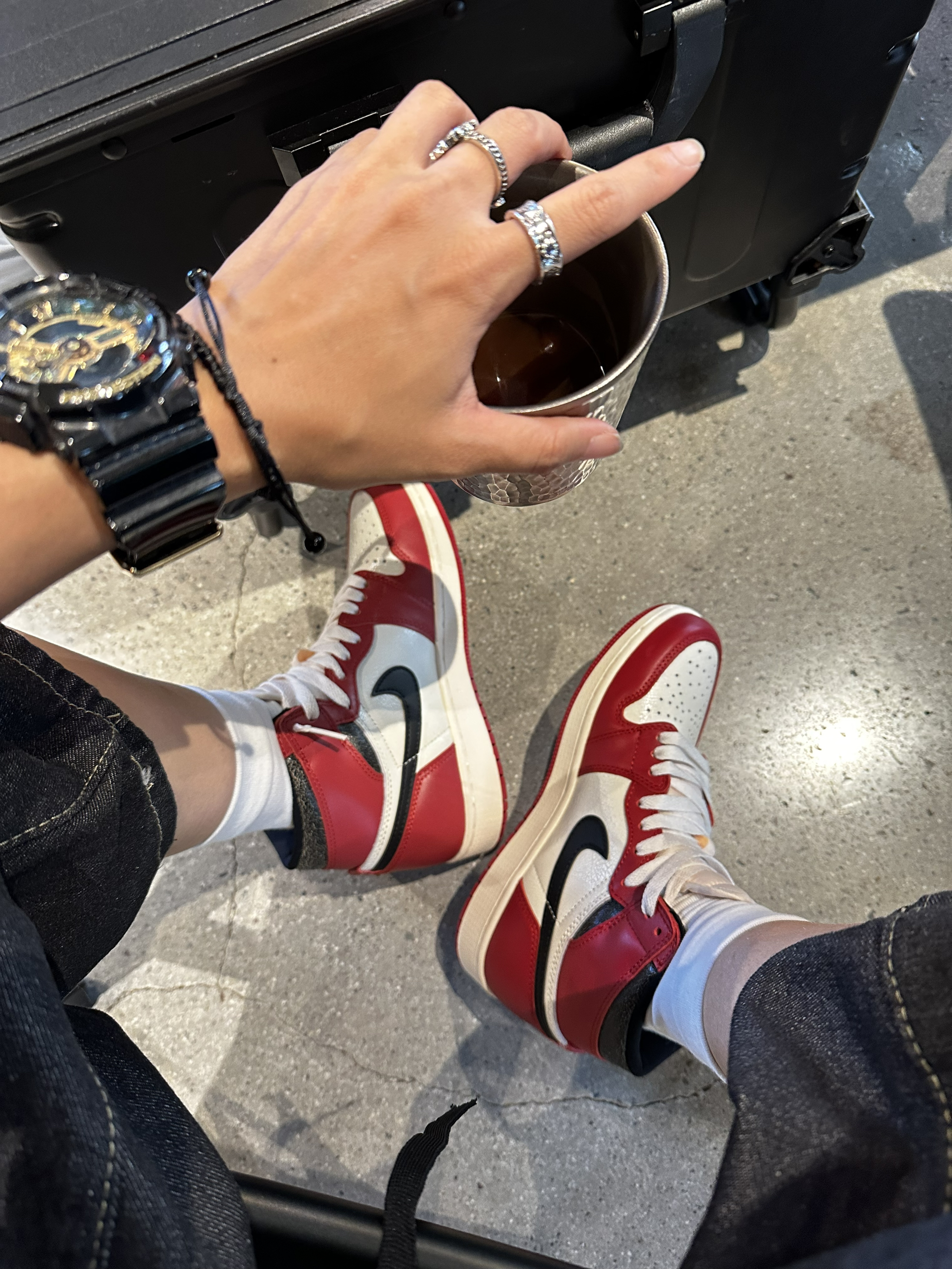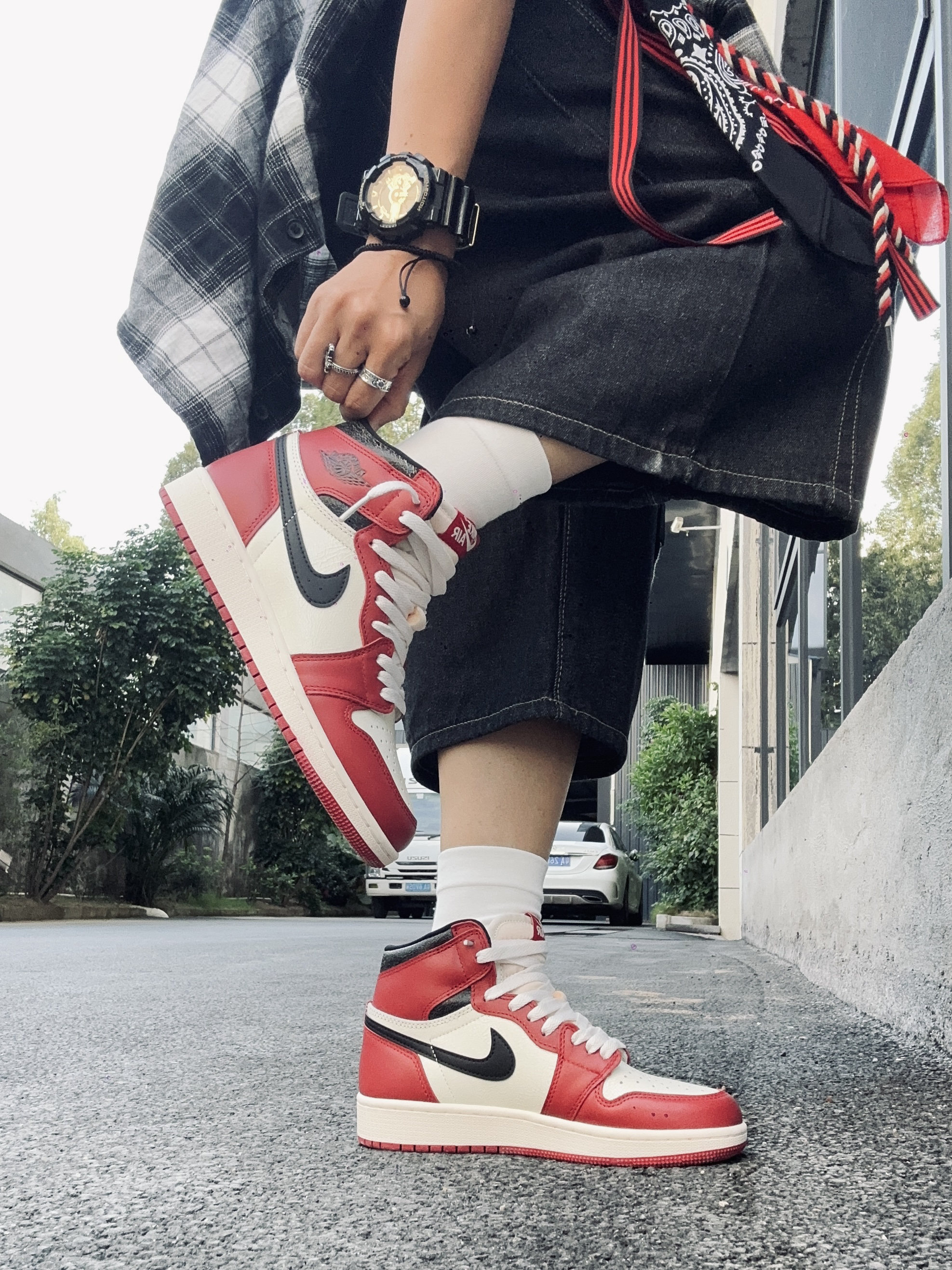 今天开车半小时去个好看的咖啡厅!没想到居然不给我商拍😂😂😂!我什么都没拿出来,只是放了双鞋子在地上都不行。哼😡亏我还消费了那么钱! 算了!赶时间立刻跑出来停车场🅿️拍几张!我的芝加哥岂能不出镜! 🔺上身搭配了很简单的浅灰色一件连帽卫衣!下半身搭配黑色牛仔七分裤! 🔺我的颜色呼应就是小红帽还有裤腰挂丝巾!搭配上我的AJ红白芝加哥板鞋!完美😍 ▪️外面拍的真的更出片!拍摄真的不建议去去网红咖啡厅了...