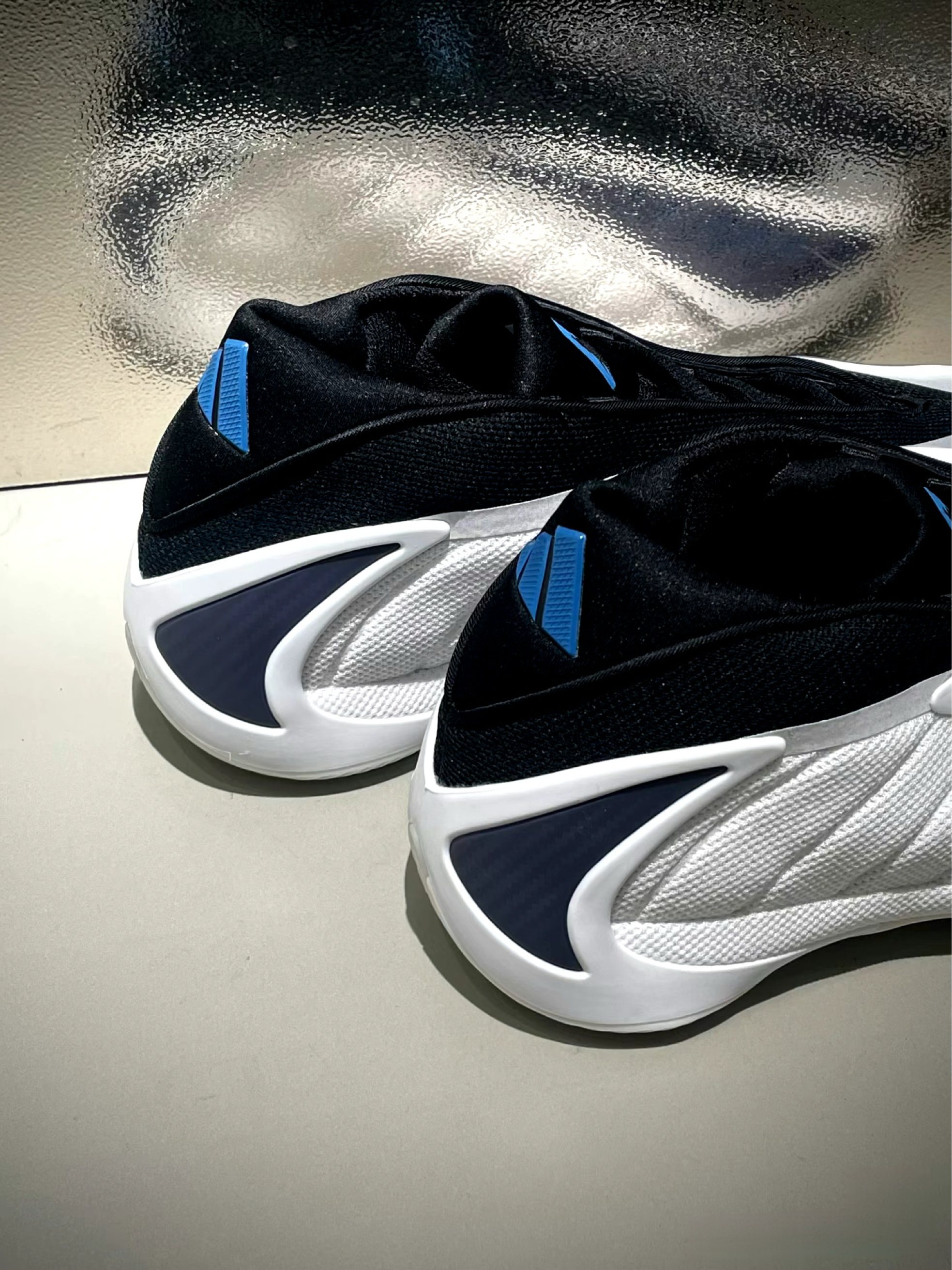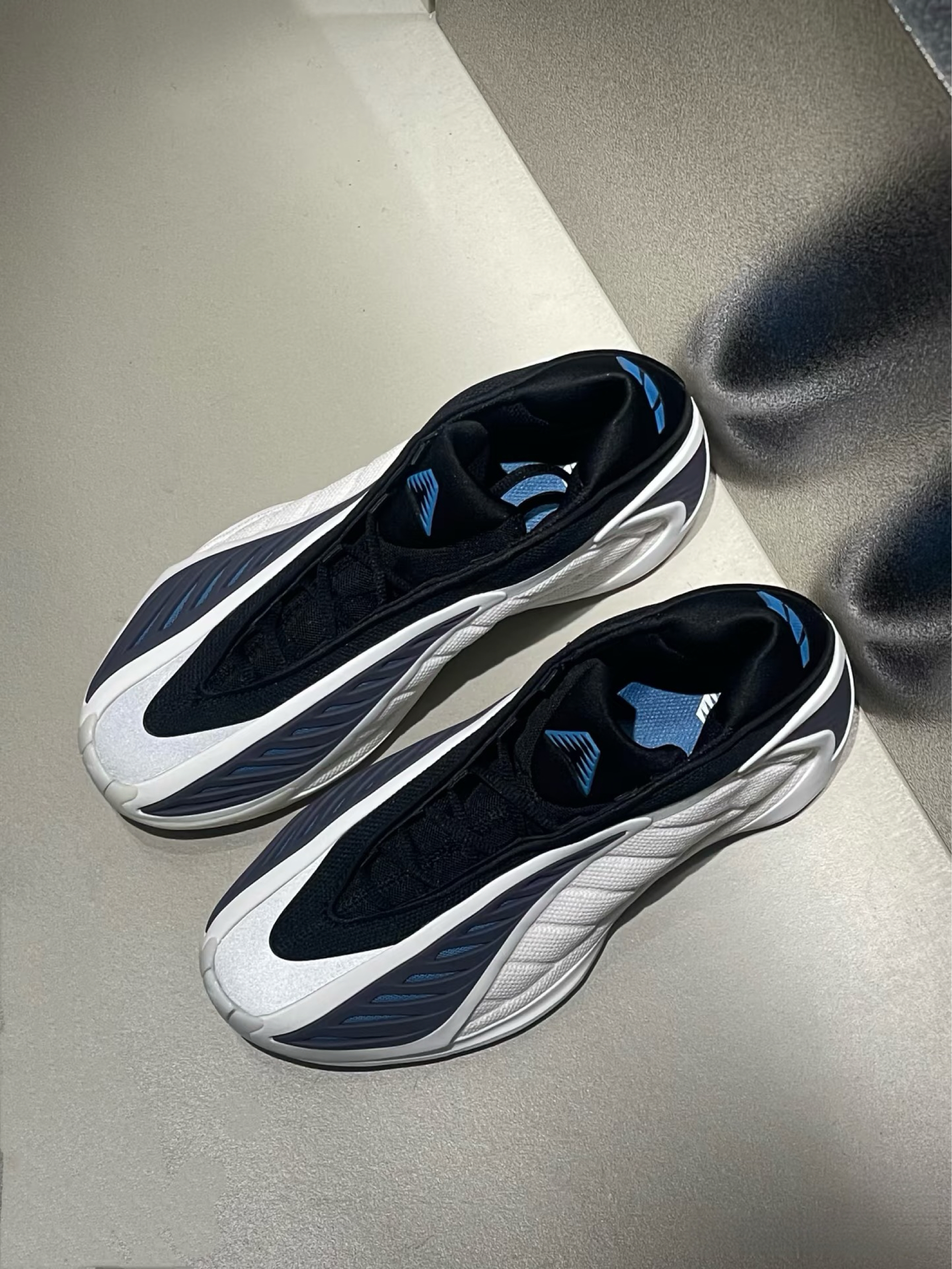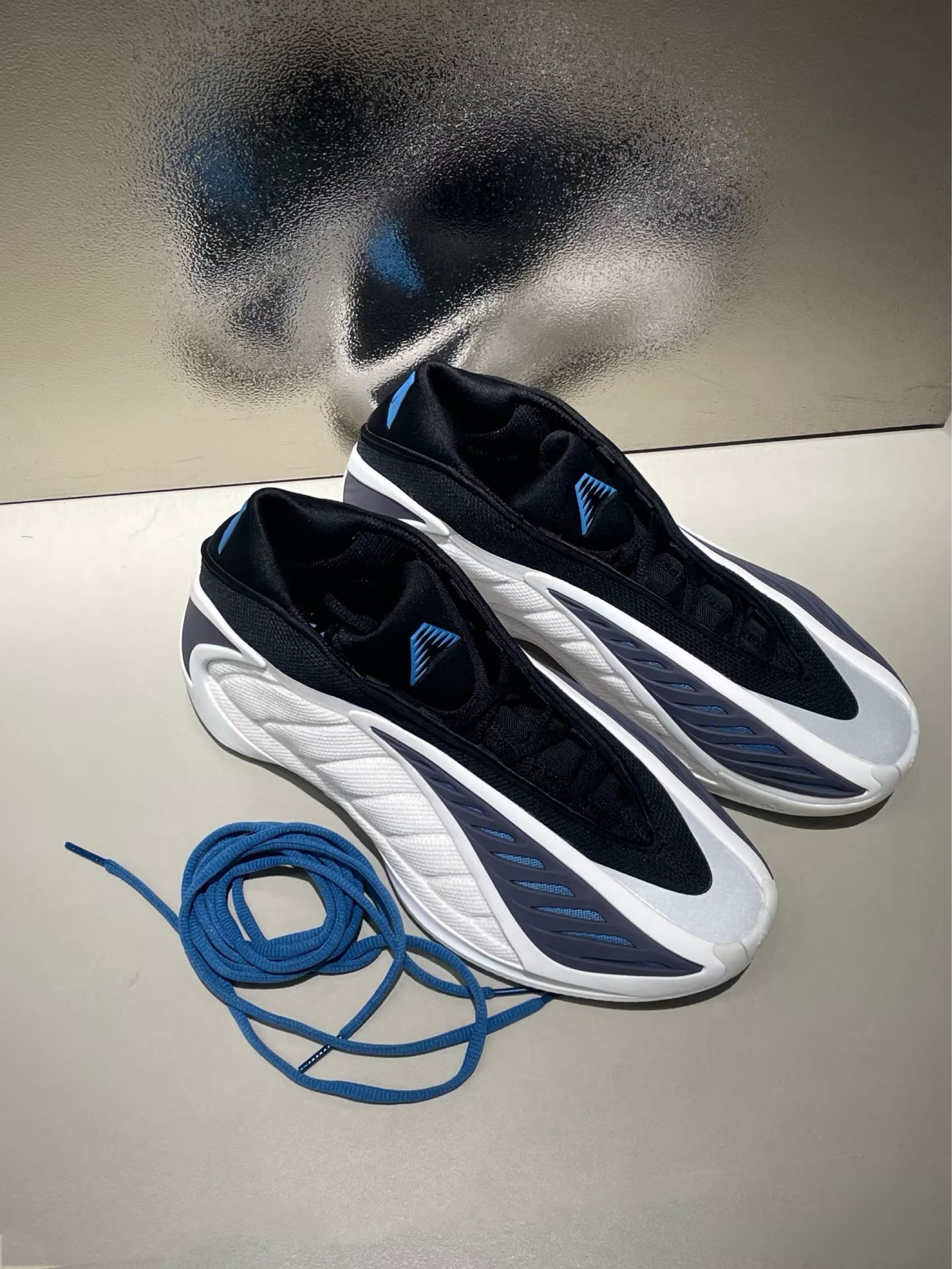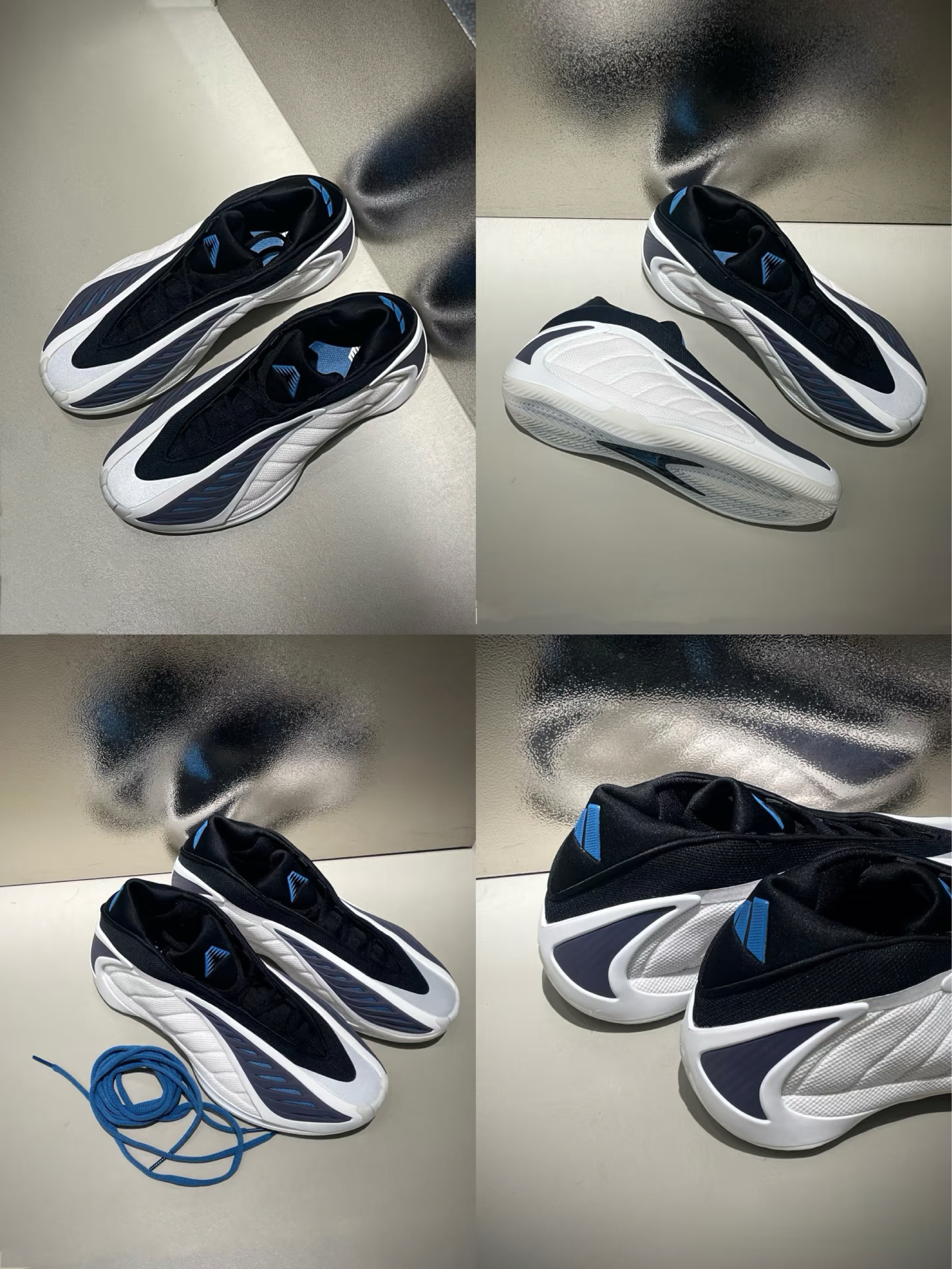 家人们谁懂啊!刷到爱德华兹2代黑白蓝配色的实拍图,直接被颜值按头安利!哪怕还没入手,光看这组图就忍不住来分享——这双签名鞋的设计感,真的把潮流和运动感平衡到极致了👇 🌟 第一眼心动:流线型鞋身美到失语 AE2代的鞋身线条真的太绝了!流畅的低帮轮廓搭配侧面渐变灰条纹,视觉上像一道“速度残影”,完美呼应华子的球风爆发力。黑白主色调干净利落,鞋舌和鞋帮的浅蓝小标做点缀,不张扬却瞬间点亮整体,高级感直接...