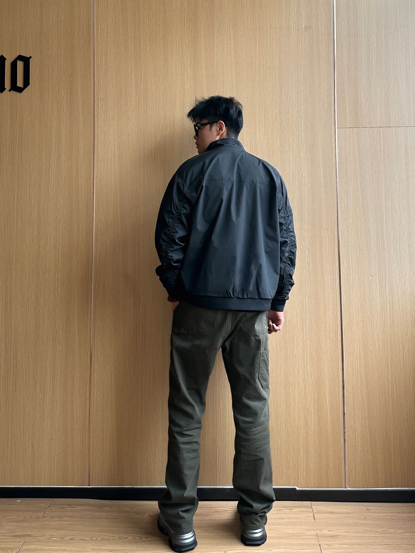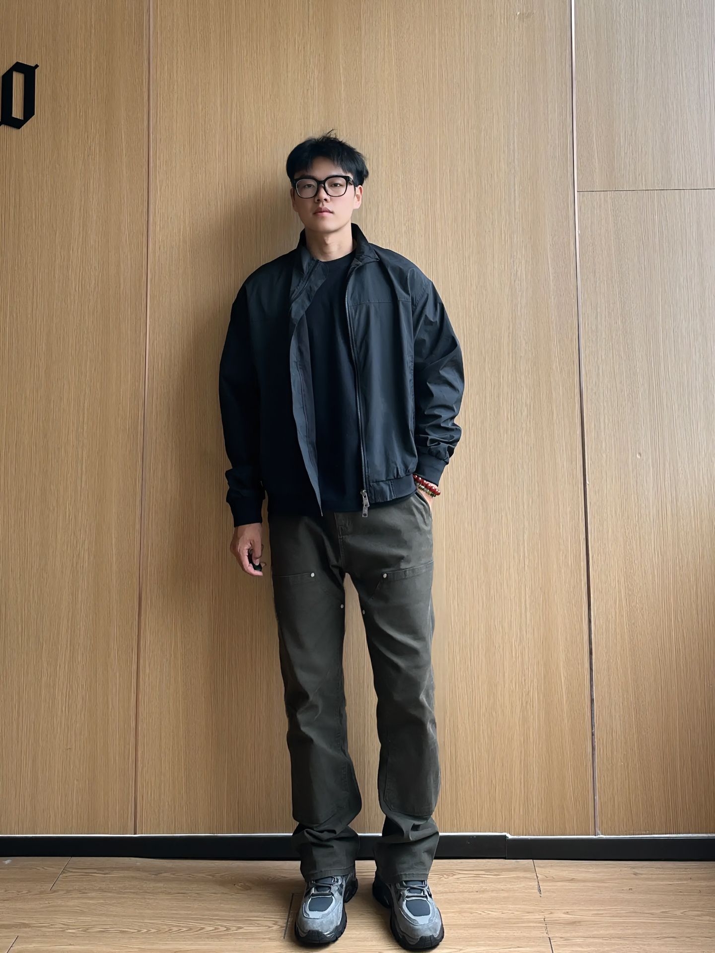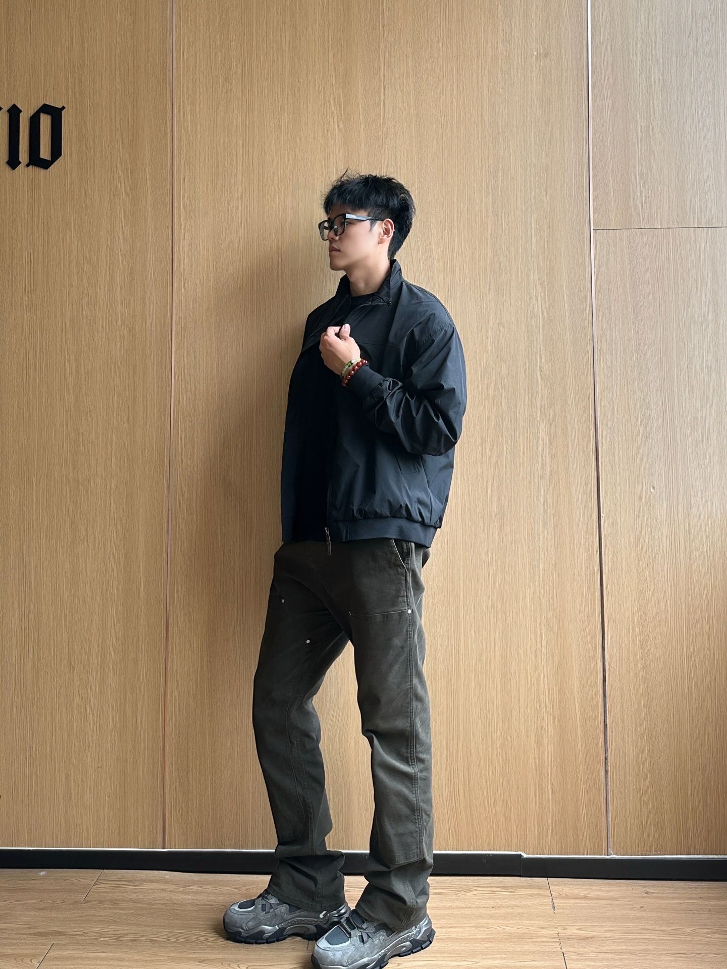 复古慵懒风🫡 复刻这一套🔥 - 👔: 一款很特别的立领飞行夹克 利落立领 + 短款版型 自带硬汉气场 适配春秋通勤, 轻户外场景 - 👖: 搭配一款多口袋工装休闲裤 军绿调显硬朗质感 利落又藏肉 深咖色充满秋冬氛围感 ✅ - 👟: jeep的运动休闲鞋 麂皮拼接 + 做旧中底 抓地鞋底 厚底设计 出行不累 ✅ - 尺码参考:185/85 上身尺码:均最大码 -