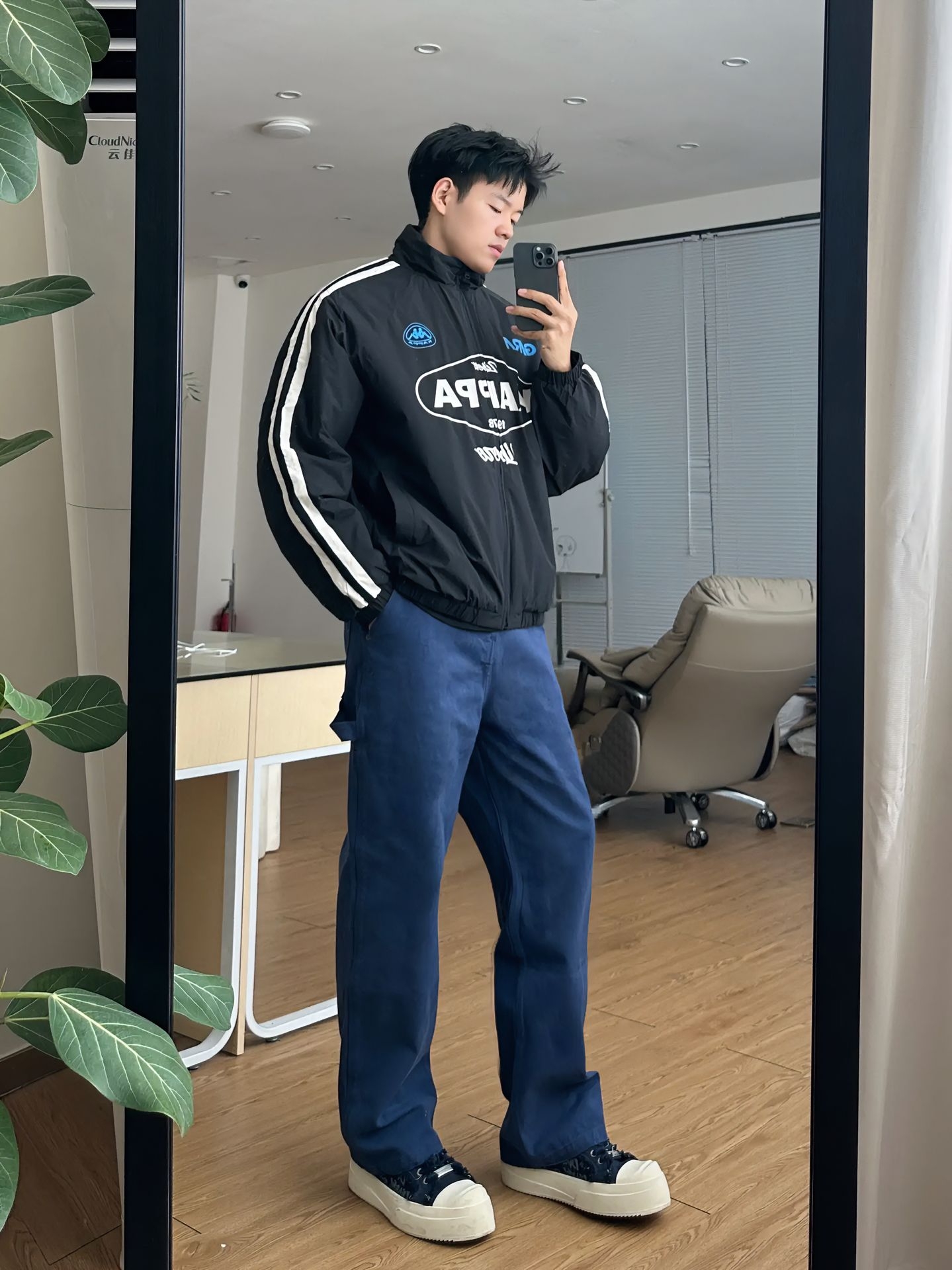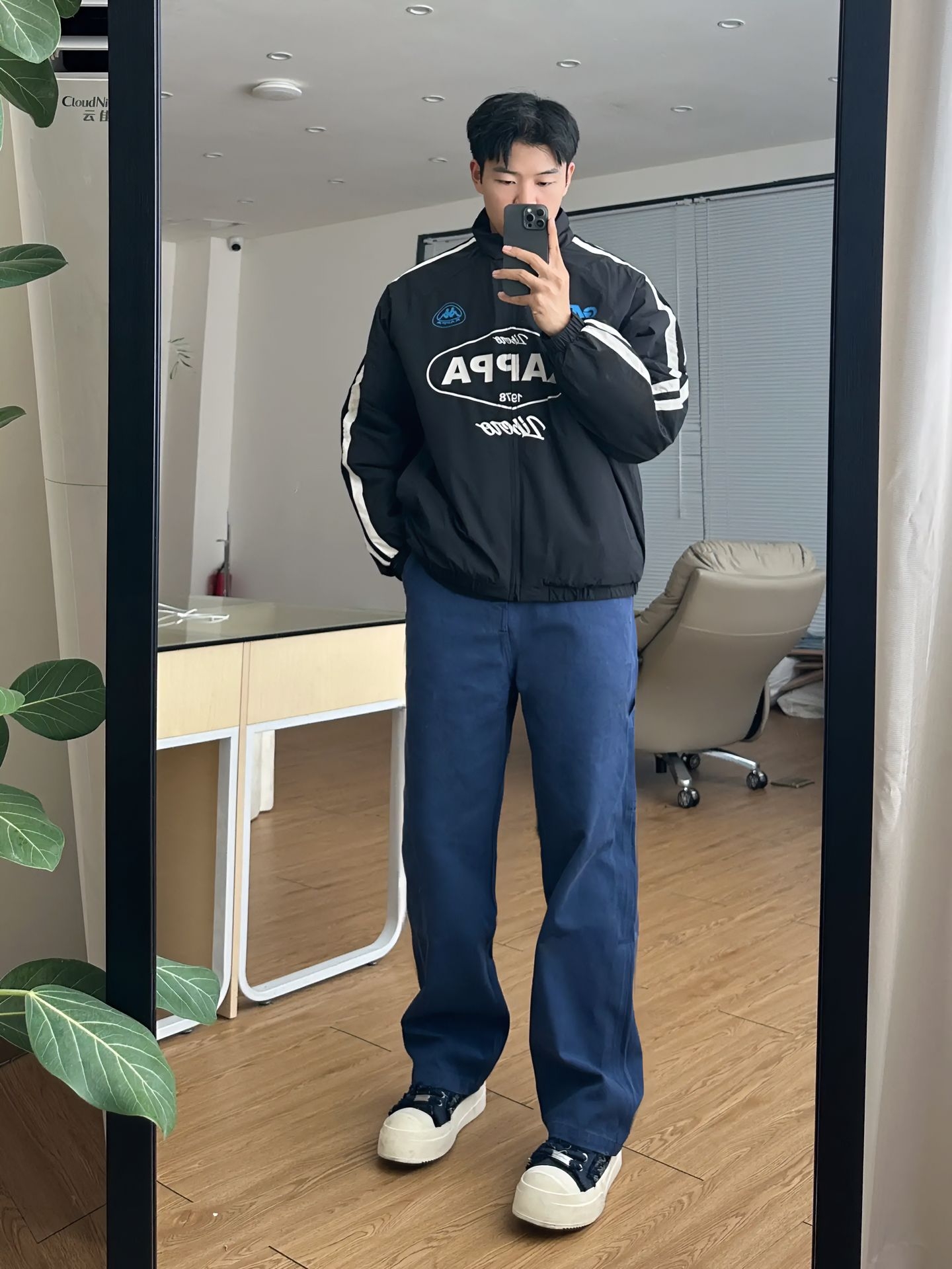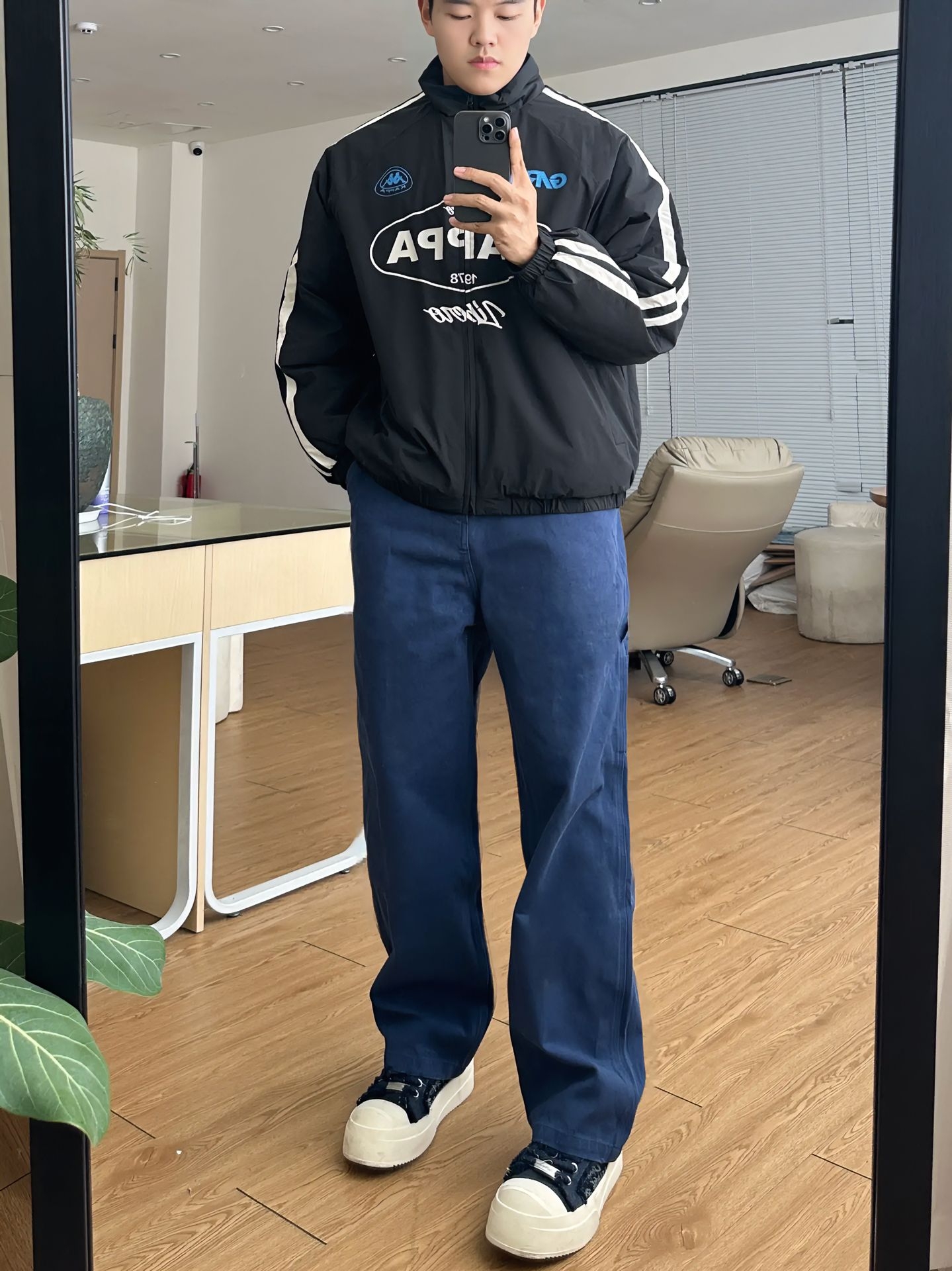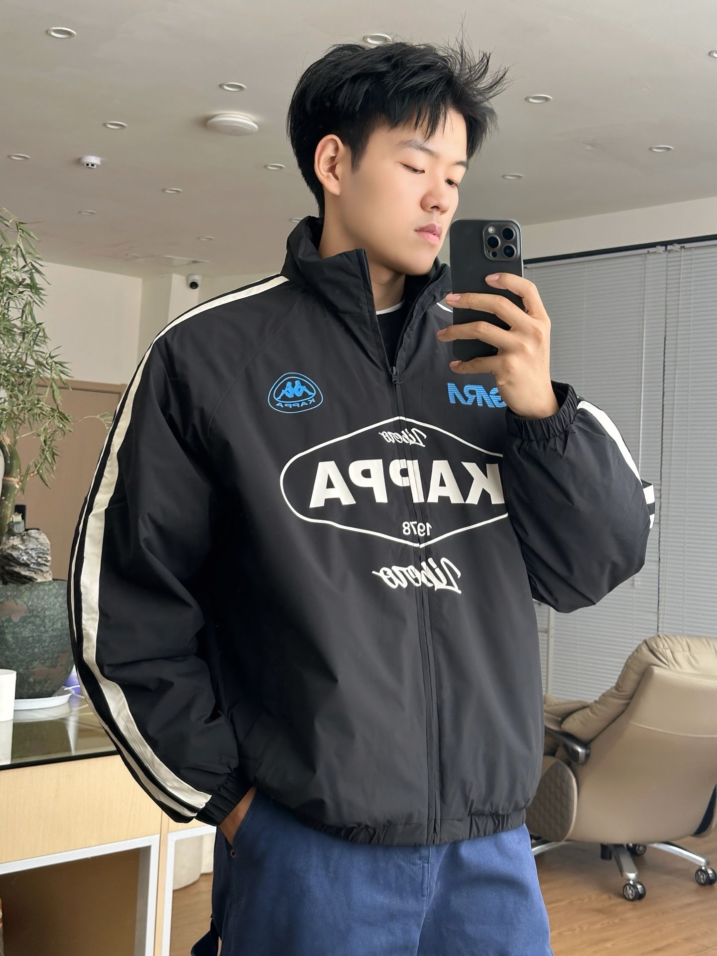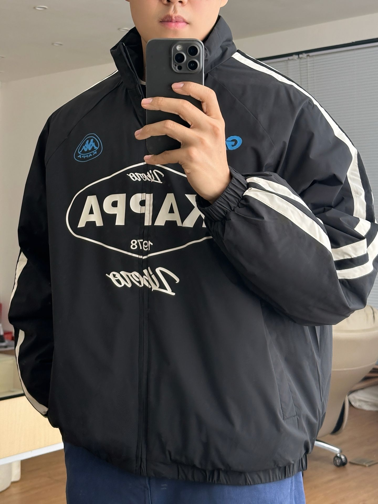 日常出街🫡 复刻这一套🔥 - 👔: 一款 Kappa 复古串标棉服 经典串标元素 +赛车风印花 黑灰主调显街头潮酷感 宽松版型适配多场景 是穿搭里的 “潮酷王牌” - 👖: 搭配一款靛蓝直筒工装裤 水洗靛蓝面料自带复古质感 多口袋设计实用又吸睛 - 尺码参考:185/85 上身尺码:均最大码 -
