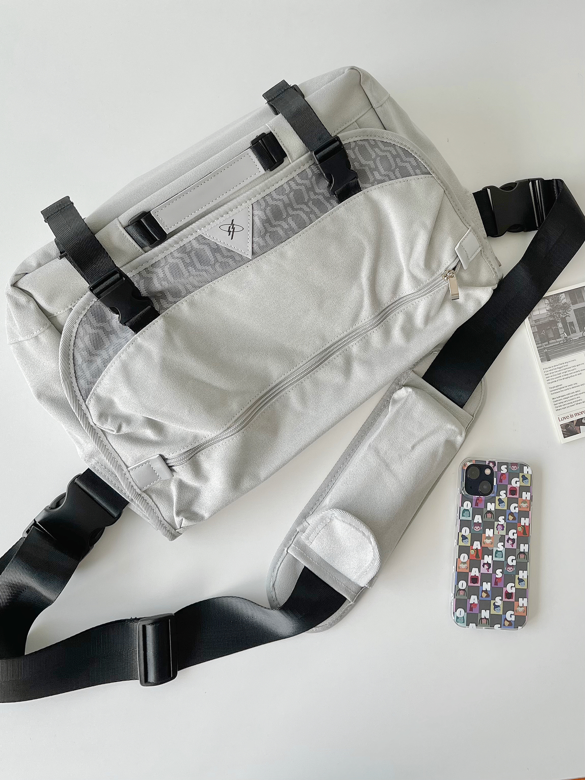 全黑的很帅,整个包是硬挺的,有型,防水耐磨,容量一般。肩带舒服不勒肩,通勤、出去玩都合适。