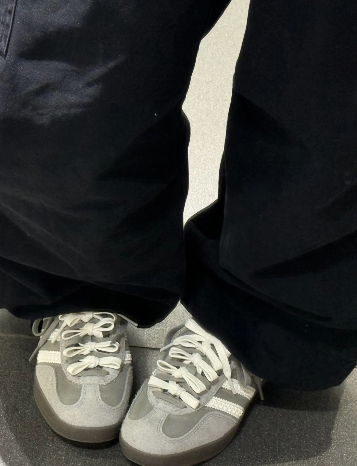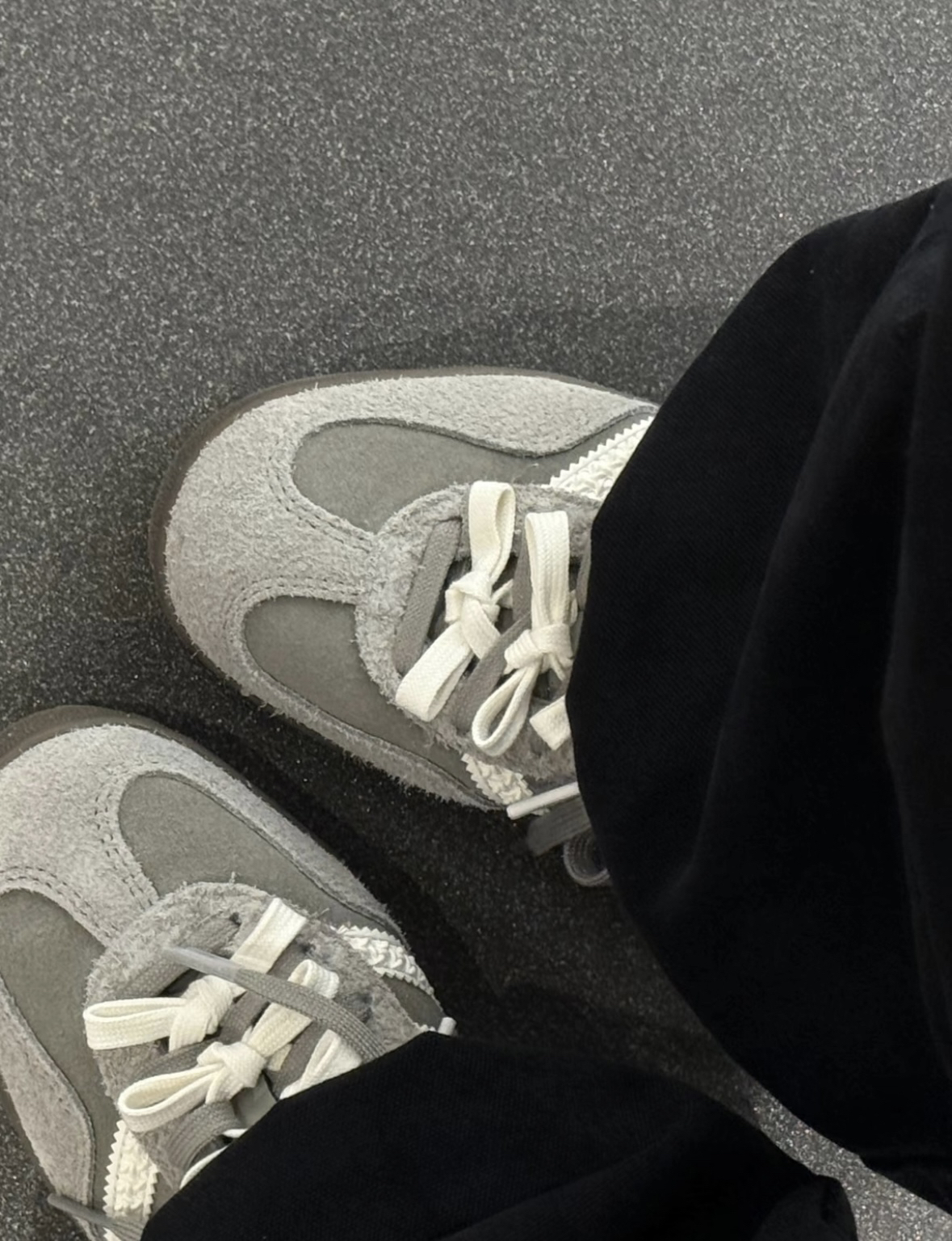 这双白灰配色的Adidas德训鞋我真的好喜欢,系完蝴蝶结芭蕾风拿捏作为姐妹款或者情侣款都是不错的选择,穿起来的脚感可以