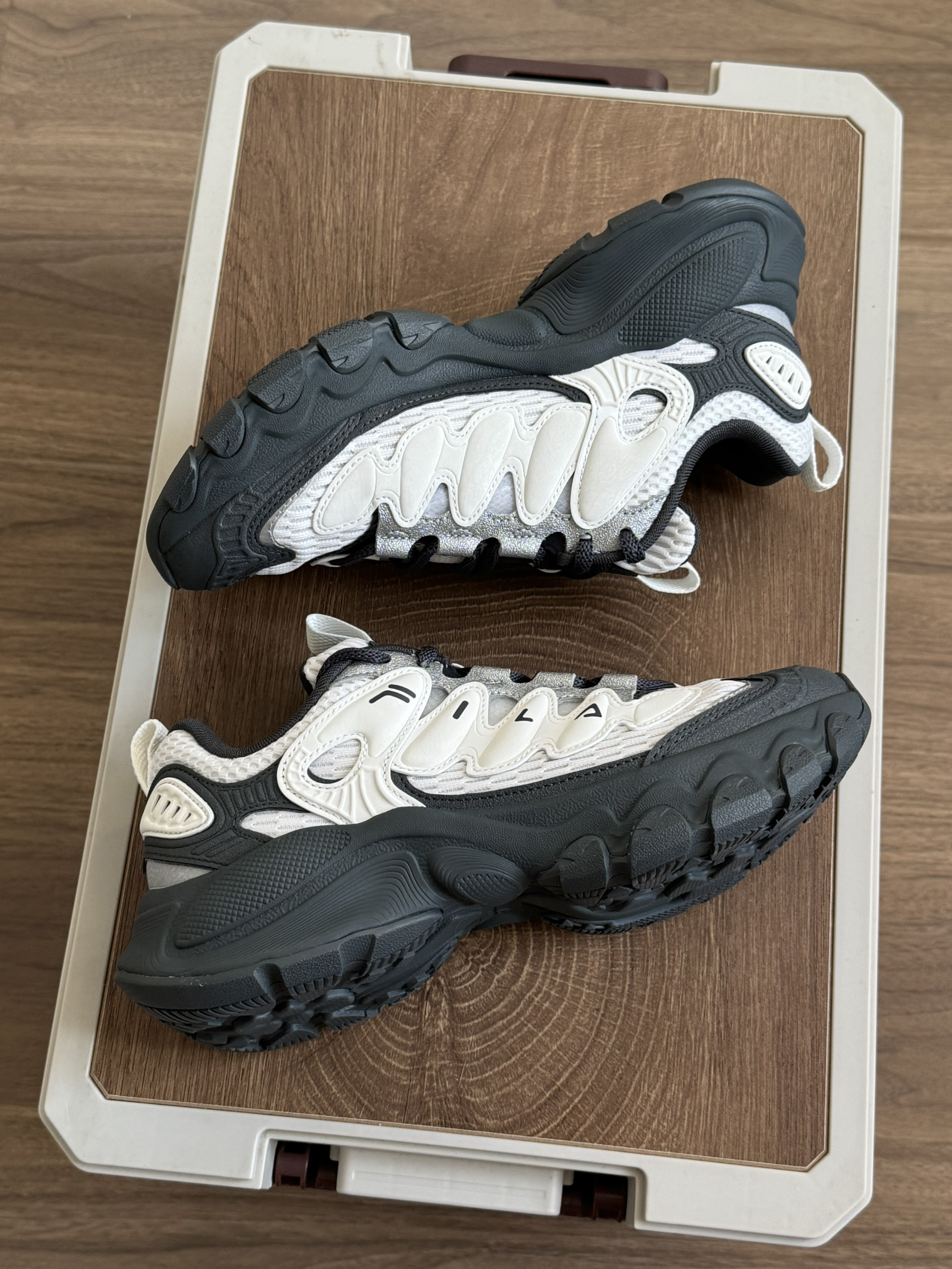 质感超级好的老爹鞋👟 狠狠地爱上FILA这一双了~ 不论是做工还是细节,都没得挑! 穿着很轻便很舒服☁️ 配色很百搭~ 完全的我的通勤搭子,不懂穿啥都穿它!