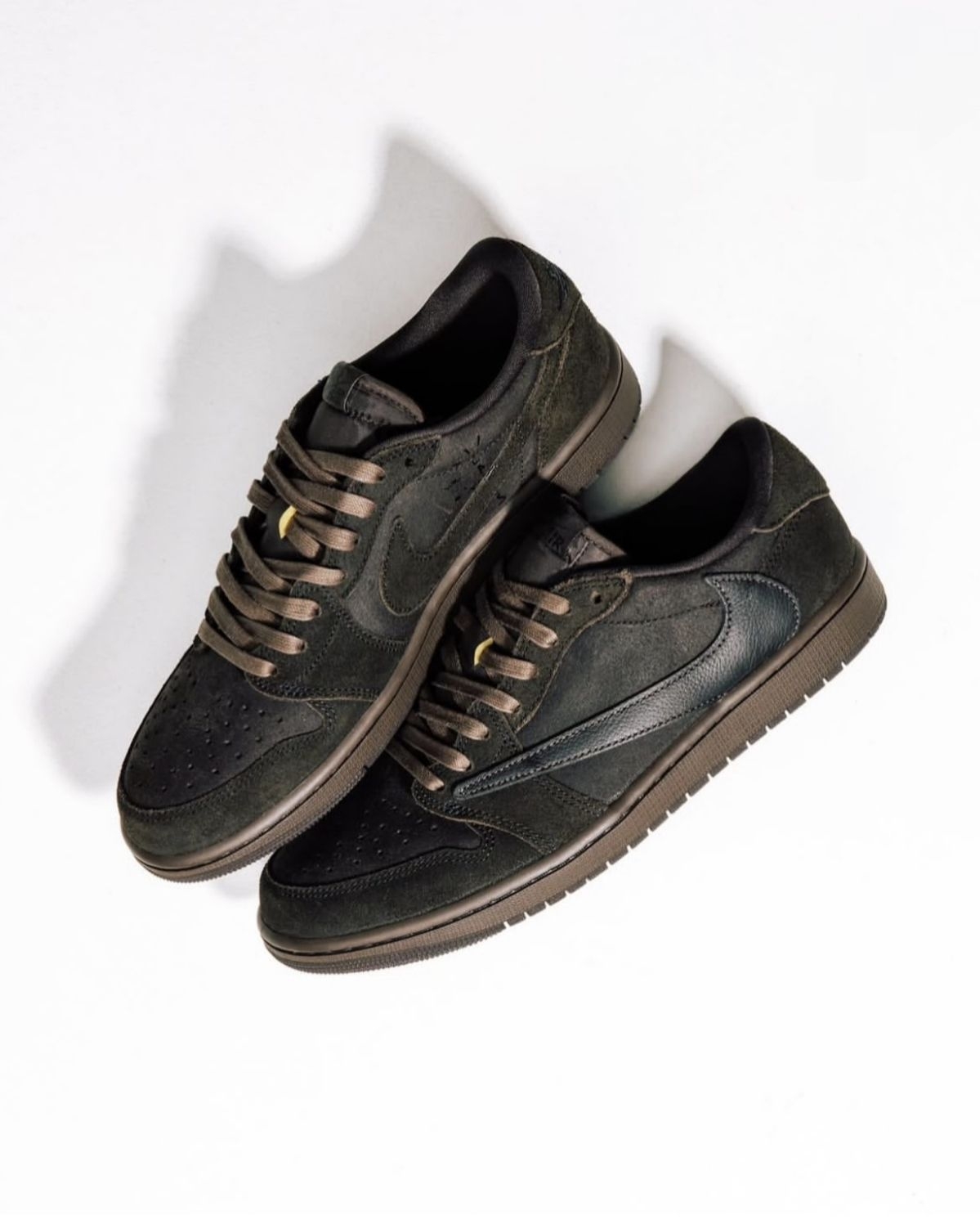 外观设计 这款联名鞋以丝绒棕(Velvet Brown) 为主调,鞋身采用哑光黑皮革打造,搭配深棕摩卡色系鞋带与中底,明暗撞色营造出低调的高级质感。低帮鞋型利落简约,鞋侧经典飞翼Logo与鞋舌Travis Scott标志性倒钩元素暗藏细节,复古街头风拉满,无论是搭配休闲裤还是工装风穿搭都能轻松适配。 核心卖点 1. 顶流联名:Travis Scott与Jordan Brand的经典合作...