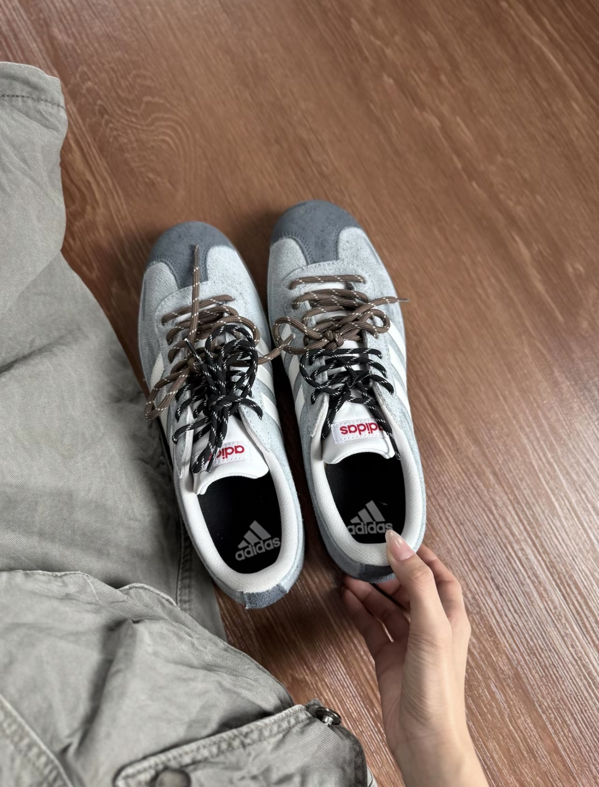 好喜欢💕adidas的得训鞋啊~ 冬天❄️想买鞋子的心又来了! 这双废土风🌪️的得训鞋直接戳中了我 毛绒质感 边有点做脏的感觉 鞋跟处有个英文刺绣🪡 有点设计感 与大衣好适配呀~