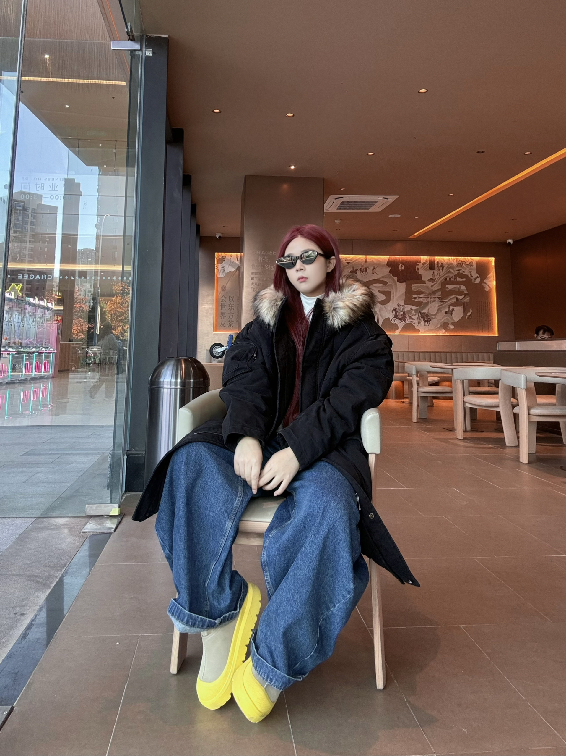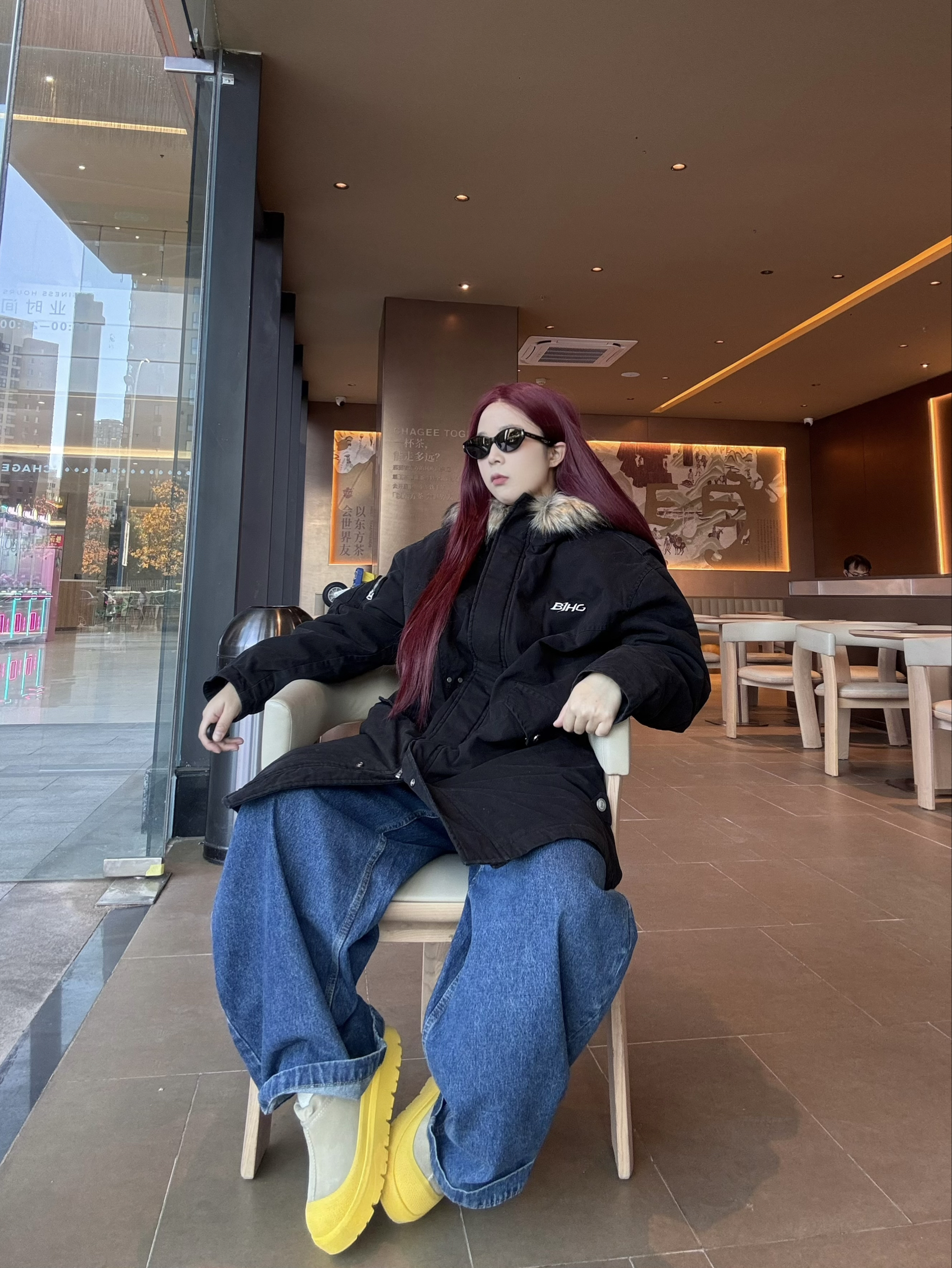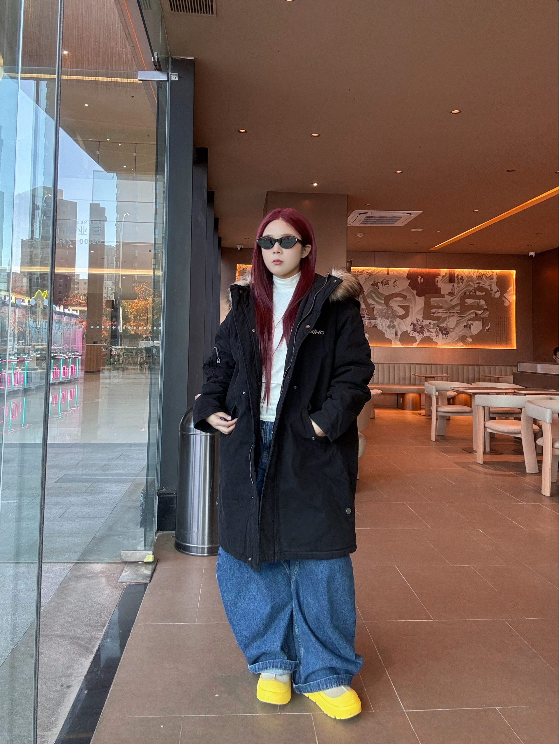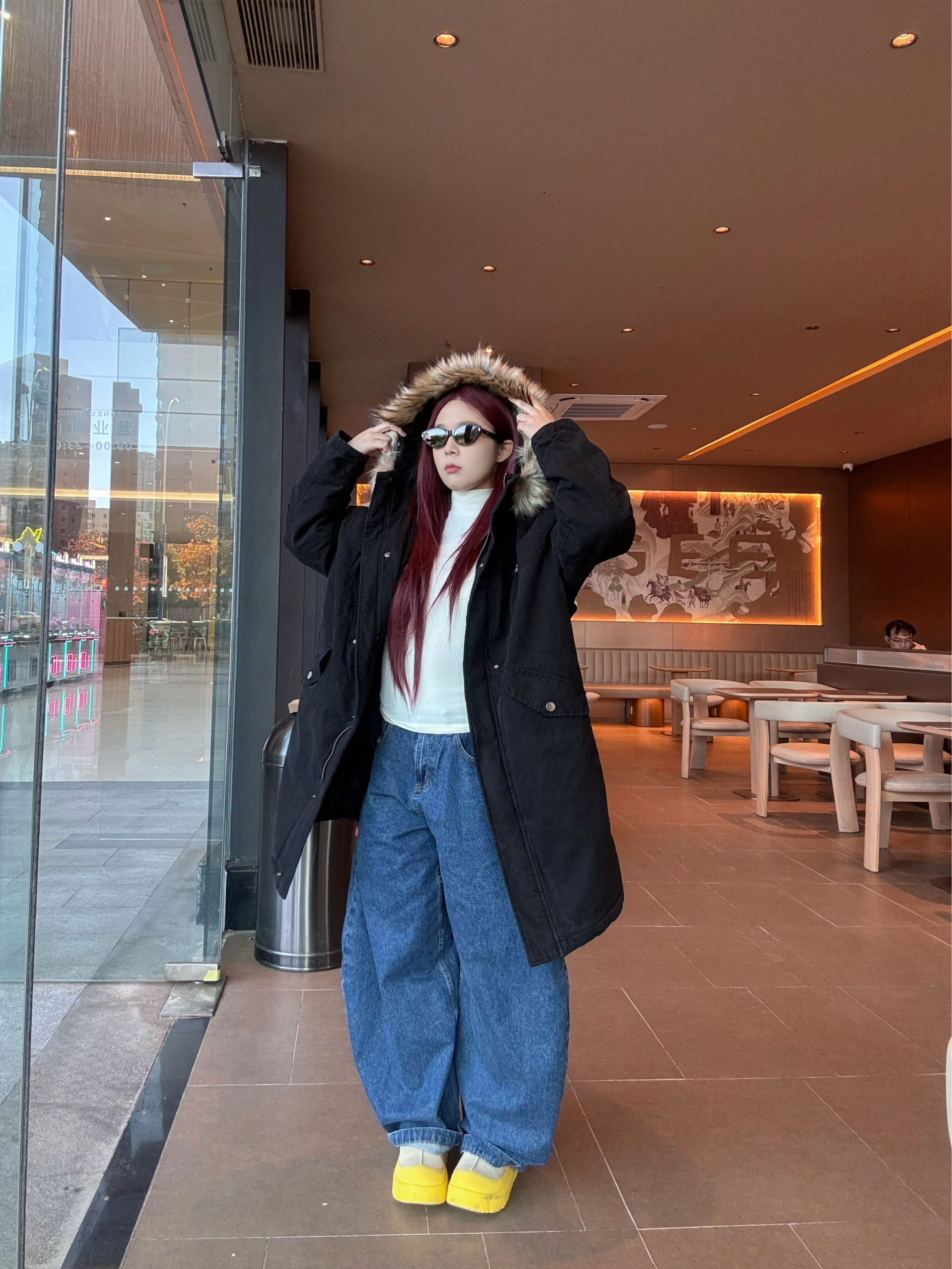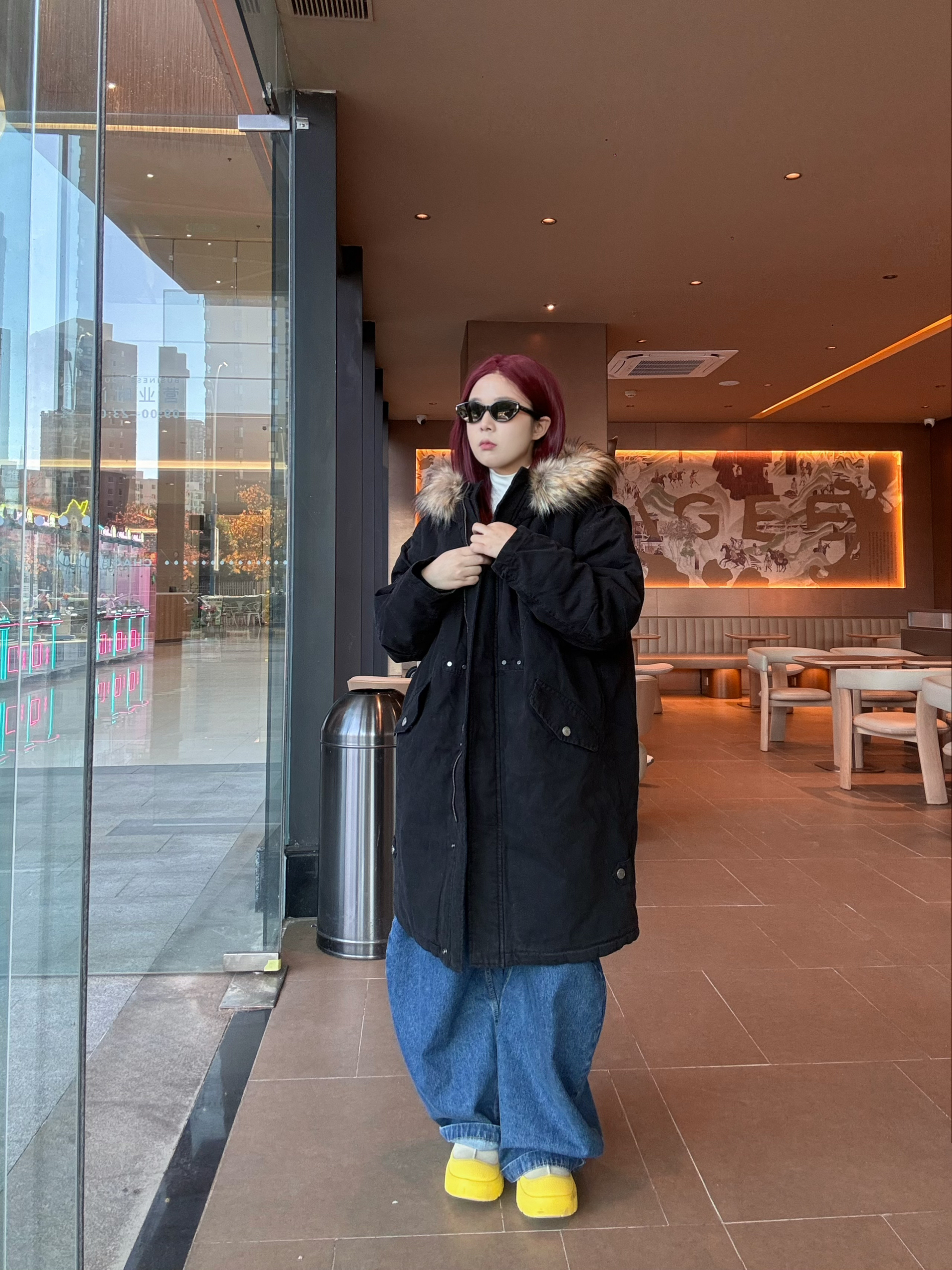 冬日出街 来一件 BJHG 毛领中长款派克棉服 搭配深蓝色阔腿牛仔裤➕雪地靴 保暖清爽 过膝长度 加厚填充寒风直接被隔绝在外 内搭一件白色打底 轻松过冬 宽松版型藏肉又不臃肿 宽松帽檐➕大毛领 保暖又好看 身高162 体重120 衣服选择M