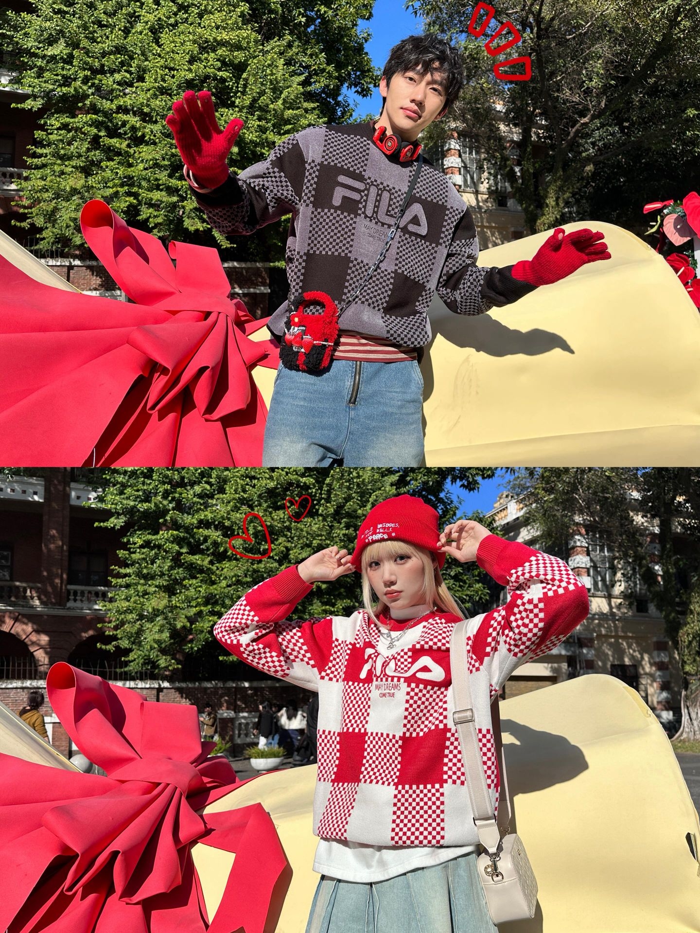 和男朋友一起入手了一套 FILA「马上起飞」情侣款编织衫🧣 红白棋盘格真的好特别😍复古又时髦 🎄❄️ 点缀着新年的氛围 喜庆感满分~ 面料柔软舒适 单穿也一点都不扎肉 穿上身那一刻就舍不得脱下来🥰 不管是配牛仔裤还是运动裤都超好搭 瞬间时尚感满满 💖和男友一起穿着出门~幸福感瞬间爆棚
