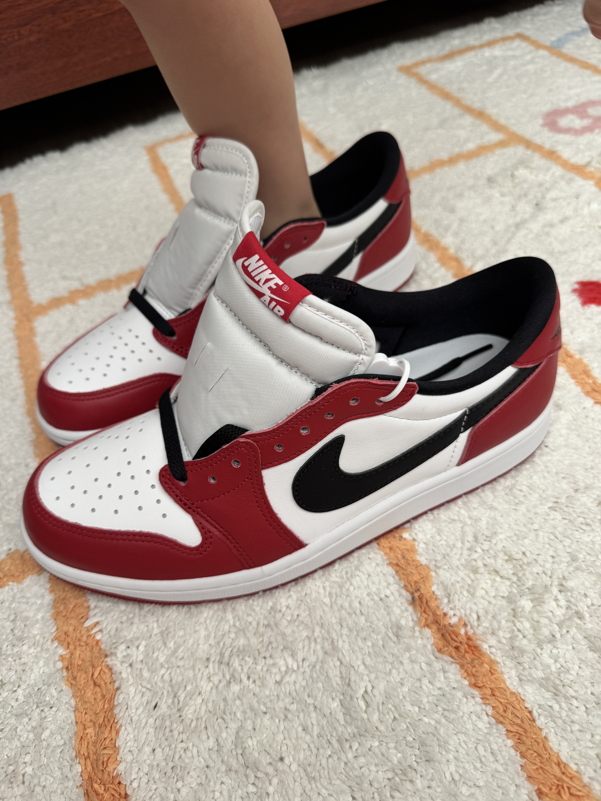 都有高帮芝加哥了,女儿非说低帮好穿! 都有Aj1 经典芝加哥高帮了!女儿看见低帮芝加哥非说要一双,说低帮更好穿,更百搭!! 这么大的鞋码,穿着也不跟脚!那爸爸帮忙先试试脚感吧! 话说芝加哥高帮和低帮,你们会怎么选?