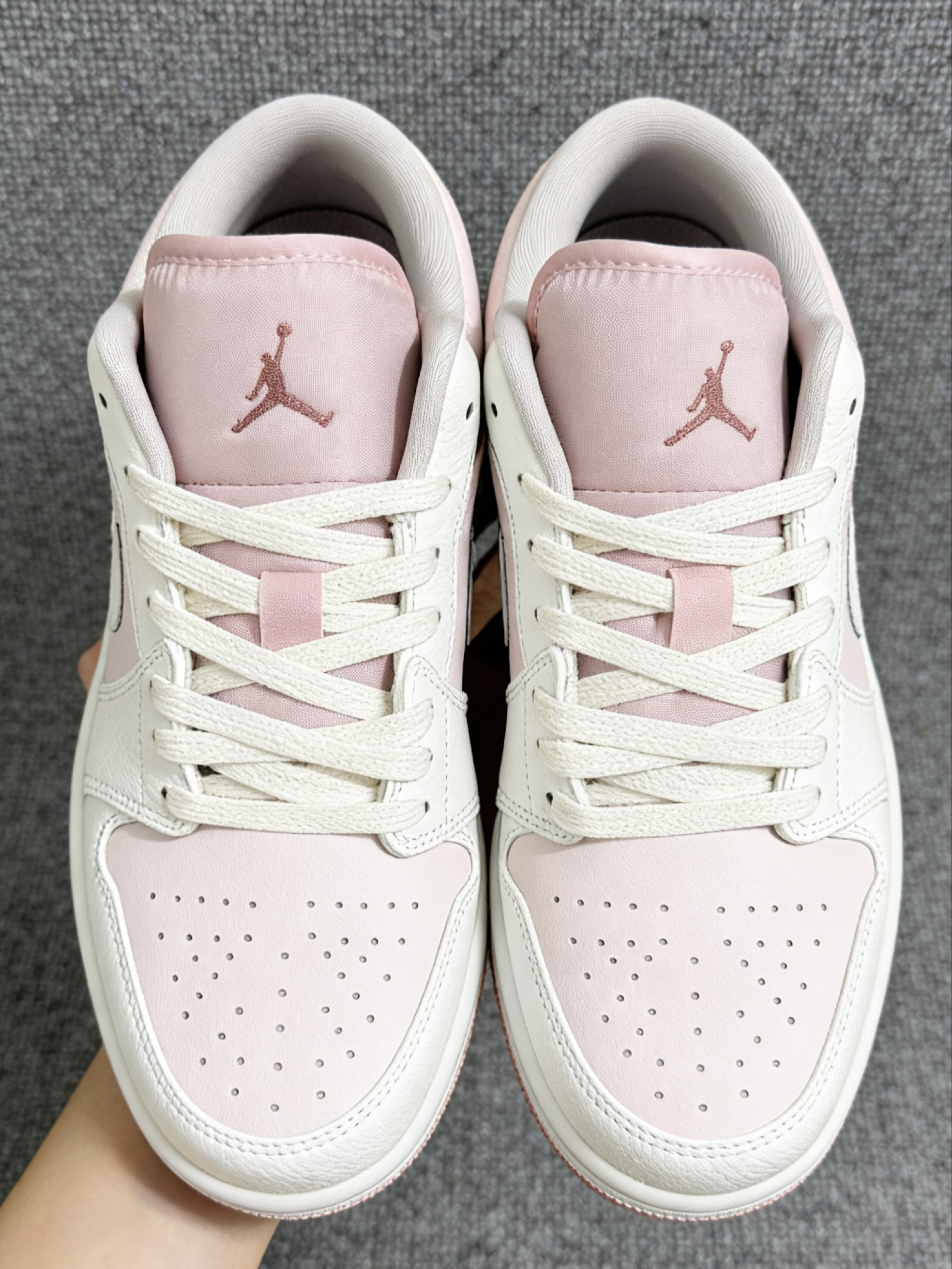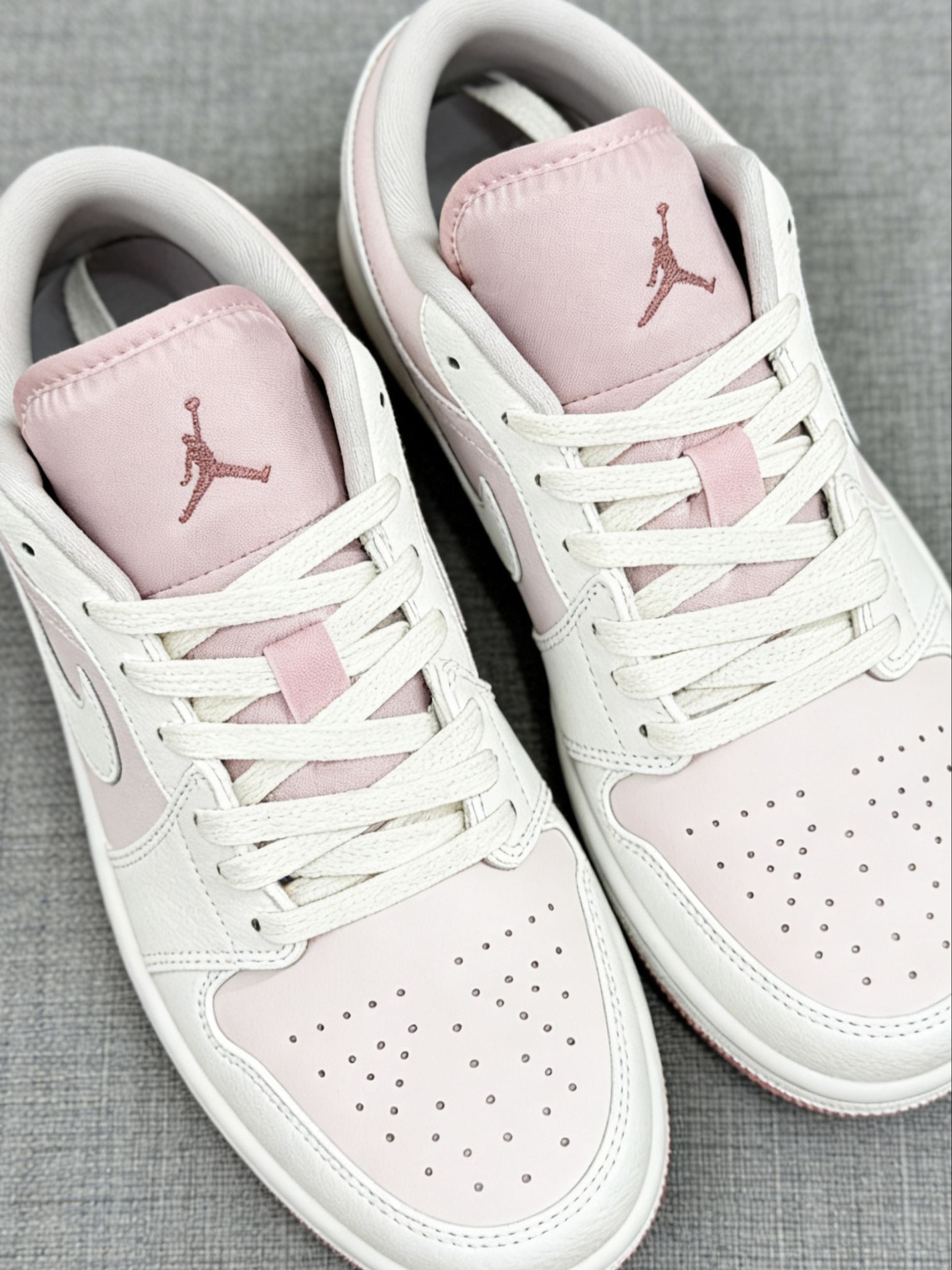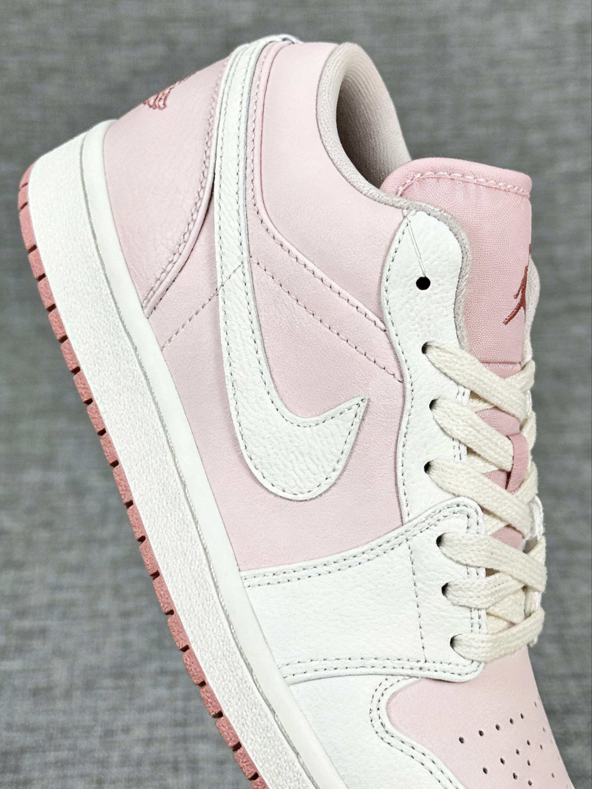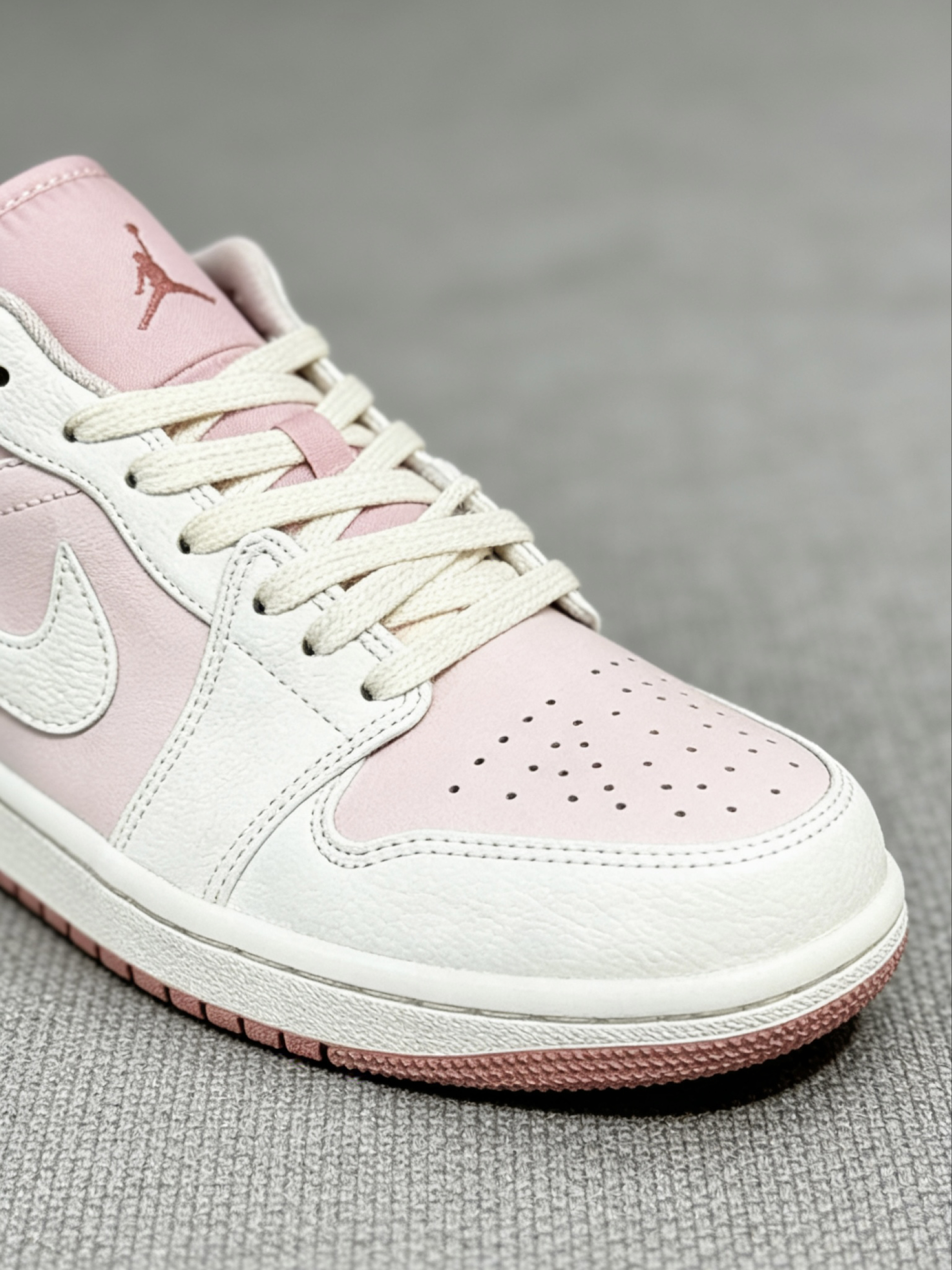 终于get到粉色球鞋的快乐了!这双AJ1 Low蜜桃粉不仅颜值高,上脚第一感觉就是鞋型超合脚,低帮的设计刚好卡在脚踝下方,鞋口的包边很软,完全不磨后跟。鞋头的空间很充裕,宽脚穿也不会挤脚,鞋垫踩起来有轻微的回弹感,不像传统板鞋那样硬邦邦,日常走个大半天脚底板也不酸。而且蜜桃粉的配色真的超温柔,搭配浅色系衣服特别有春日感,已经成了我最近出门的首选球鞋。