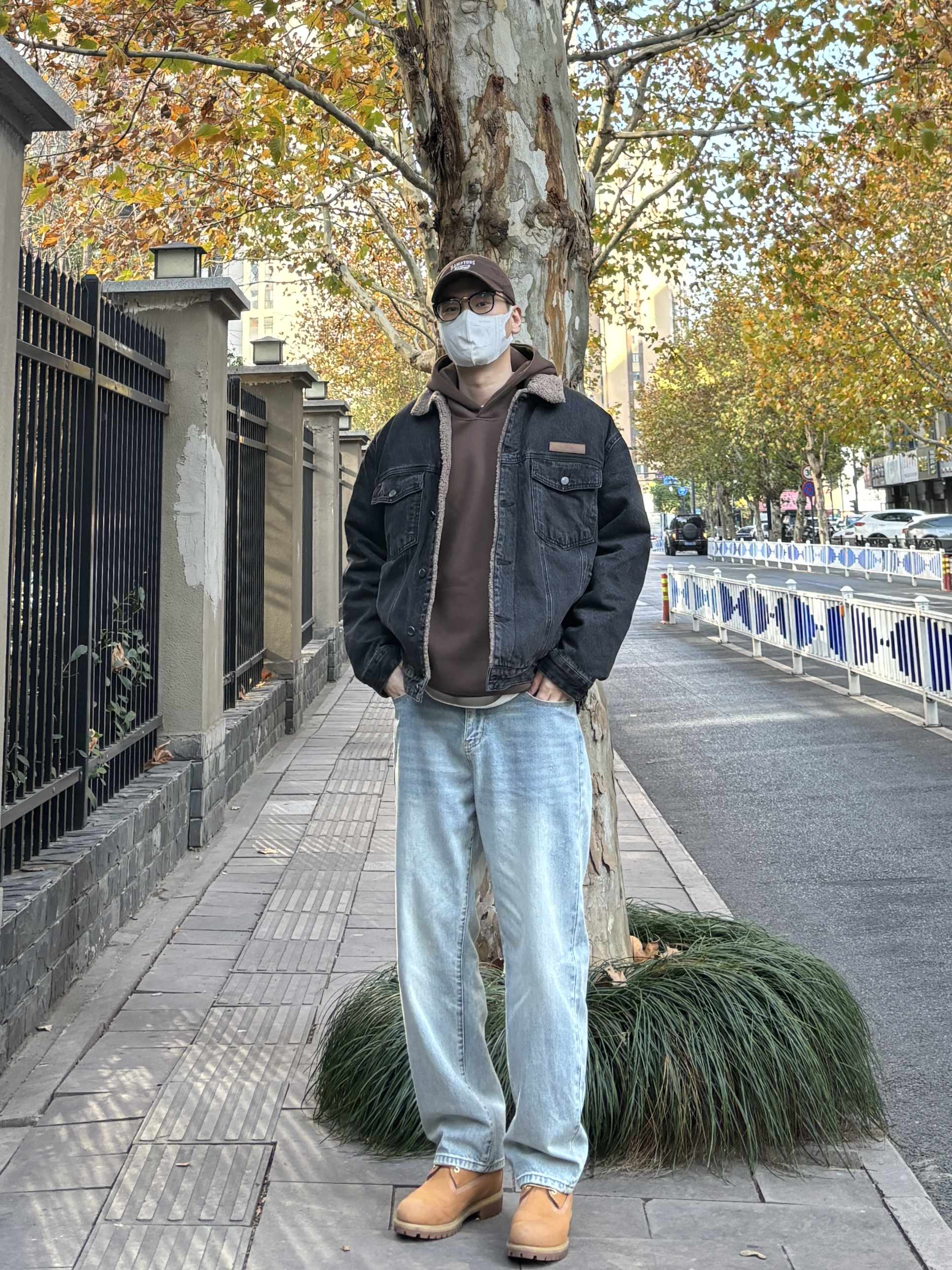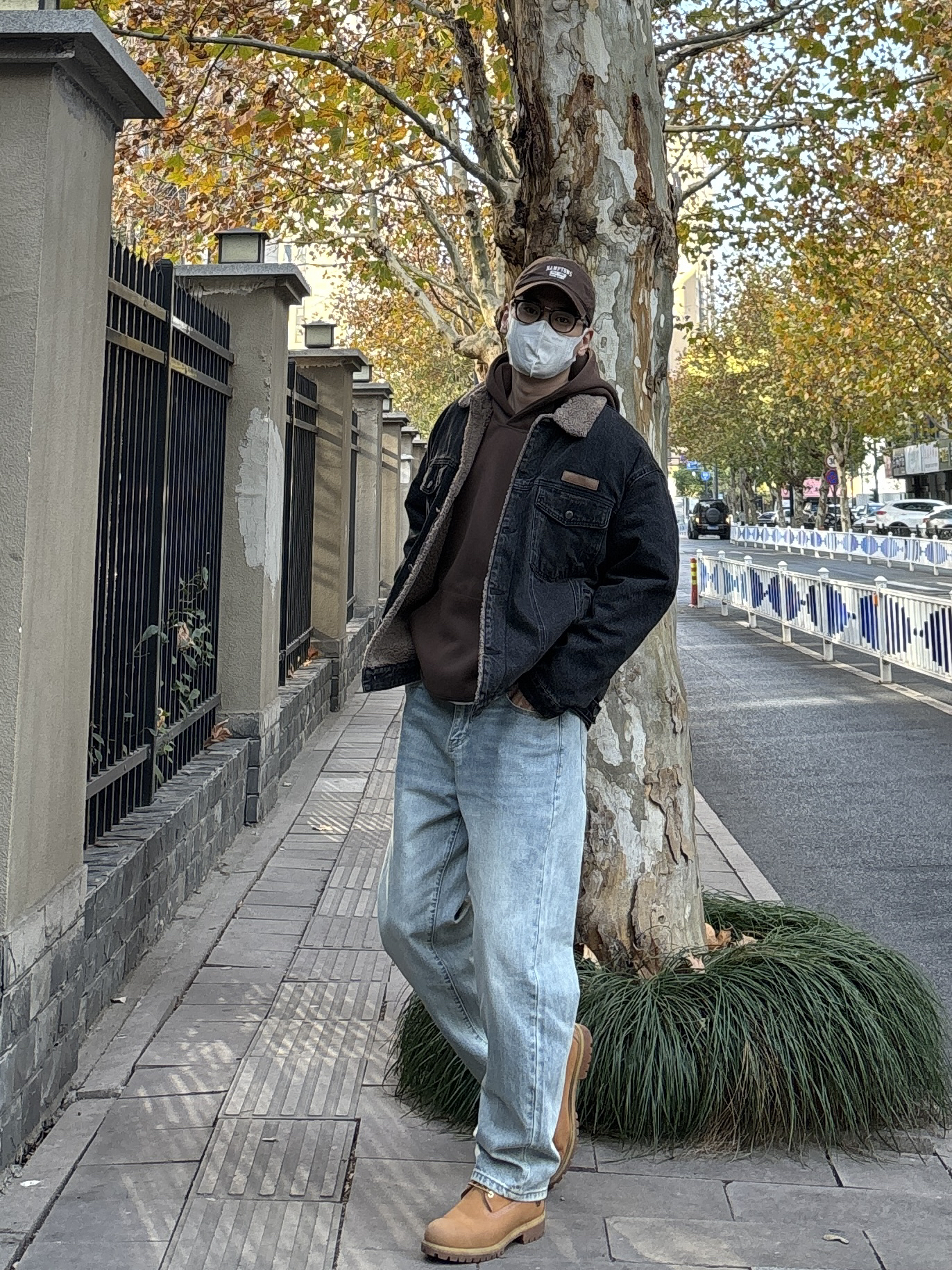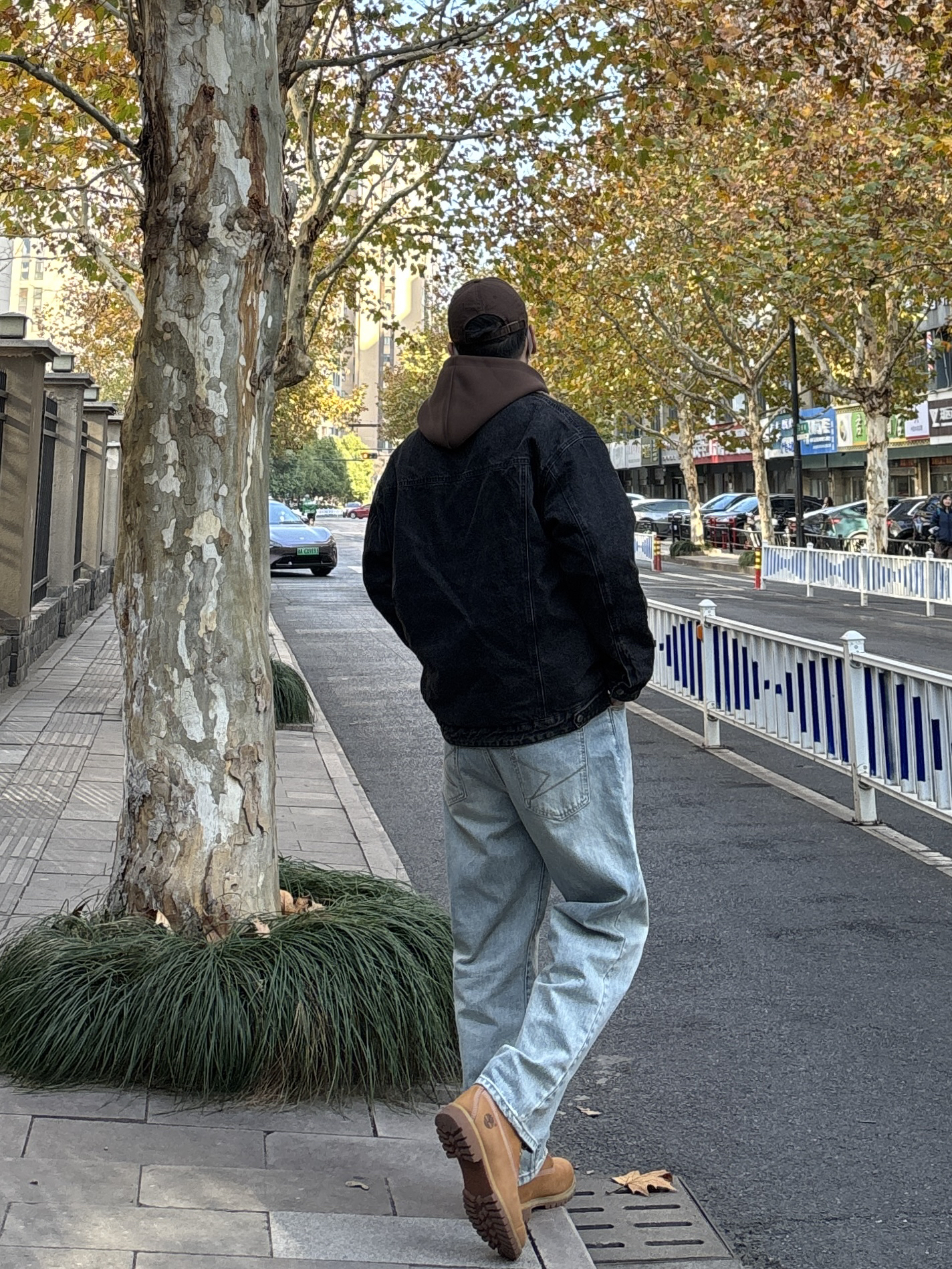 冬天需要一套既有温度又不失风格的穿搭!今天这套复古工装叠穿,从内到外都藏着细节感。 内搭选择基础款棕色连帽卫衣,外搭黑色羊羔绒牛仔外套,上身拉满硬朗气场。下装搭配浅蓝直筒水洗牛仔裤和沙漠黄高帮工装靴,撞色提亮整体搭配。 复古又不老气,日常出街或通勤都能穿,保暖性与时尚感都拿捏住了👌 - 今日搭配 衣服裤子:NICE LILI 鞋子:timberland