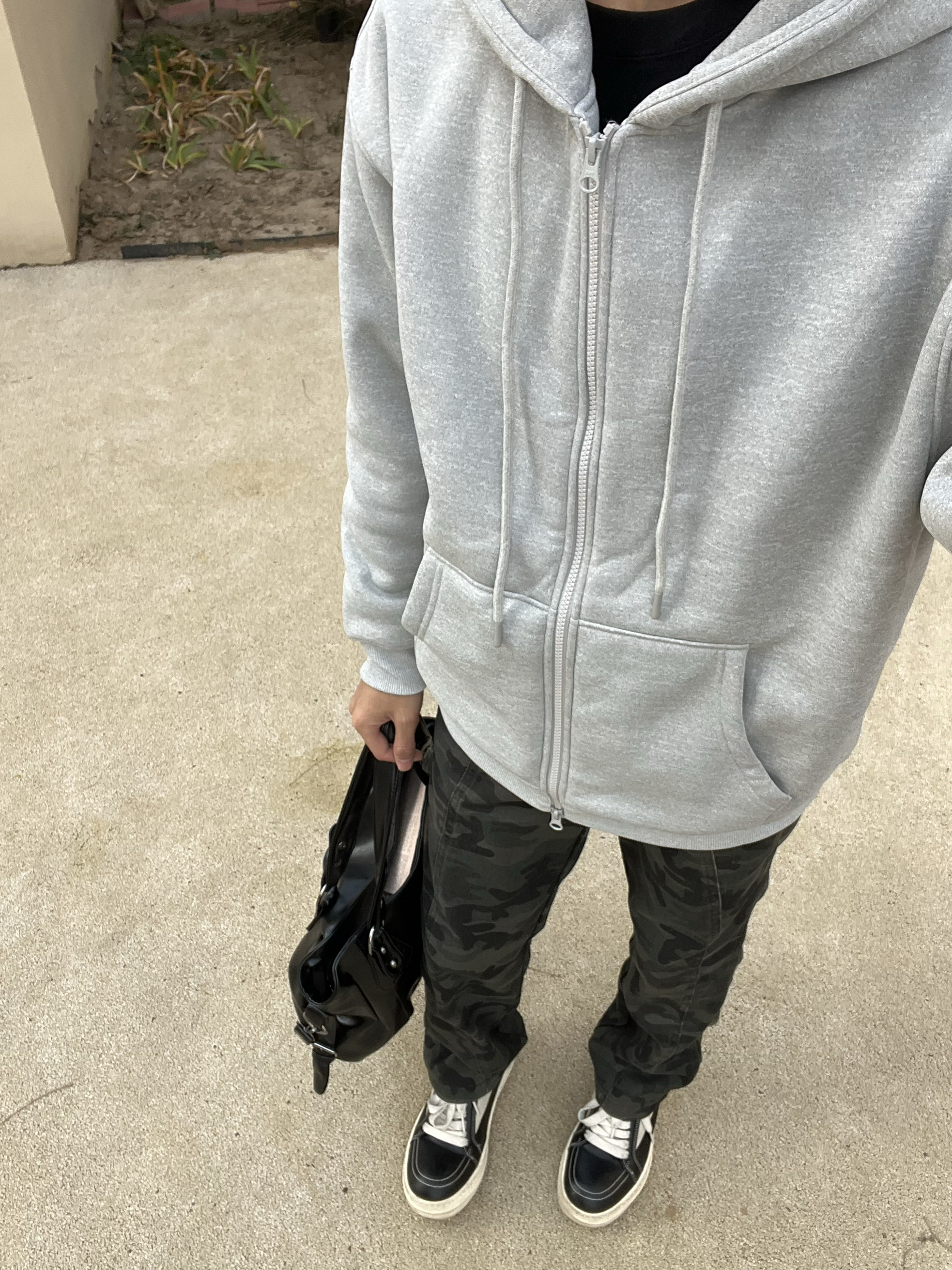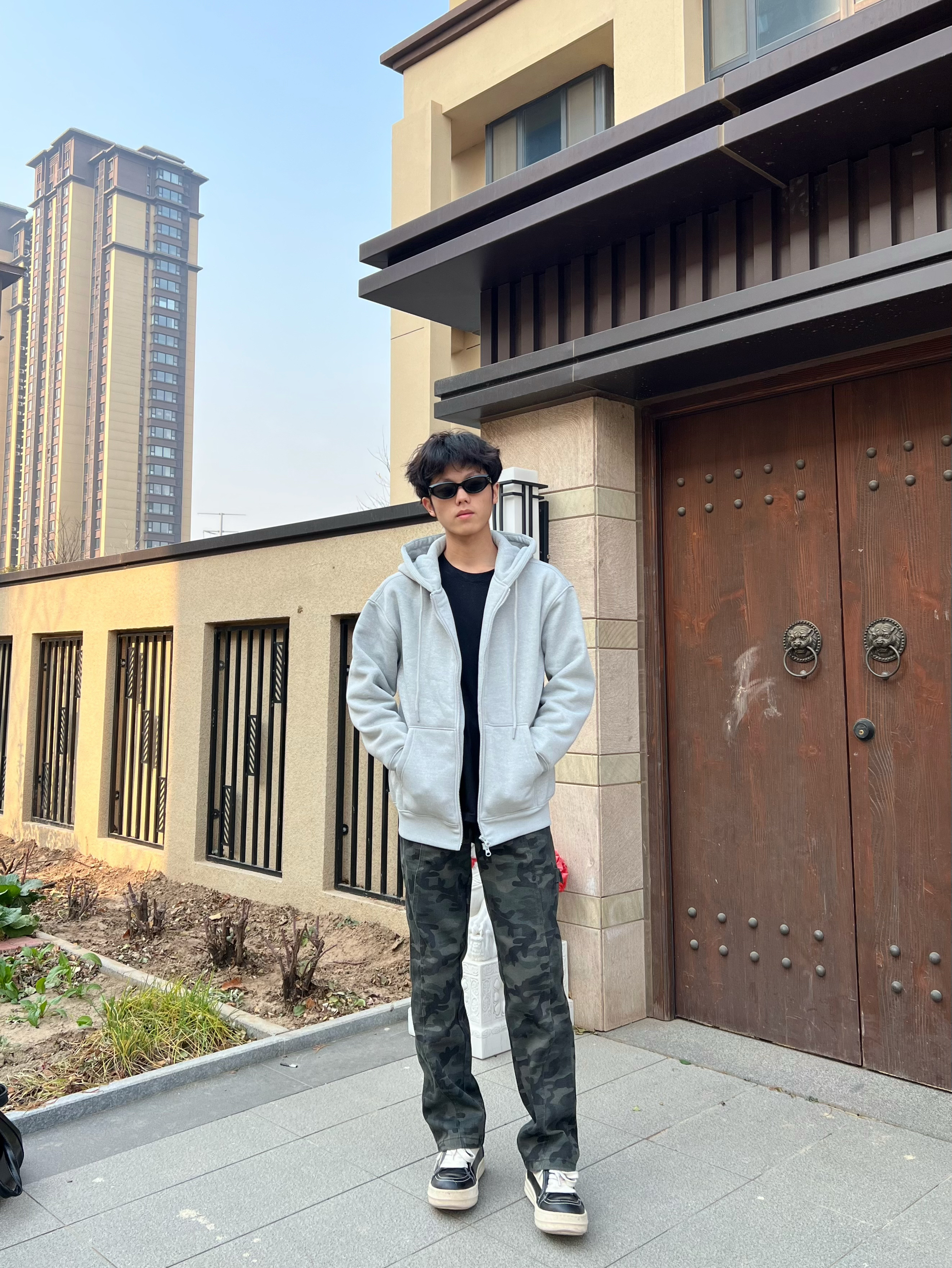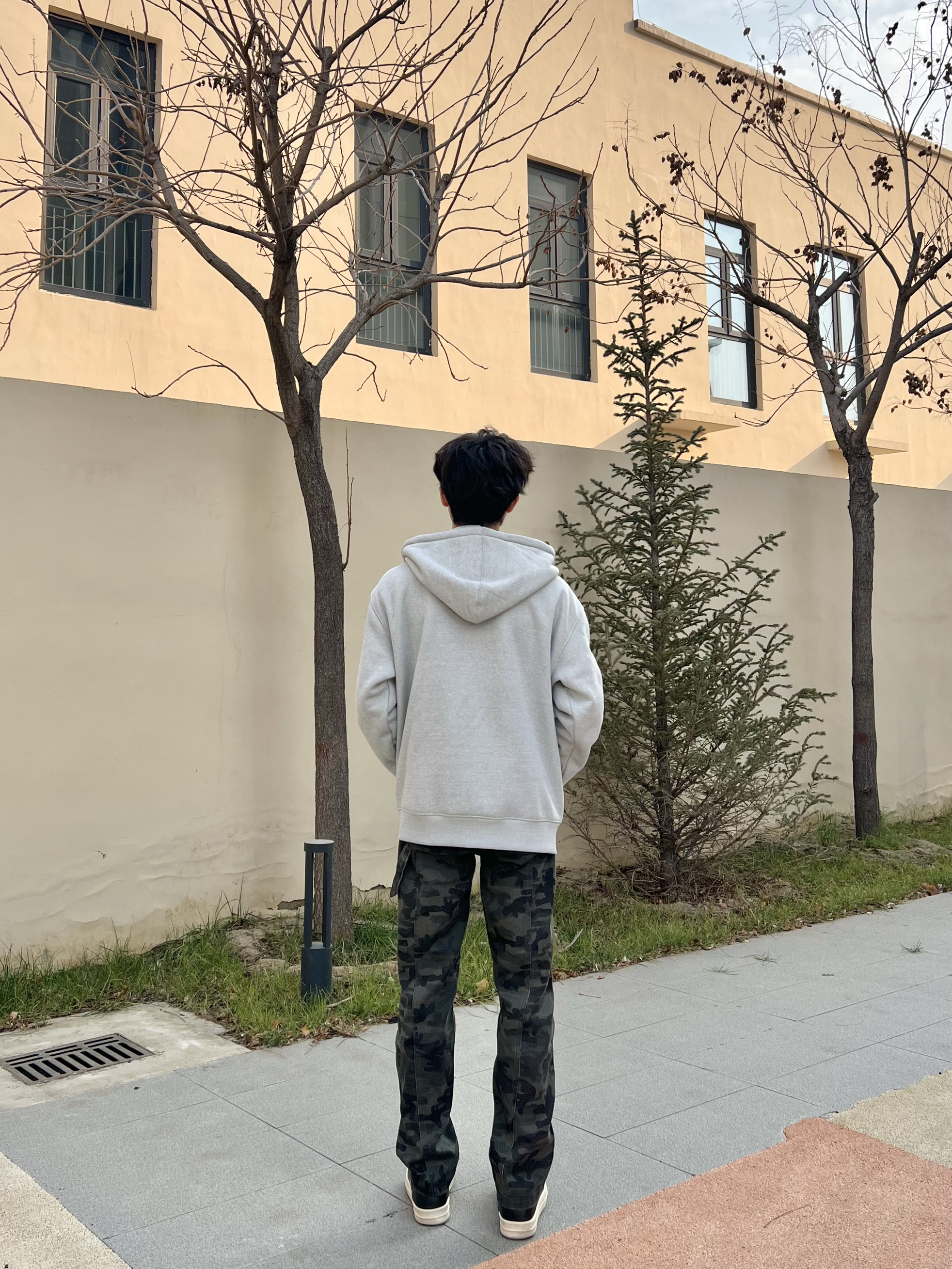 男生冬天不知道怎么穿看过来 今天这套日常通勤穿包帅的 简单的灰色开衫卫衣➕迷彩裤 简约利落街头感满满的 裤子版型也很显瘦 最后搭双板鞋轻松帅气出门