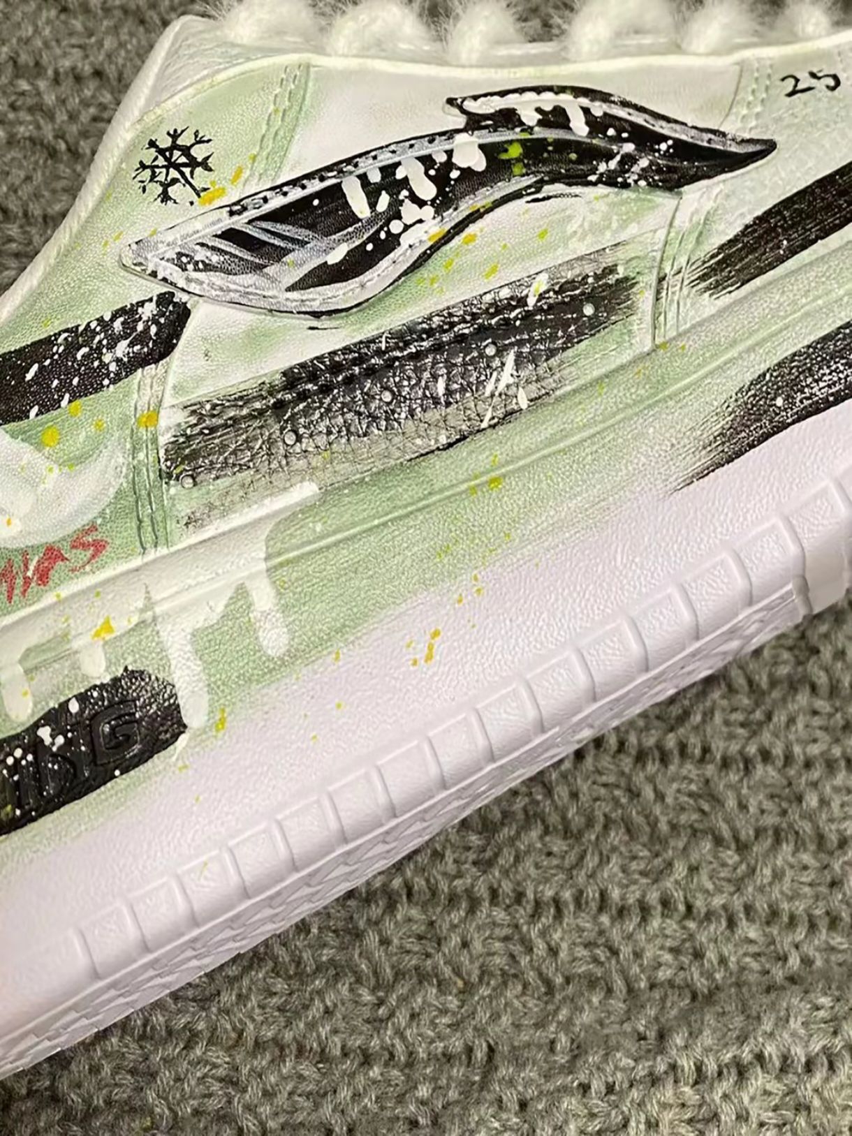 一眼就被这个配色吸引住了🤩 很有设计感的鞋子 黑+白+青色 也挺清新的 鞋身采用皮革材质打造,整体质感出色而且容易打理🎉 刚入手的时候,我开心的穿着它在操场上走了一大圈,搭配我穿的灰色运动服,整体看起来很有活力,朋友也夸我的鞋子好看。这双鞋穿在脚上一点也不觉得累脚🦶 适合日常通勤、旅行游玩哎,我平时搭配工装裤或者直筒裤,效果超好,牛仔裤也能轻松驾驭,完全不挑搭配👍 码数就按正常的选,不偏码✨ 喜...