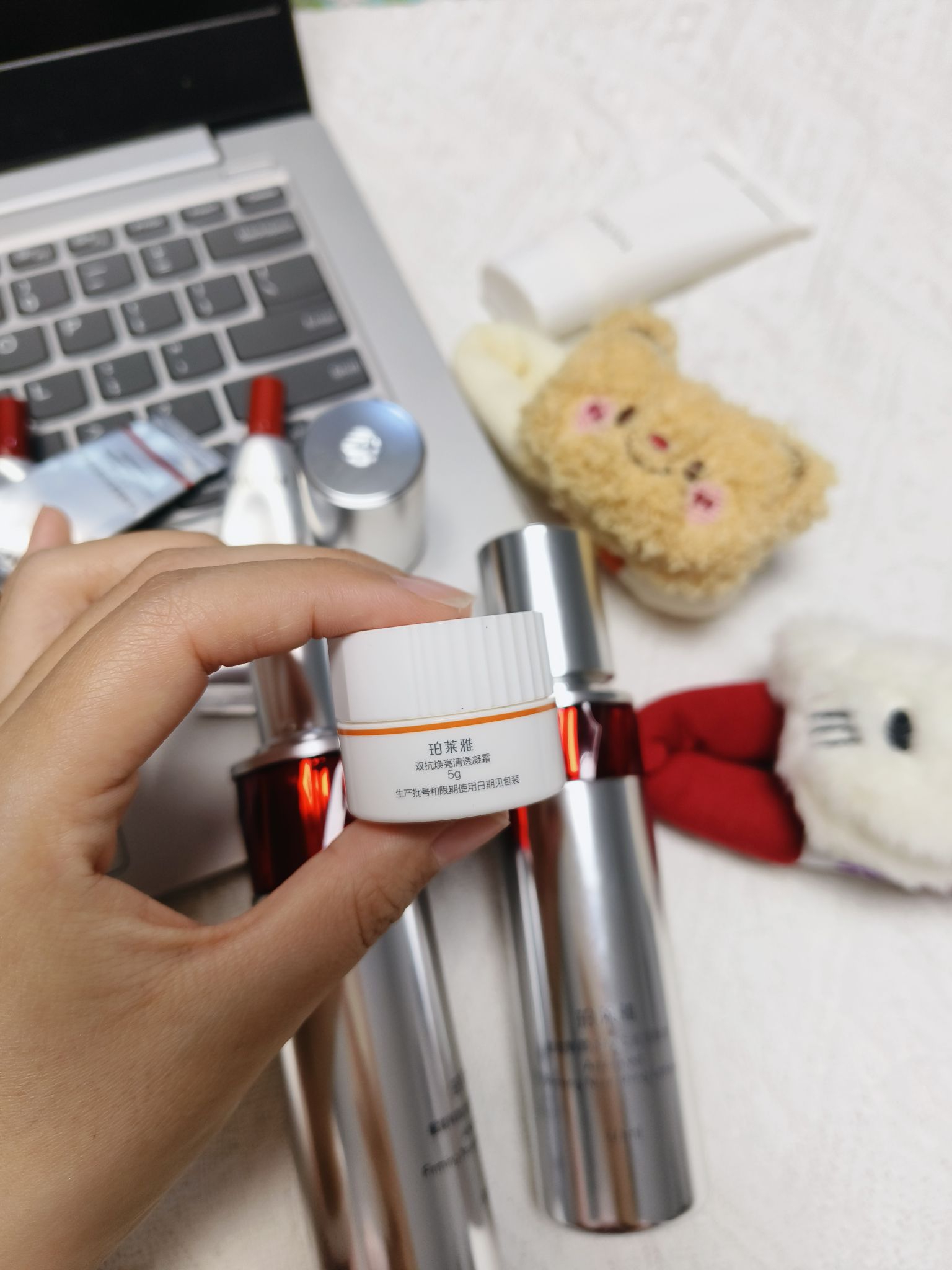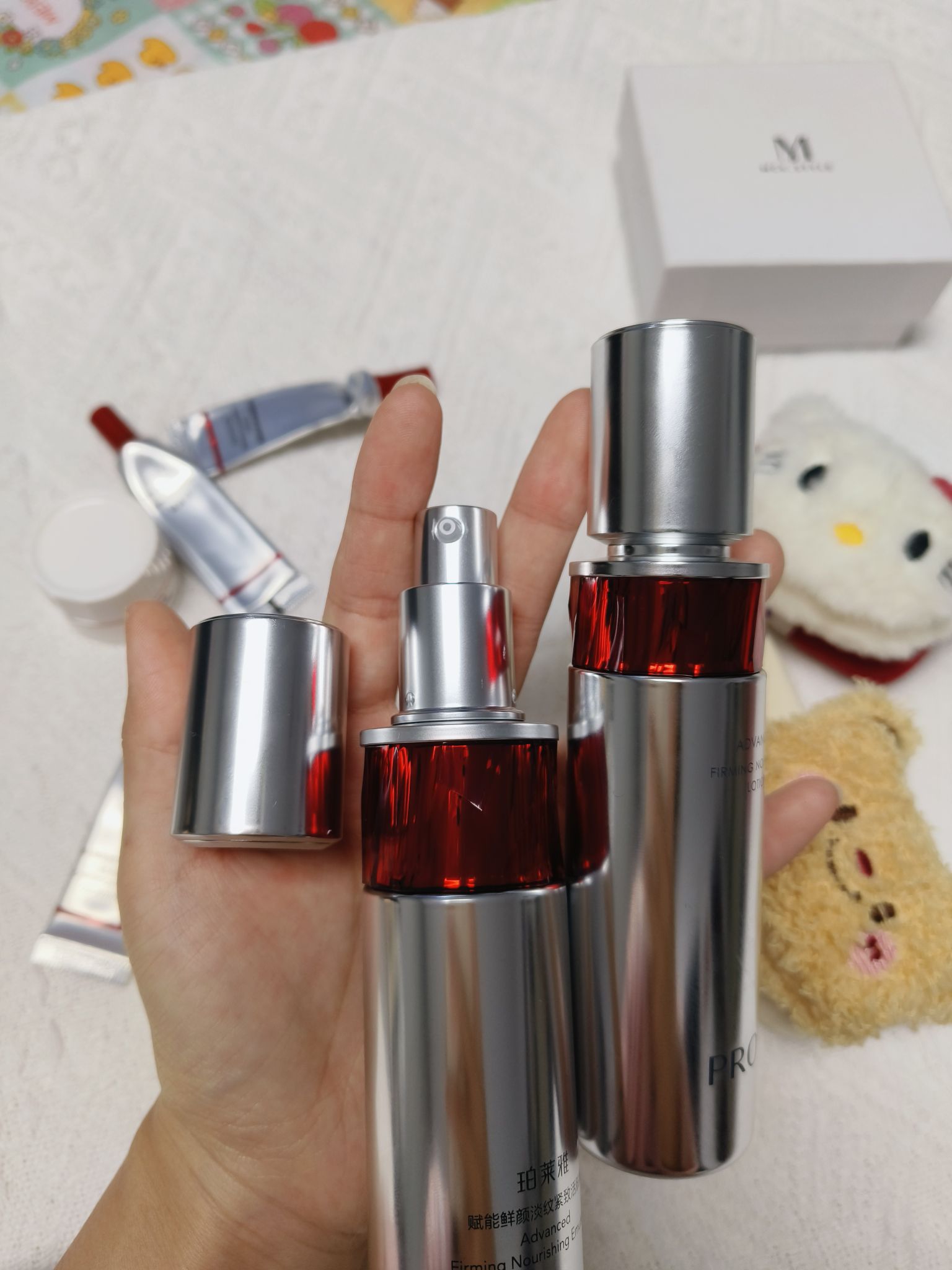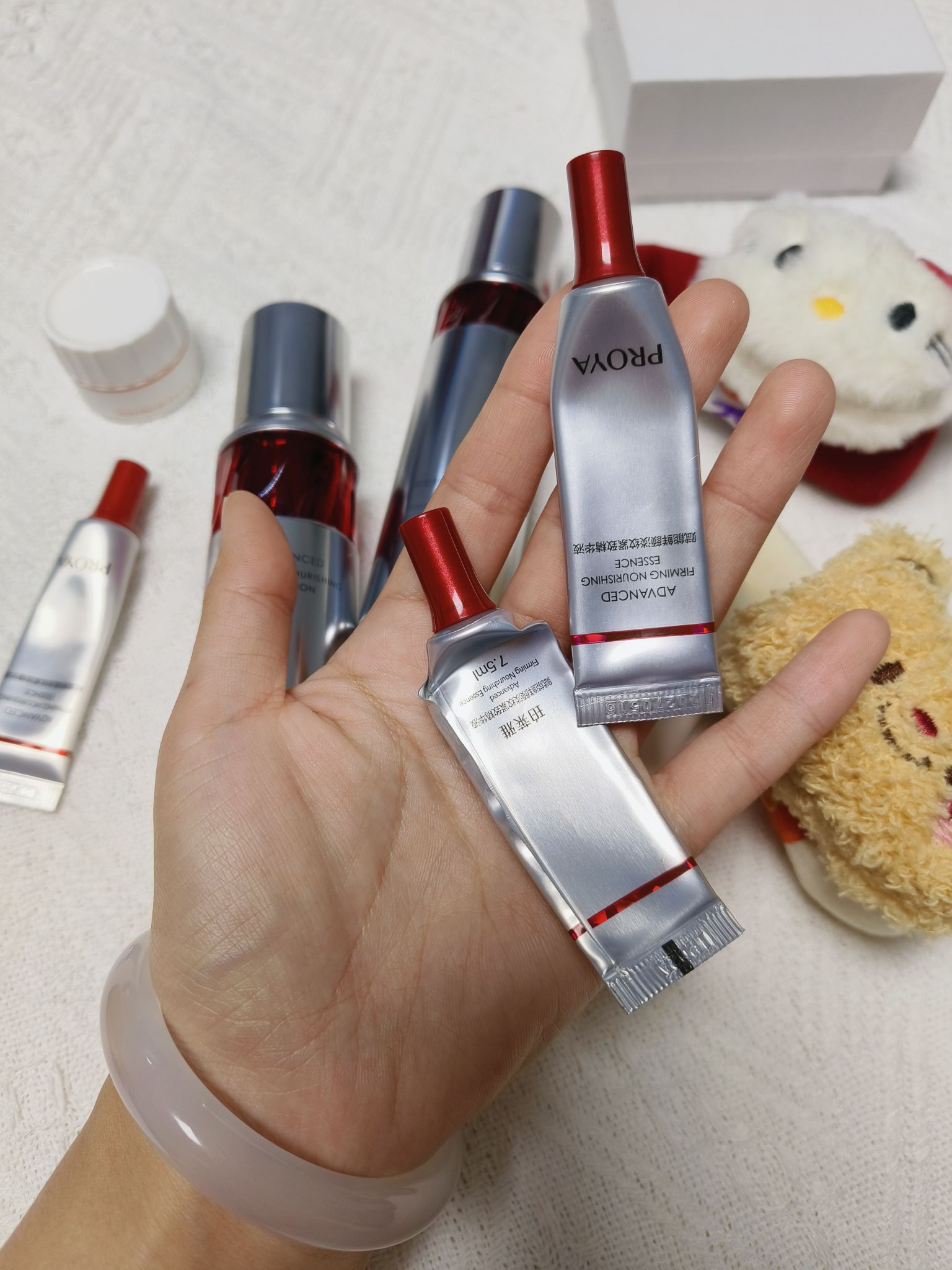 🌷这套护肤品主打抗老淡纹,我每天早晚坚持用,水和乳的滋润度刚好,不会让脸觉得闷;🌷精华的淡纹效果是真的看得见,眼角的小细纹都浅了。 🌷面霜晚上厚涂还能当睡眠面膜,第二天起来皮肤嫩嫩的。 🌷大瓶的水乳放在化妆台日常用,小小支的精华和面霜小样,塞进口袋或者化妆包都不占地方,出门旅行、出差带着超方便。而且正装的肤感和效果已经够惊艳了,小样的体验感也完全没差