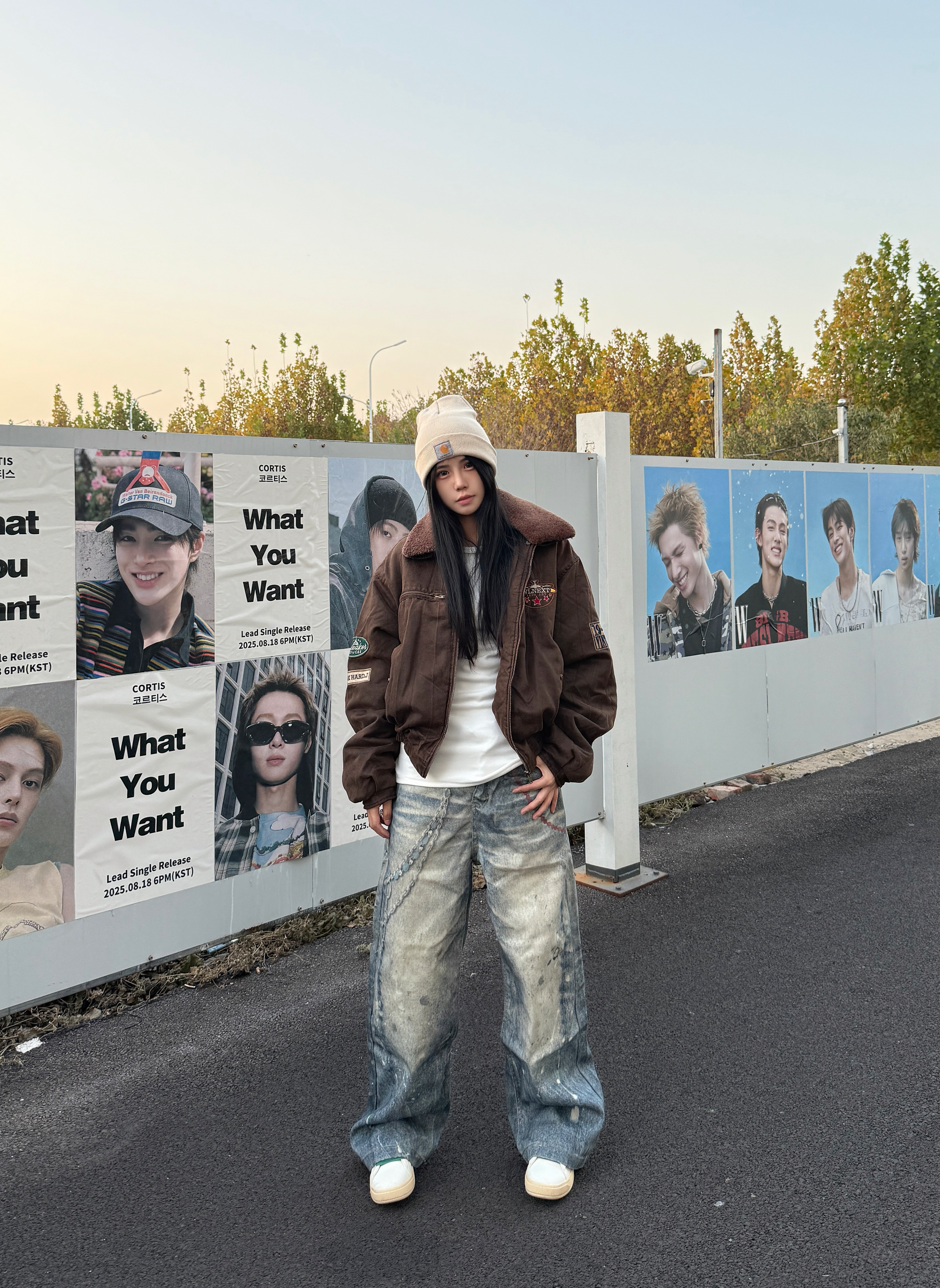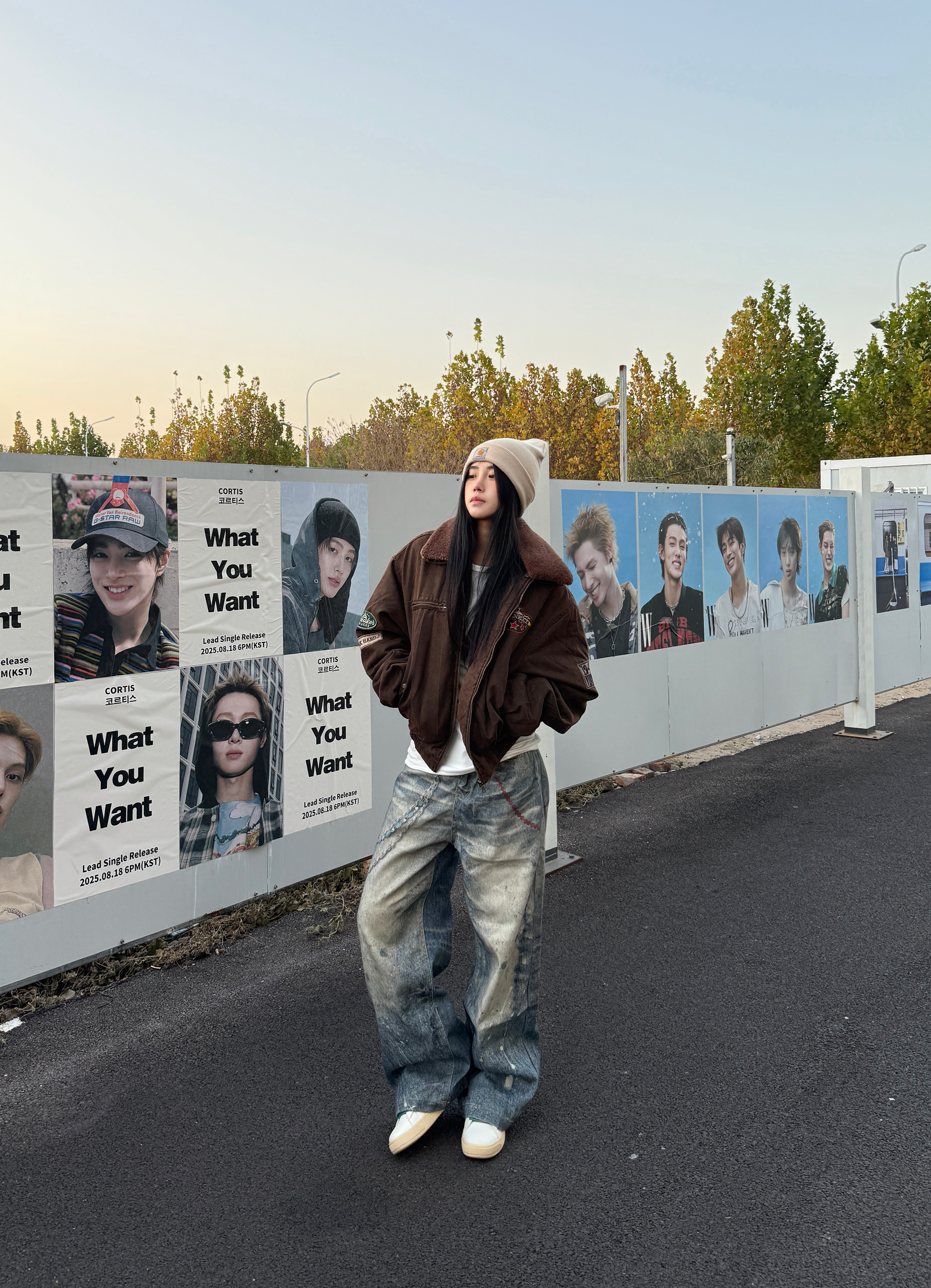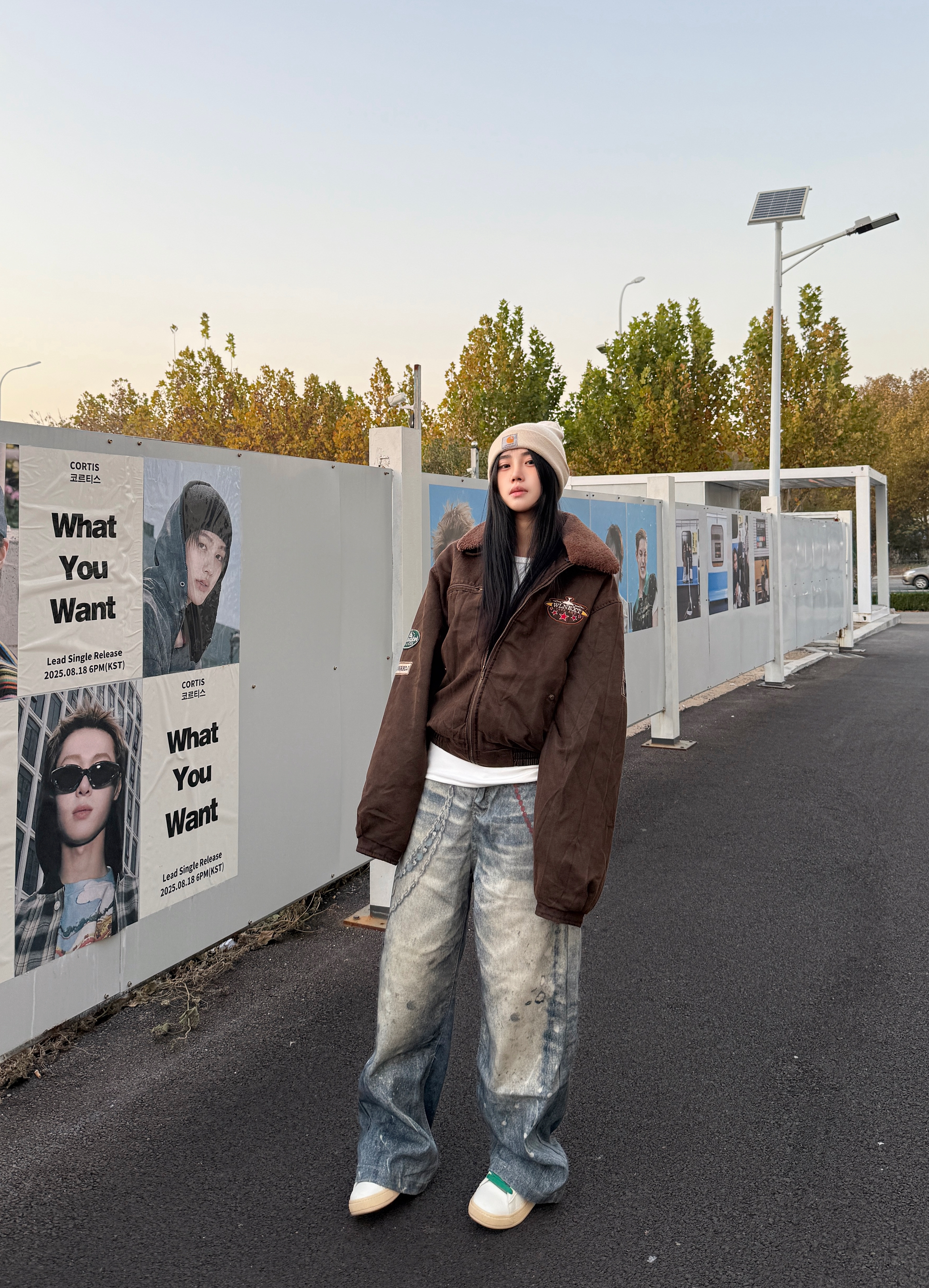 降温总要穿一件派克服 🌰上衣穿了一件深咖色飞行夹克 Logo贴布印标氛围感满满 搭配复古水洗牛仔裤超帅 最后戴一个冷帽增加氛围感 这套氛围感look你学会了吗