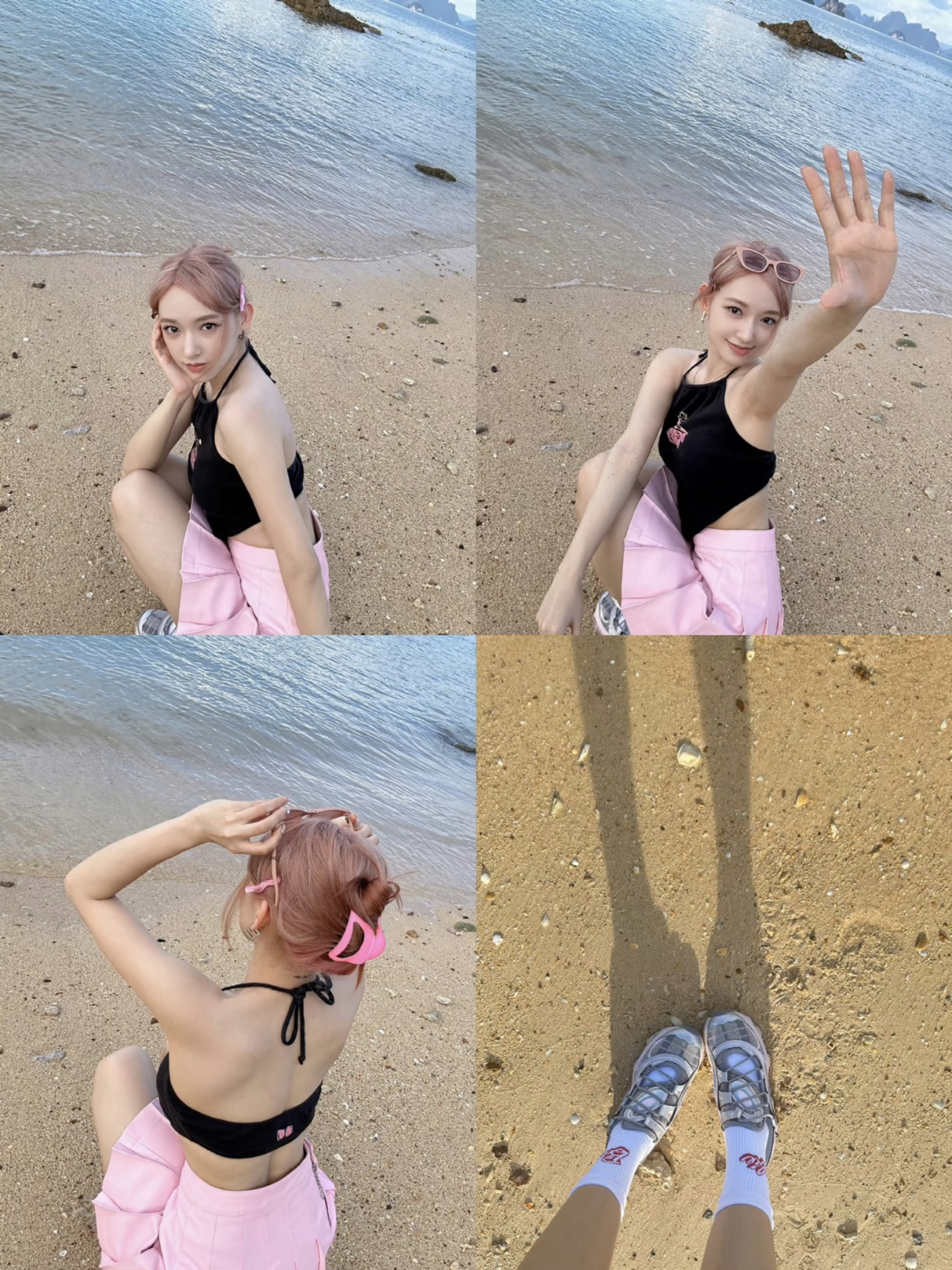 跟着程潇买穿搭准没错!这套黑粉撞色造型甜辣又度假感拉满 黑色挂脖背心配粉色百褶裙少女感十足,而她选的HYSTERIC GLAMOR休闲鞋更是点睛之笔。 粉银配色和裙装呼应,减震耐磨的设计兼顾颜值与实用性,轻松拿捏甜酷度假风。