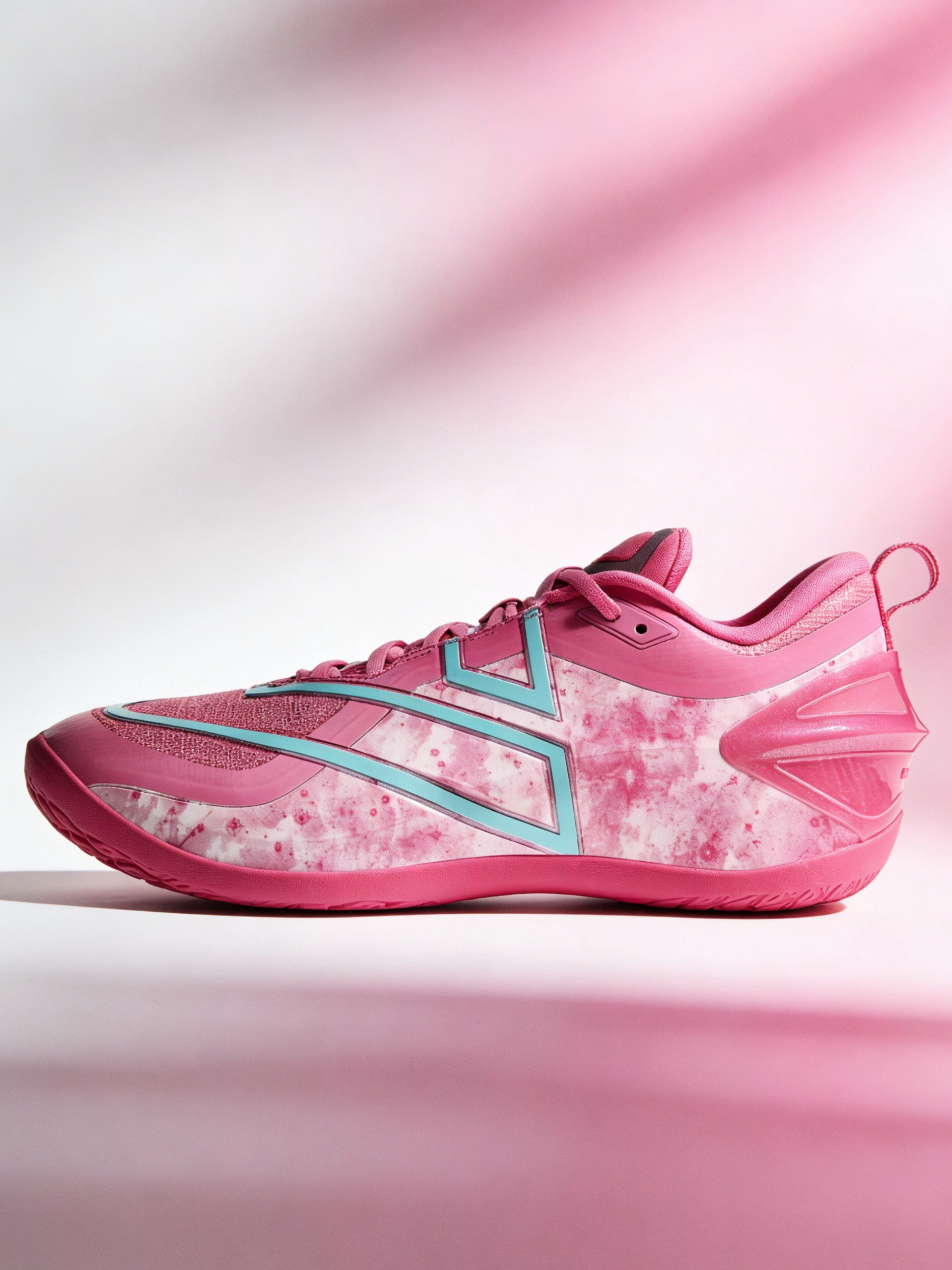 👟球鞋名称:匹克态极将军玫瑰色 🔍分享理由:好看又好穿 🤔整体感受:玫瑰粉为主色调搭配冰蓝线条,鞋身的泼墨纹理极具视觉冲击力,低帮造型利落,打破了篮球鞋常见的沉闷配色,颜值吸睛且辨识度拉满,日常穿搭也能成为亮点,实战与颜值结合的款式,既满足篮球运动的性能需求,又有独特的配色设计,很适合喜欢个性篮球鞋的玩家。