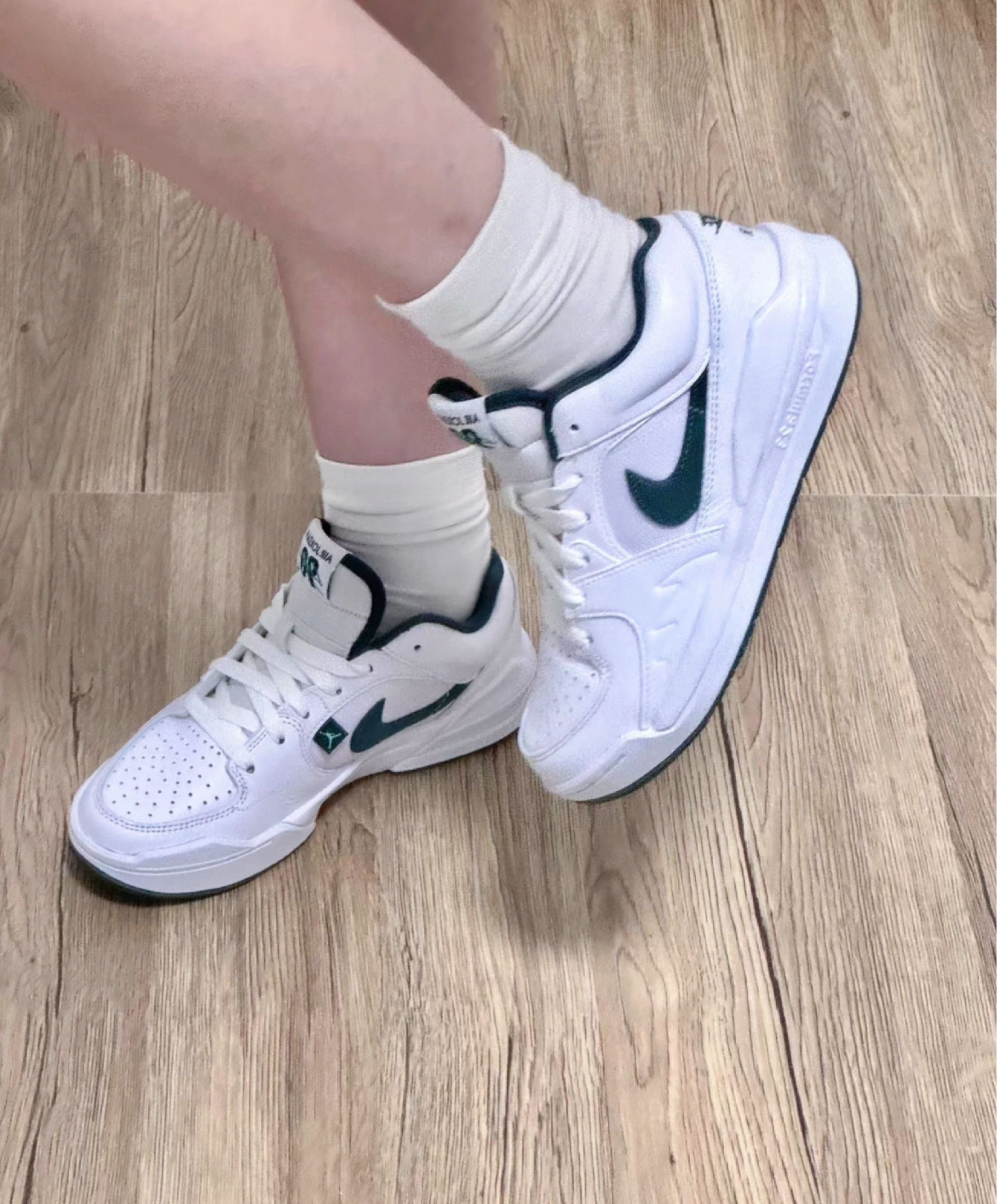 谁懂啊!挖到了一双颜值和脚感双在线的AJ,就是这双Jordan Stadium 90白绿款,上脚直接封神,已经成为我最近的穿搭本命鞋了! 第一眼看到它就被白绿配色拿捏住,经典的白色皮革鞋身搭配森林绿的绒面Swoosh,复古感拉满还不挑风格,不管是搭牛仔裤、运动裤还是小裙子,都能轻松适配,日常出街随便穿都好看。 脚感方面也完全没让人失望,Formula 23中底科技加上Air气垫,踩上去软乎乎的...