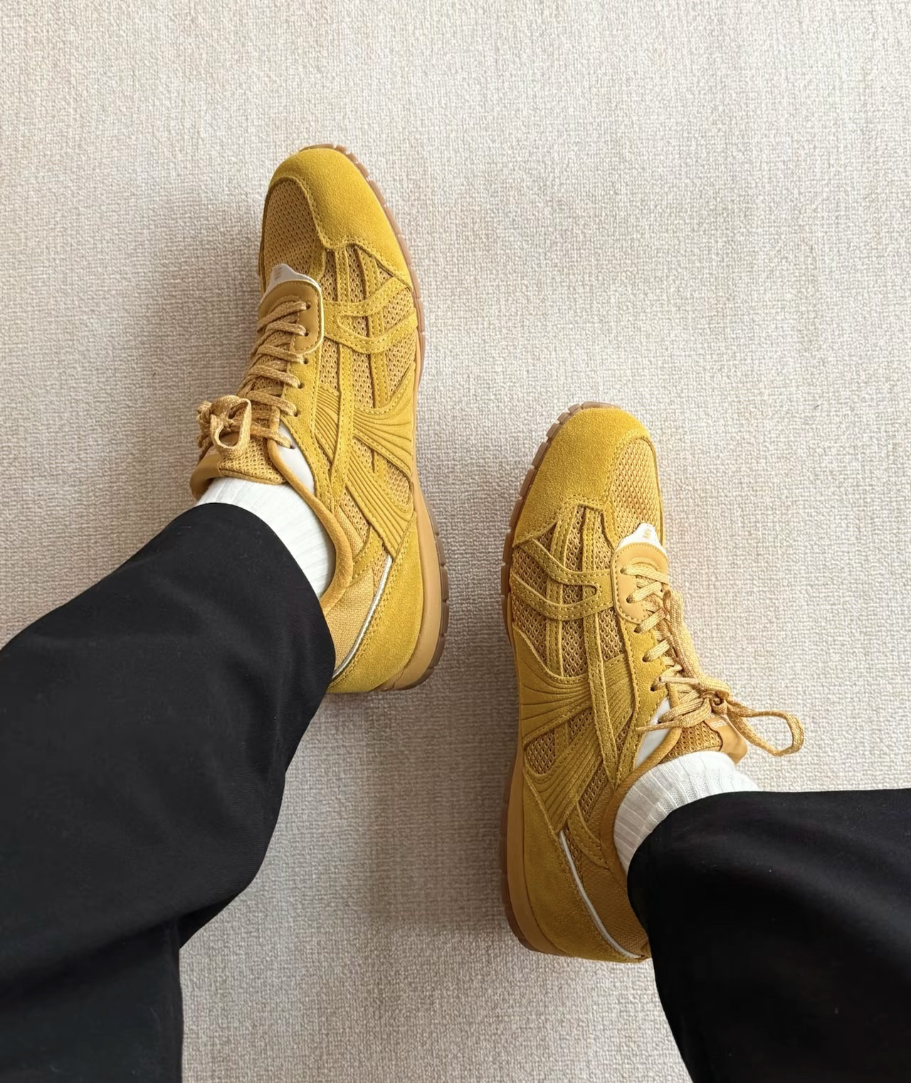 因为我真的很爱薄底啊 而且大部分都是亮色薄底 亮黄色的麂皮材质 非常适合秋冬季 而且它还有闪穿的功能 直接一脚蹬进鞋子里 太适合我这种懒人了
