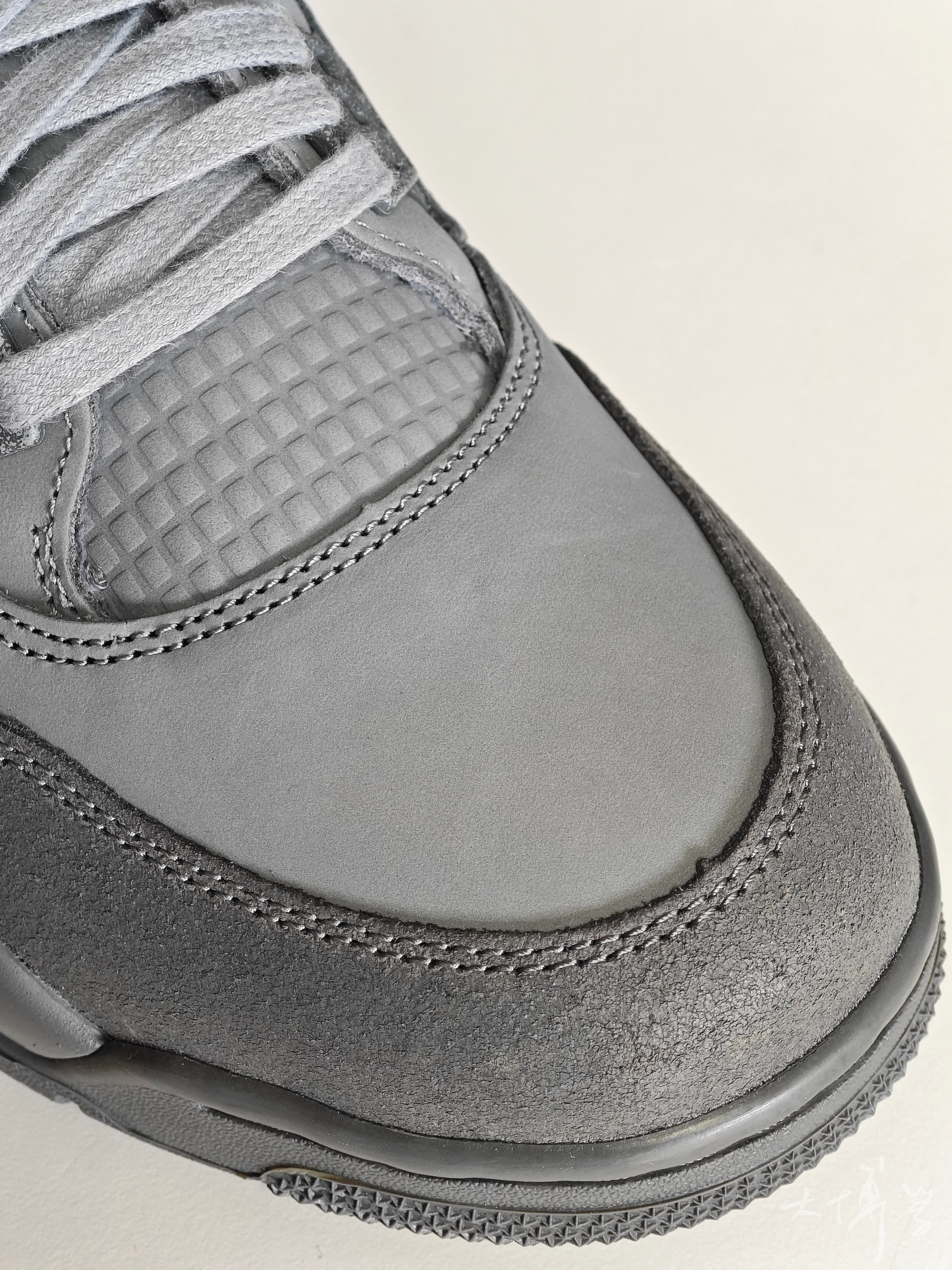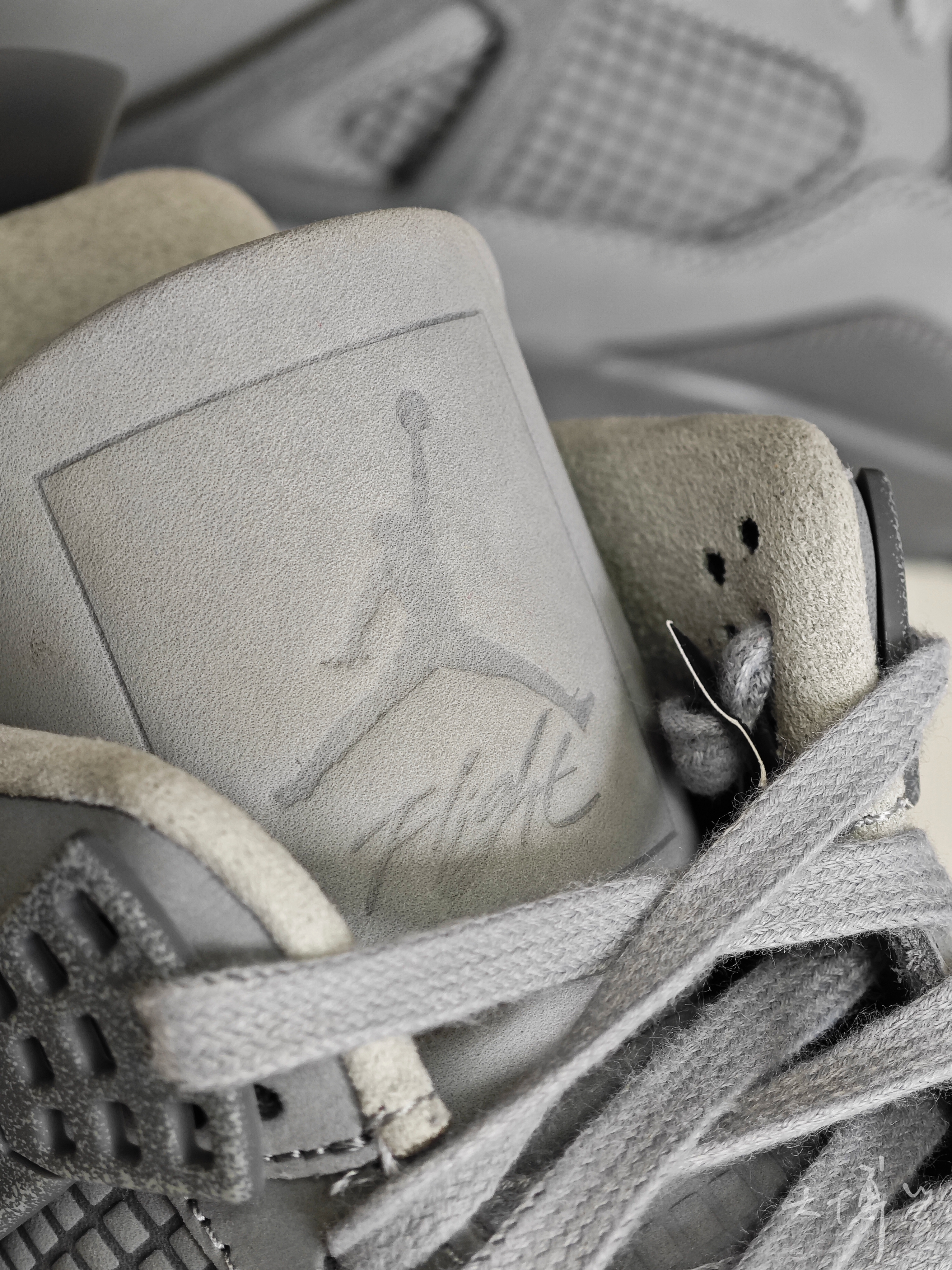 一双灰色为主的AJ4 可以说是去年我比较期待的一双 类似Kaws配色 引起我的兴趣 到手发现这款质感、颜值都令我满意 另外这款鞋舌和侧面透气网并不透气 很适合现在冬季使用