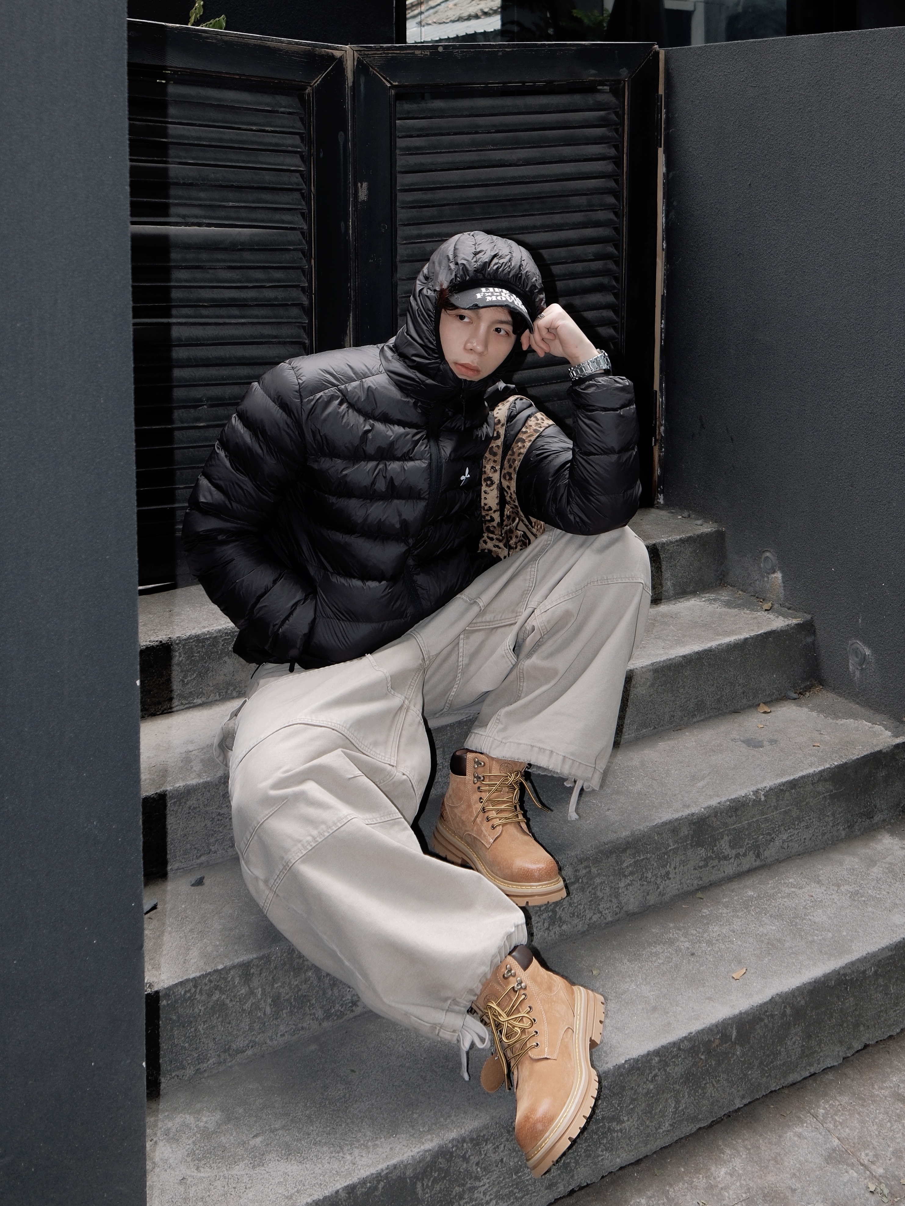 不会有人还没有一款排骨羽绒服吧 上身纯色经典百搭款排骨羽绒服 简约时尚😉 搭配杏色硬挺工装长裤 大阔腿版型很有街头vibe 大黄靴更是不用多说 一年四季的百搭王者呀🤩 厚底增高优化身材比例~