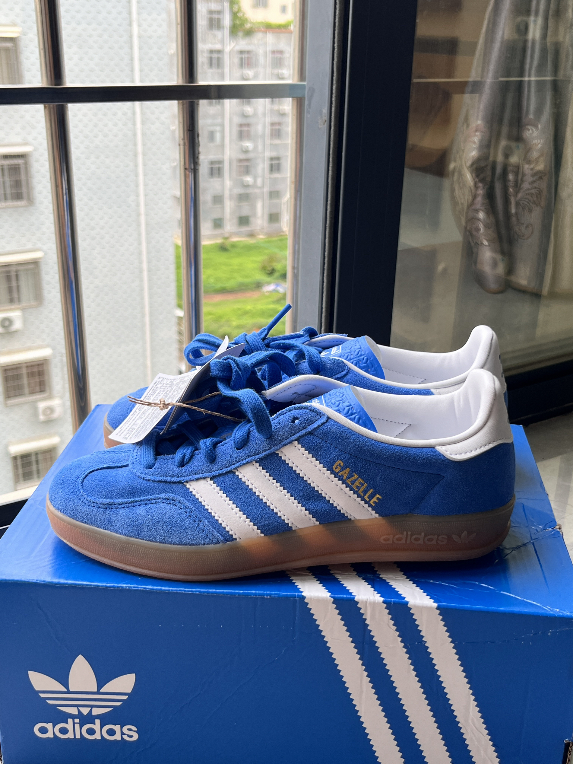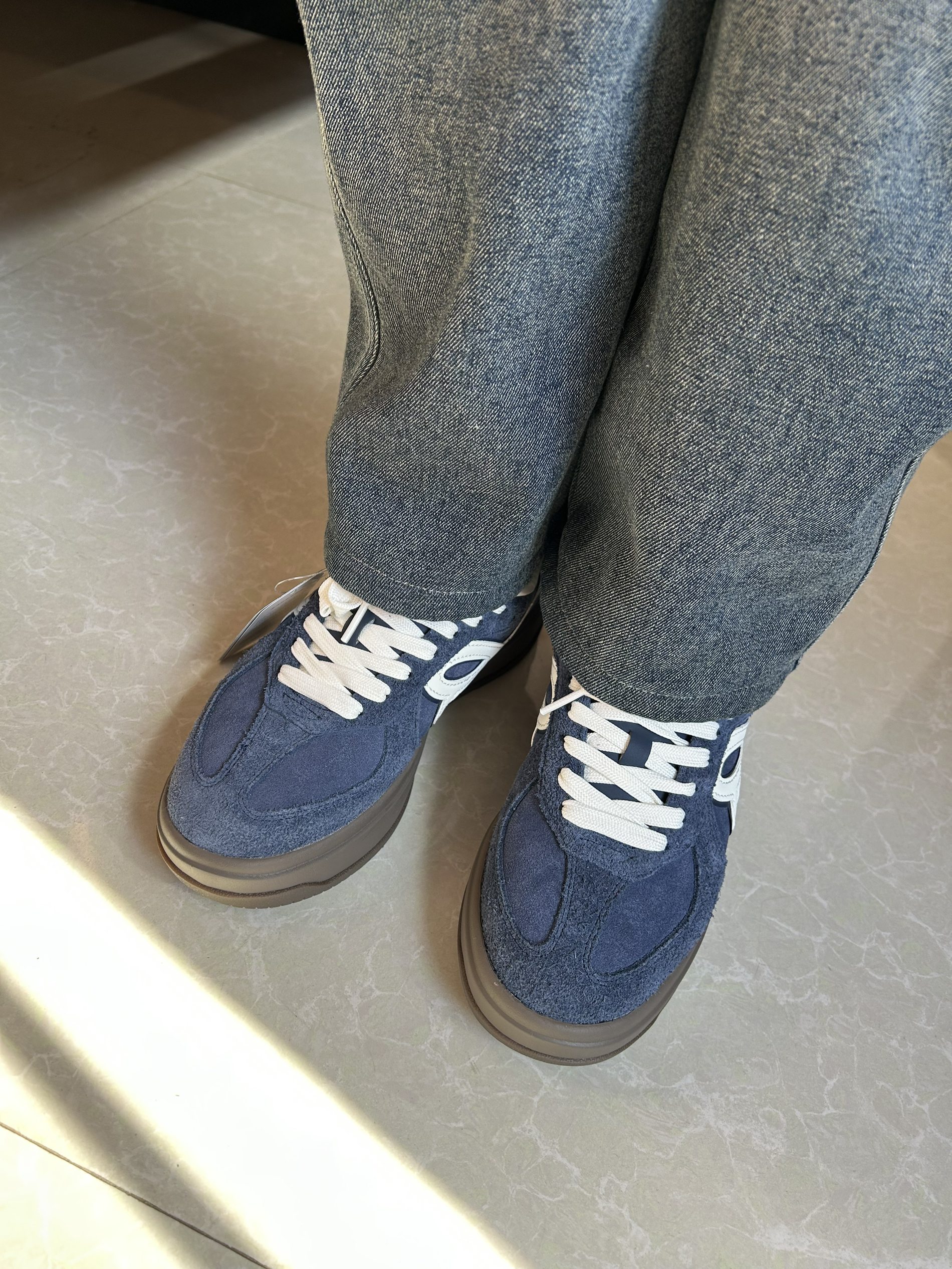 终于收到这双HBD增高版德训鞋,穿了几次忍不住来分享。最让我惊喜的是鞋底——真的超级舒服,走起路来像是脚底有个小弹簧,软软弹弹的,走路久了也不容易累脚。 关于尺码,我平时运动鞋穿38.5,高帮或靴子一般选39。这双也拿了39,穿着正好,包裹感很好但不会挤脚。建议按自己穿高帮鞋的尺码选,不用刻意选大。 皮面质感很适合秋冬,复古蓝也很耐看,搭配牛仔裤或休闲裤都挺轻松。鞋子整体比较轻,穿着不笨重,最...