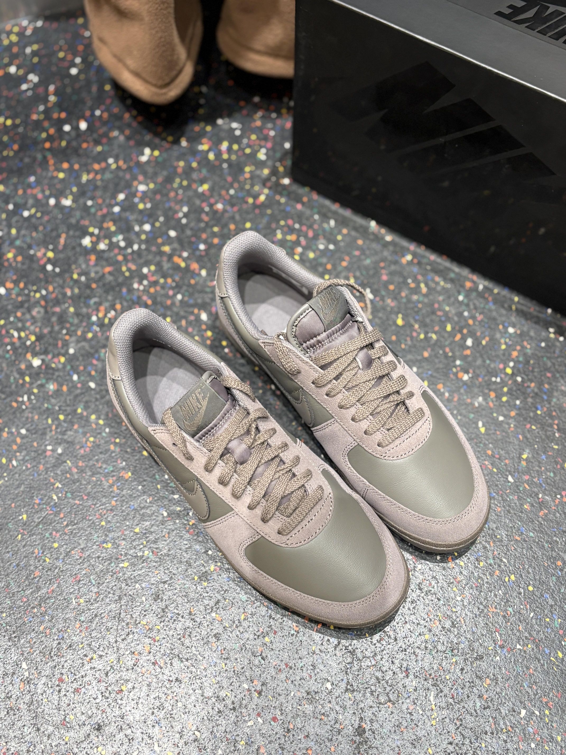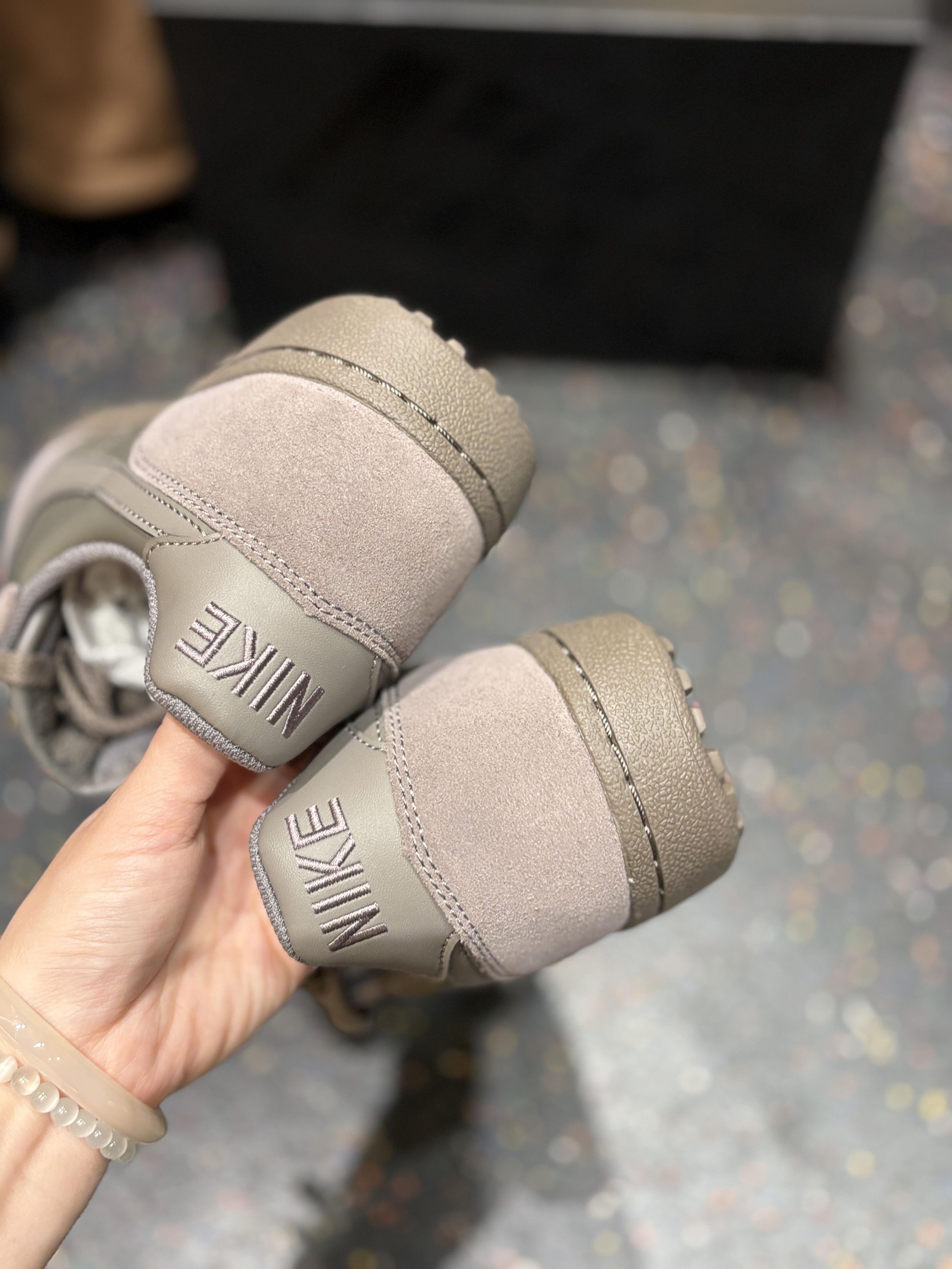 ✅ 核心亮点 1. 温柔奶茶美学:奶茶棕色鞋身,色调温柔高级,麂皮与皮革的材质拼接提升了整体质感与层次感。 2. 经典百搭廓形:沿用经典板鞋鞋型,鞋身线条流畅,低饱和配色使其能轻松融入各类日常裤装与裙装。 3. 软弹舒适脚感:中底调校软弹适中,提供出色的日常行走舒适度,长时间穿着不易疲劳。 🔥 上脚感受 上脚后鞋面包裹柔和,脚下有明显的柔软缓冲感。奶茶棕色上脚显白且不挑穿搭,是随手一套就能出门...