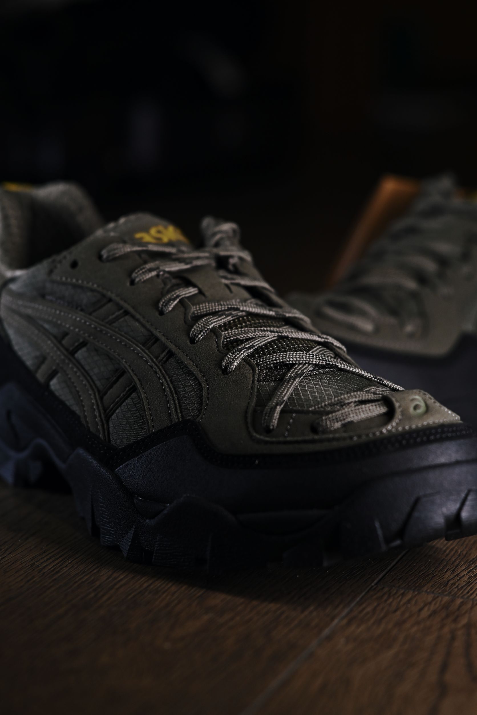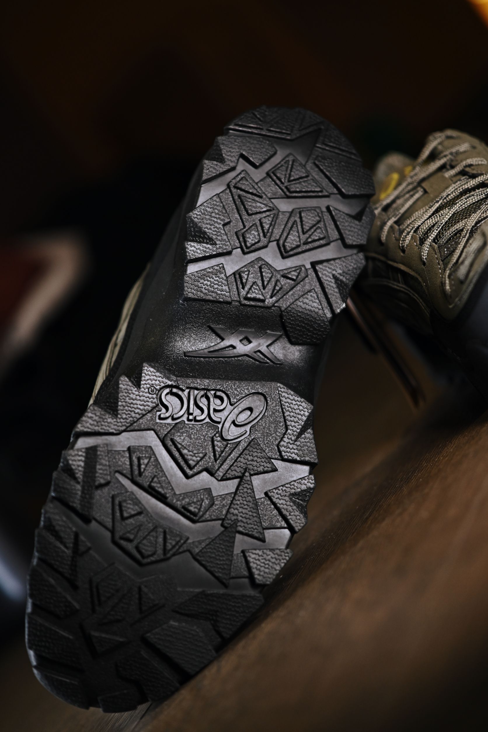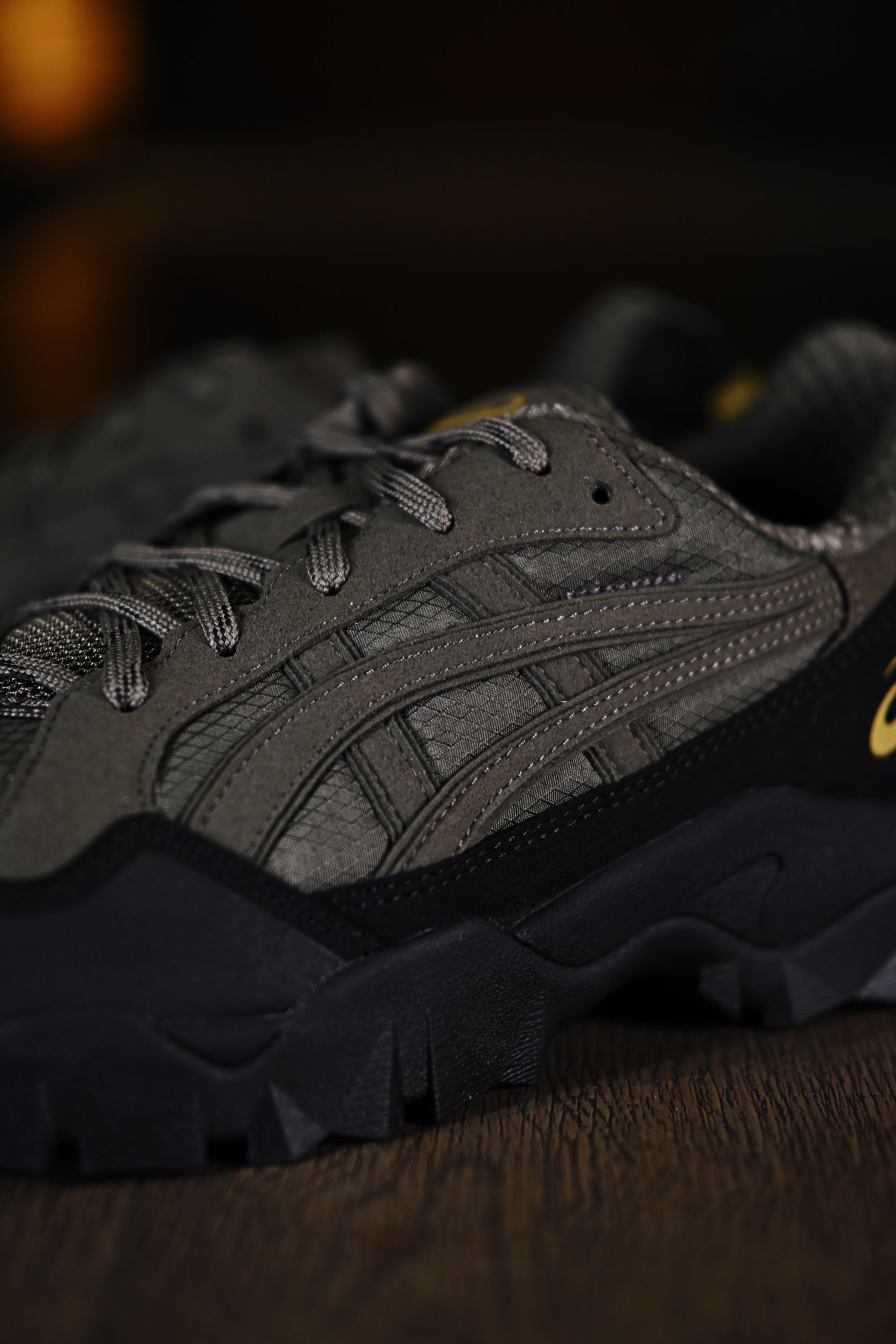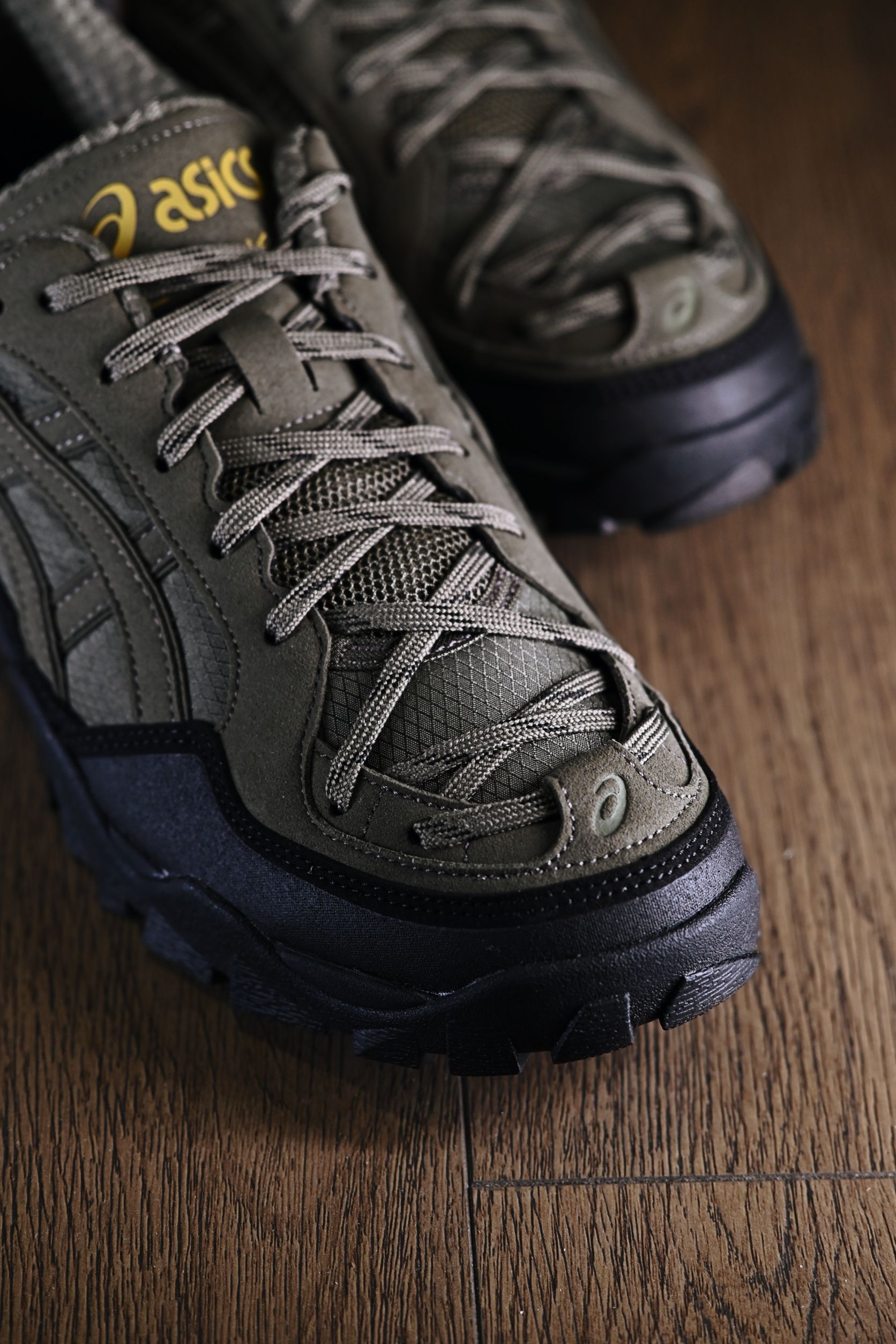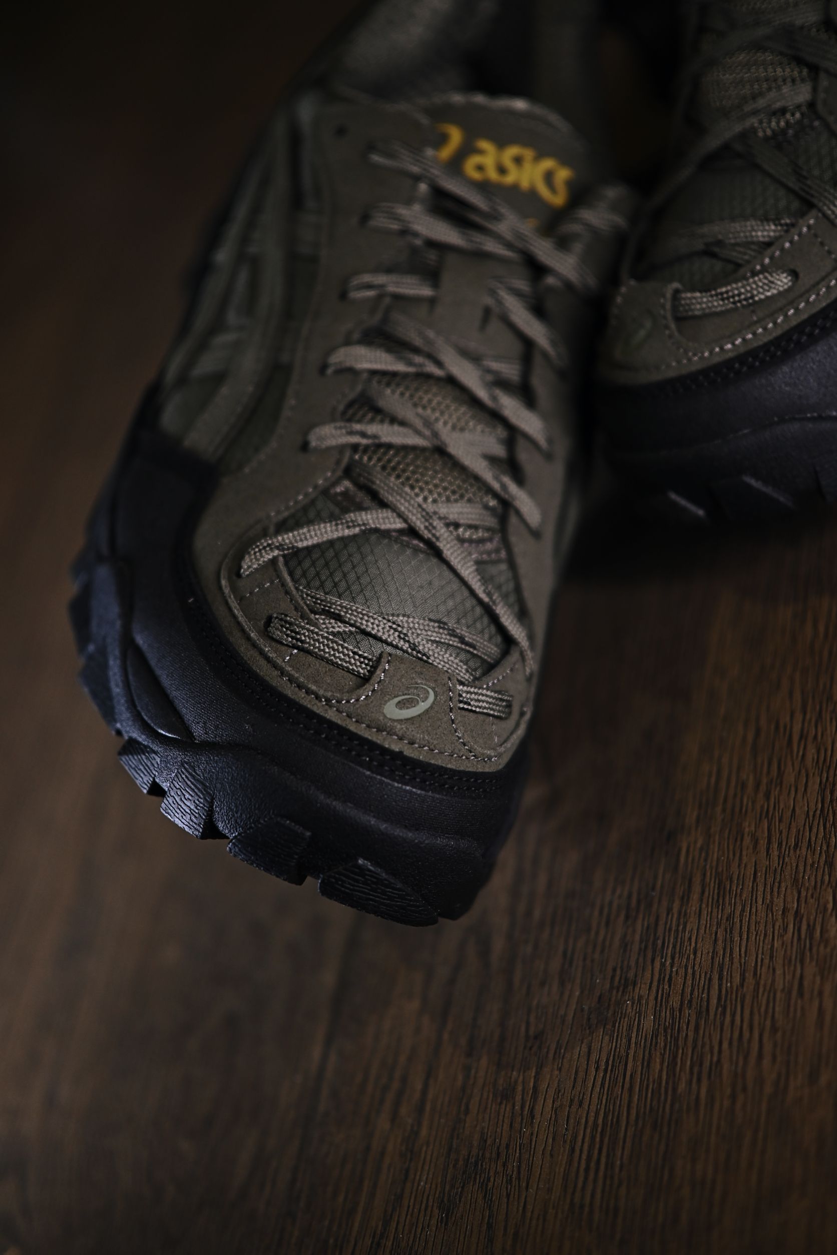 也是头一回入手Asics的这个系列的跑鞋 非常硬朗的一个设计 环抱式的中底搭配上这个墨绿的科技面料 户外机能风已经呼之欲出了 不说别的,单颜值这块就够唬人了吧
