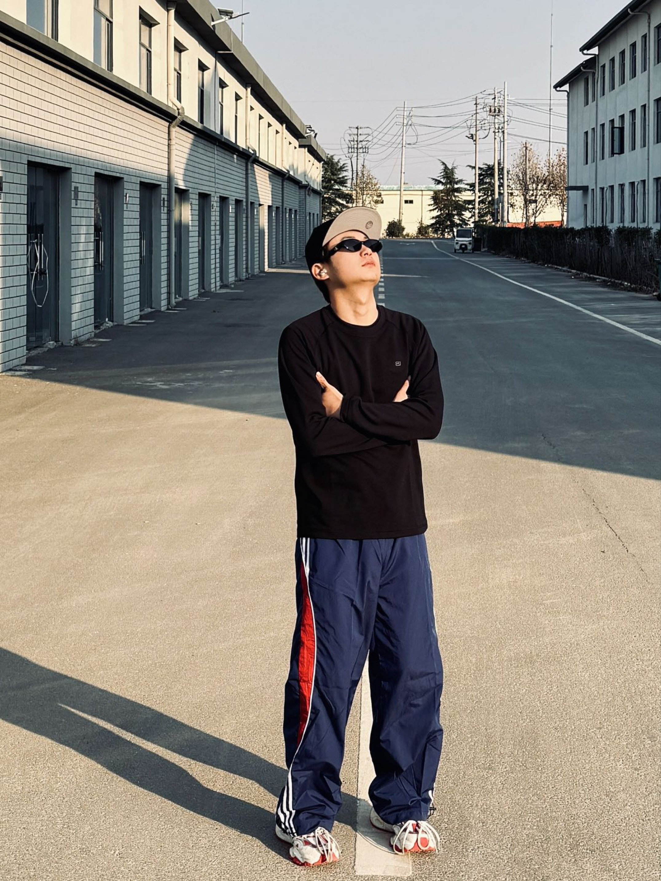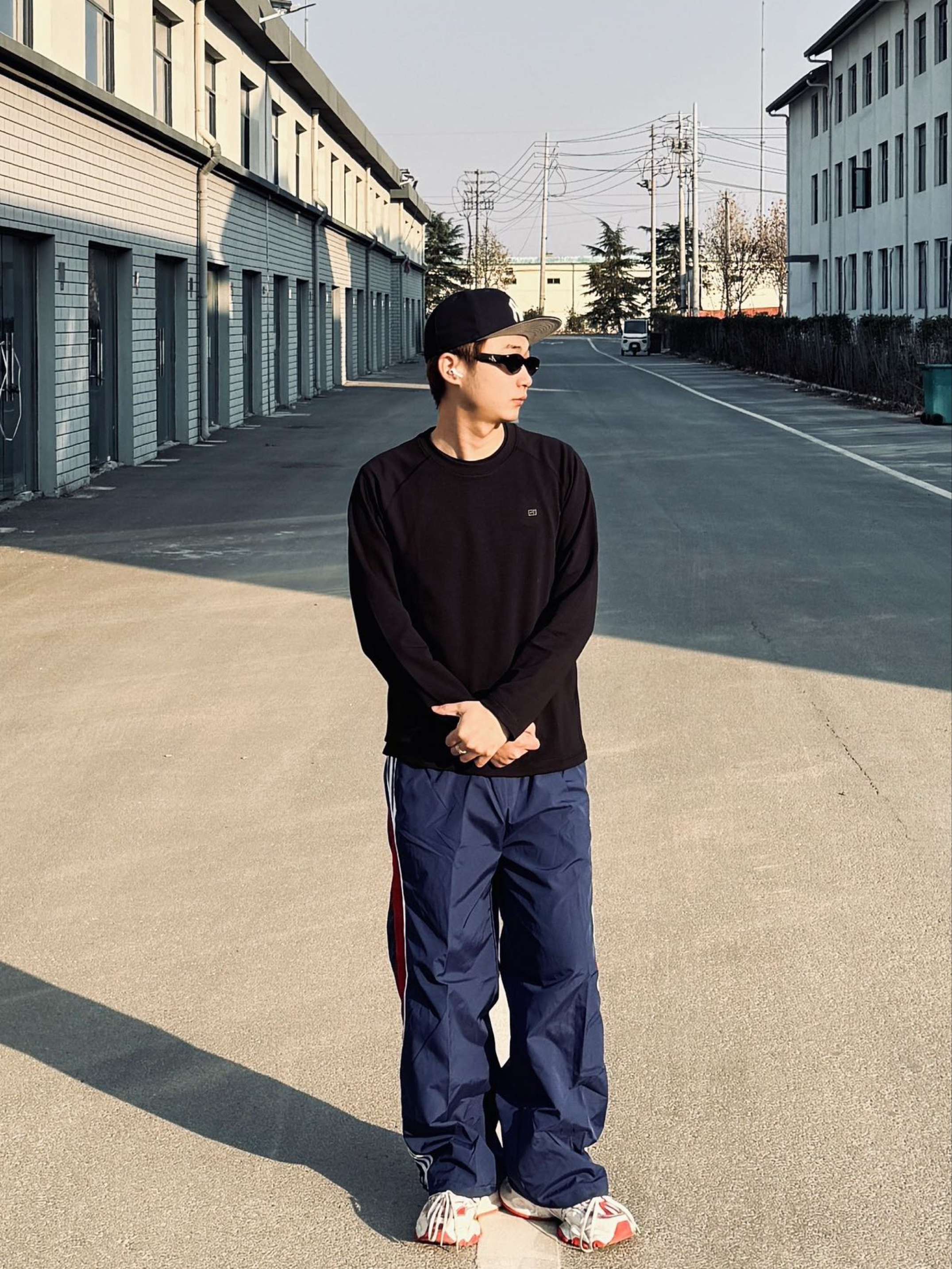 冰美式今日穿搭💢 年度穿搭怎么能使得了街头 秋冬街头穿搭主打一个松弛不刻意😎 — 👔蕉内Bananain 热皮502长袖机能T恤 黑长袖的热皮面料❤️🔥 速干锁温还亲肤 贴身穿不闷汗 — 👖藏蓝撞色运动裤复古拼接超有范儿🔥 不加绒但够软 宽松版型甩腿超自在~ — 👟白红老爹鞋踩出街头腔调 透气不闷脚 搭顶藏蓝棒球帽🧢 黑蓝红撞色层次感拉满☀️ 不用费脑叠穿 一套出门又帅又舒服 — 178/14...