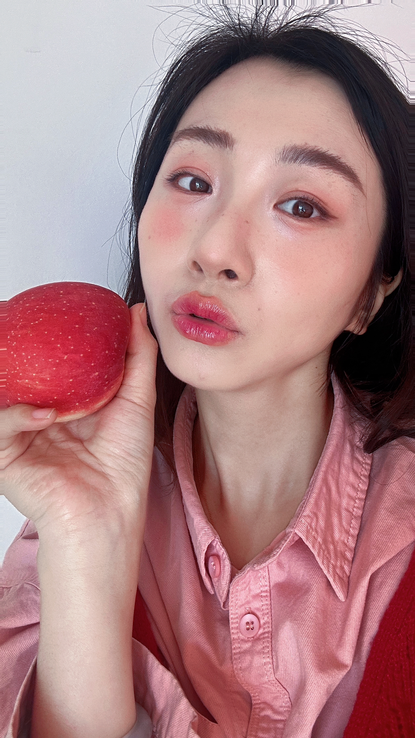 秋冬化一个粉系芭乐妆 吸睛又减龄! 整体妆容很适合日常逛街 聚会 简约又百搭 搭了一套粉系衬衫 很喜欢这种色调统一的妆容~ 叠涂上这款迪奥唇釉 自带的氛围感就来了 简直太甜啦~ 脸颊内侧点涂了一些水光 这是我的透亮肌秘诀 感觉一下又韩了~ 家里没有芭乐 拿了一个苹果拍照 也好有上镜感 真的太漂亮啦!真想把这个妆焊在脸上!