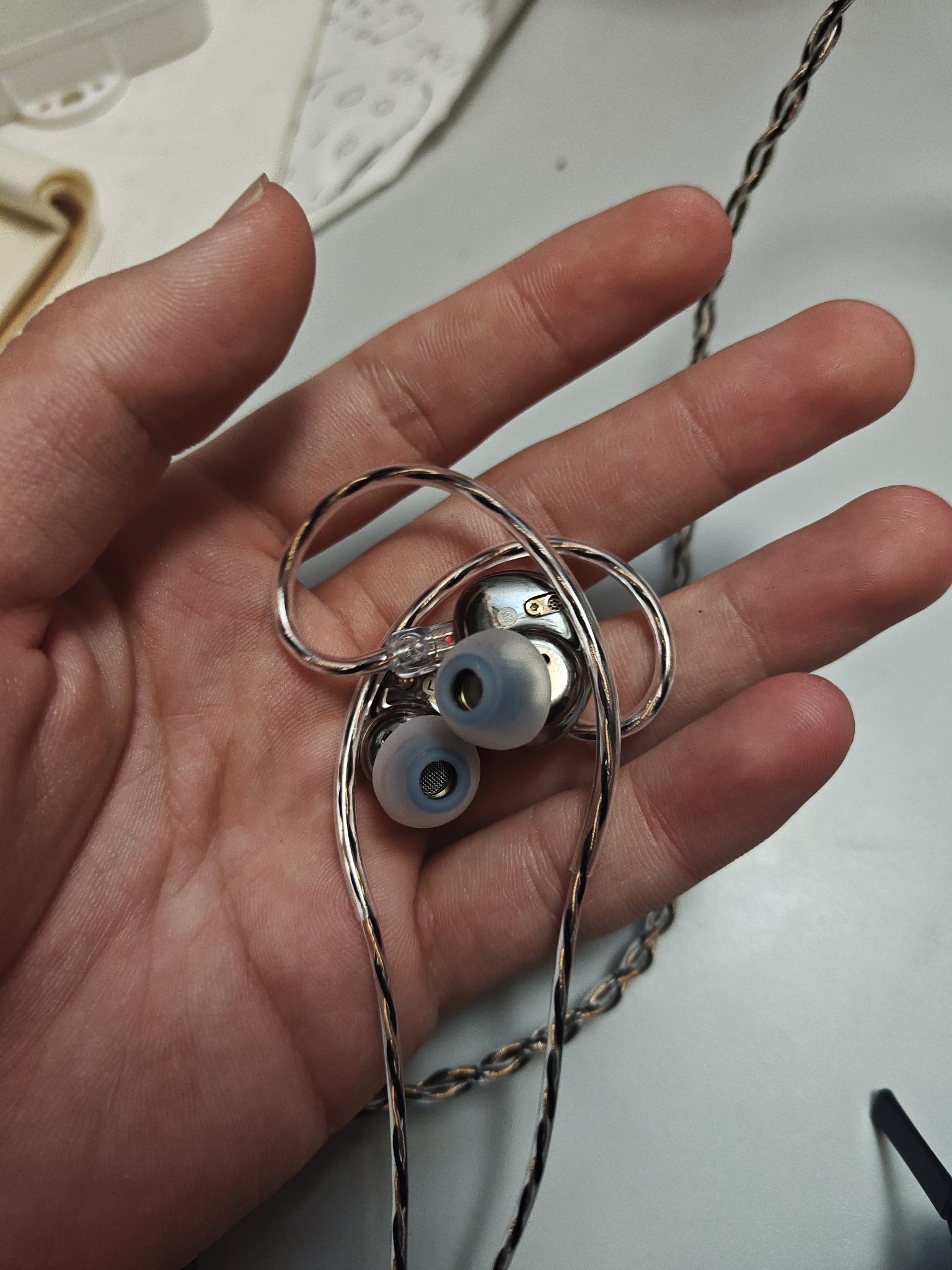 兴戈EA500LM耳机开箱啦🎧 哈喽,宝子们 今天来给大家开箱这款兴戈的耳机~ 首先拿到手的是它的外包装,打开之后,里面的配件很贴心哦,有一个黑色的收纳盒,看起来质感不错,应该能很好地保护耳机。然后就是耳机本体啦,它的耳机线是那种编织的样式,看起来很结实,应该不容易打结或者损坏。耳机的外观设计也挺精致的,拿在手里感觉做工很细腻。 从外观上看,这款耳机的设计还是很用心的,收纳盒方便携带,编织线...