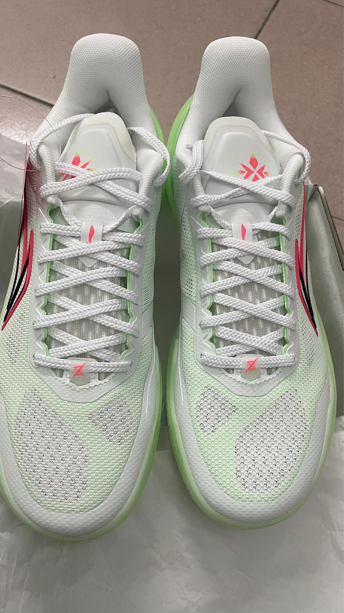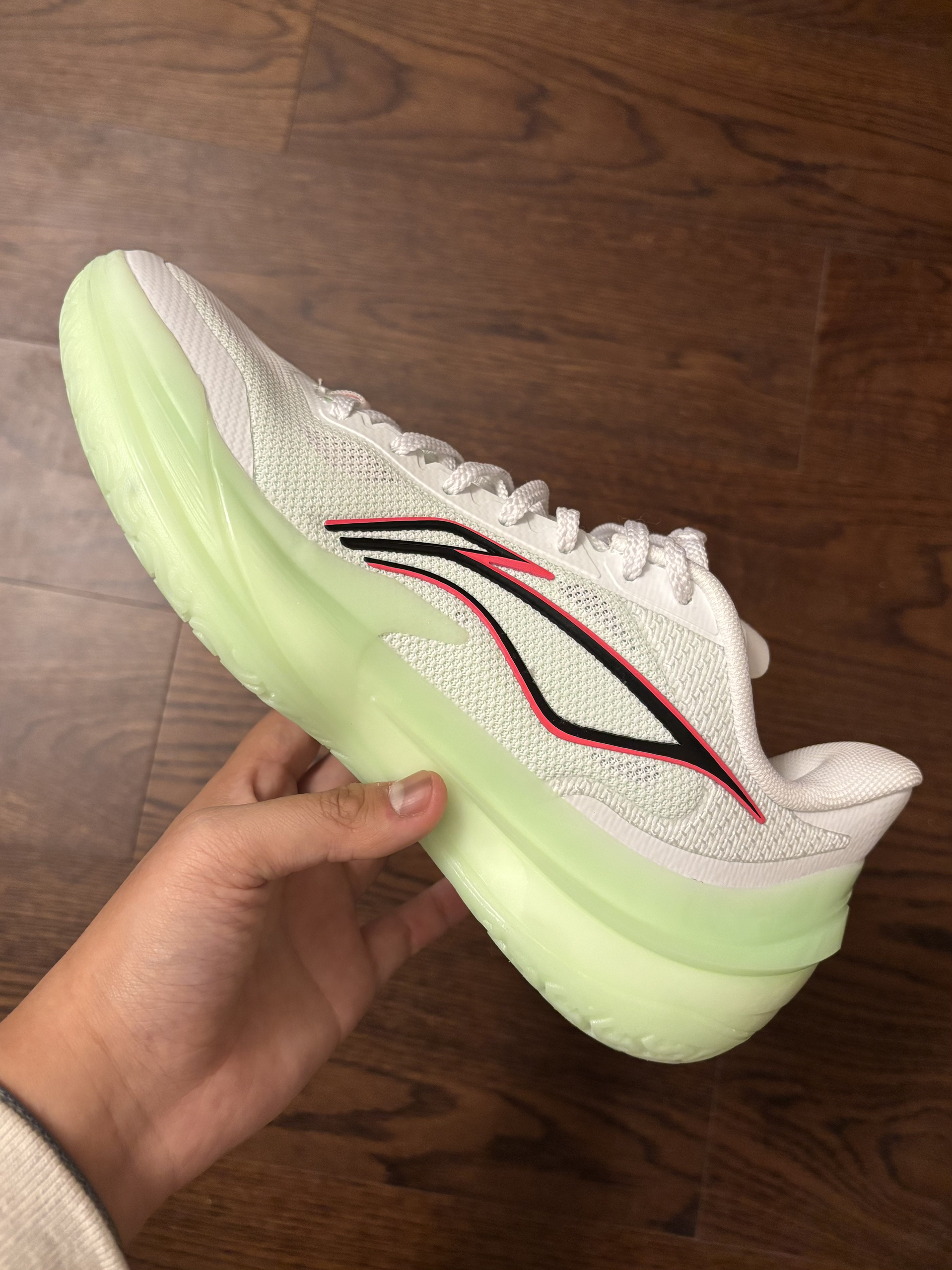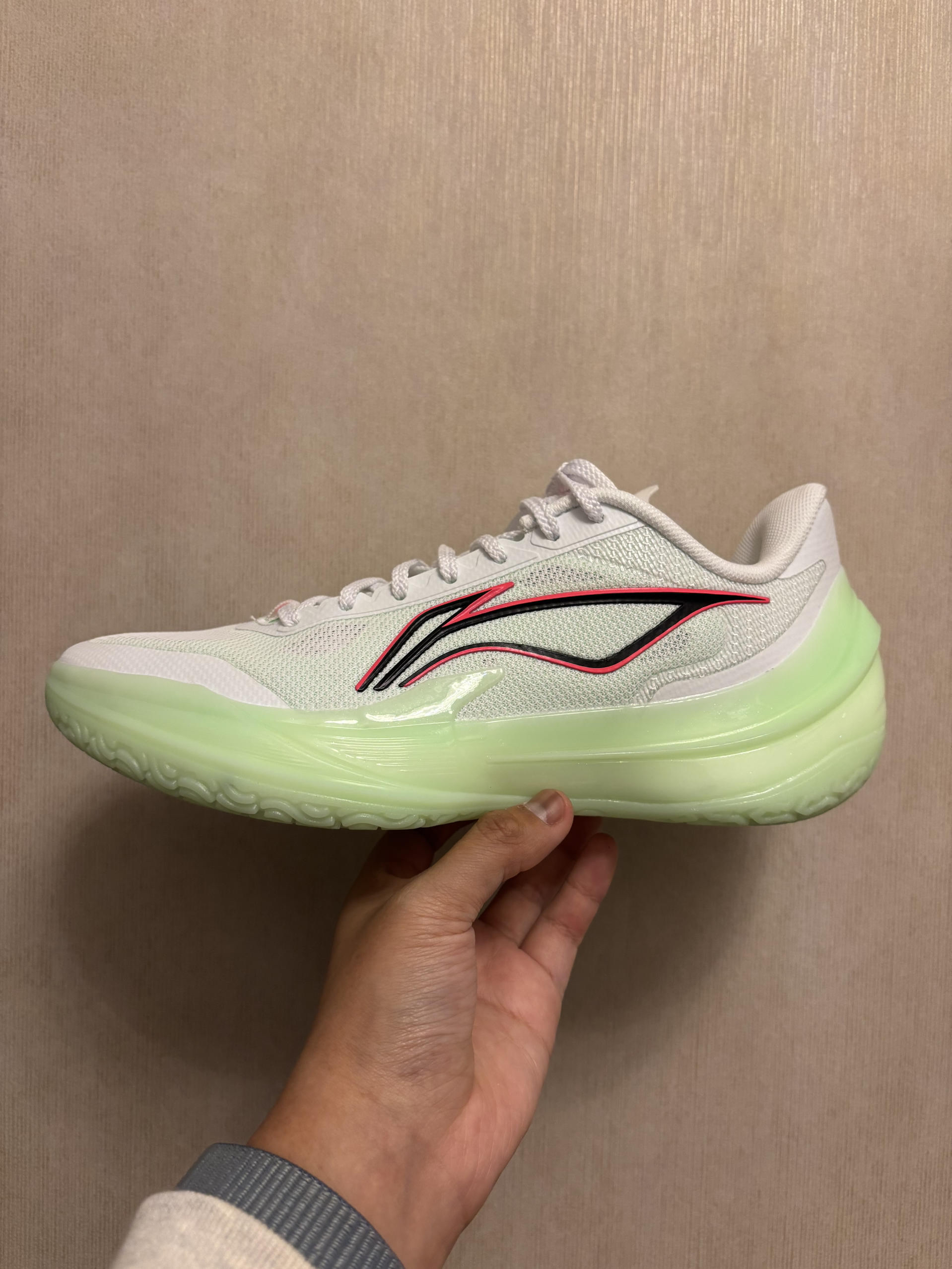 👟球鞋名称:利刃5 v2 🔍分享理由:这双利刃5 V2 春意配色,简直是球场上的“视觉杀器”! 通体浅绿+荧光底的清爽配色,搭配李宁标志性的红黑线条,清爽又带点锐度,夏天上脚直接拿捏球场回头率。鞋面是透气网眼材质,打满全场脚也不闷;中底的䨻科技软弹刚好,启动不卸力、落地不震脚,突破党和射手都能适配。 作为中端实战鞋,它把“轻”和“韧”做到了平衡——单只鞋不到400g,变相时包裹感也能跟上脚步。...