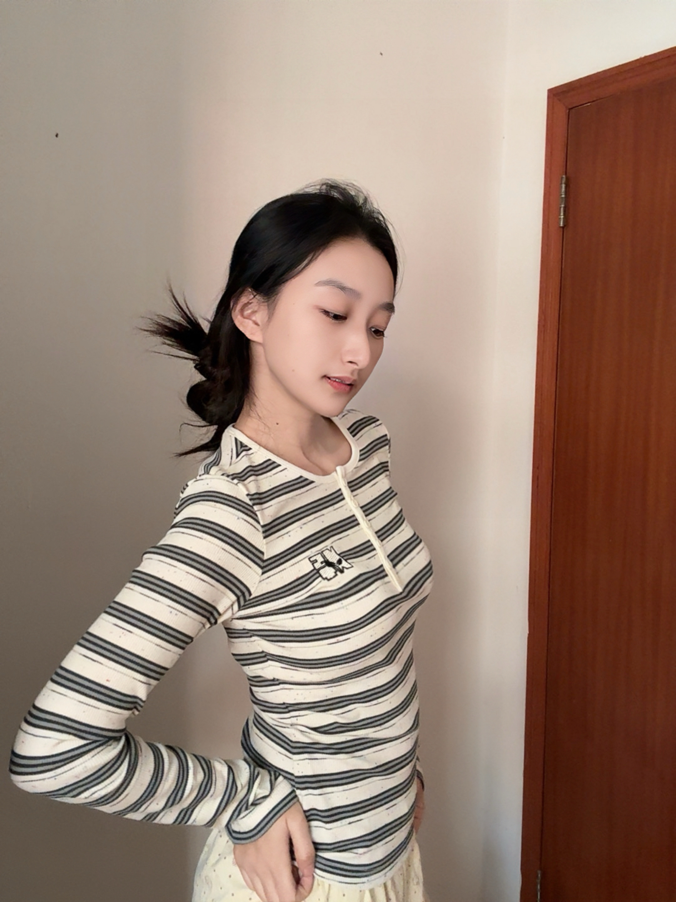 软乎乎的上衣 不扎身 衣面上还有彩色小波点很有特色