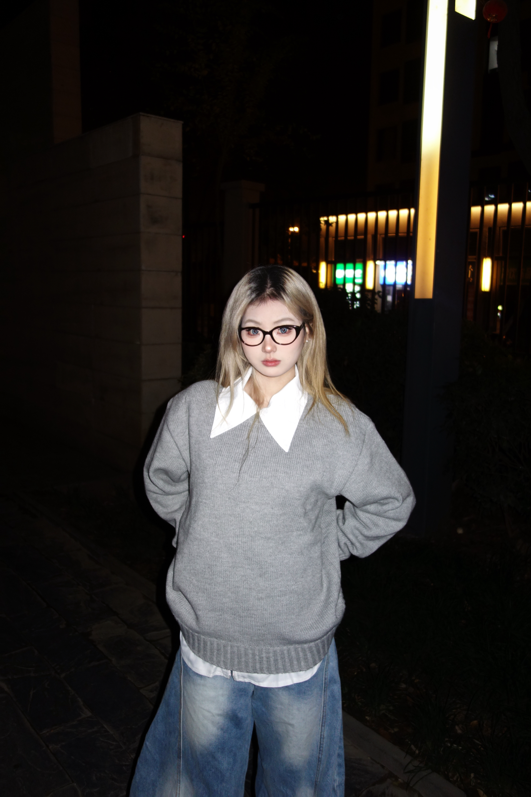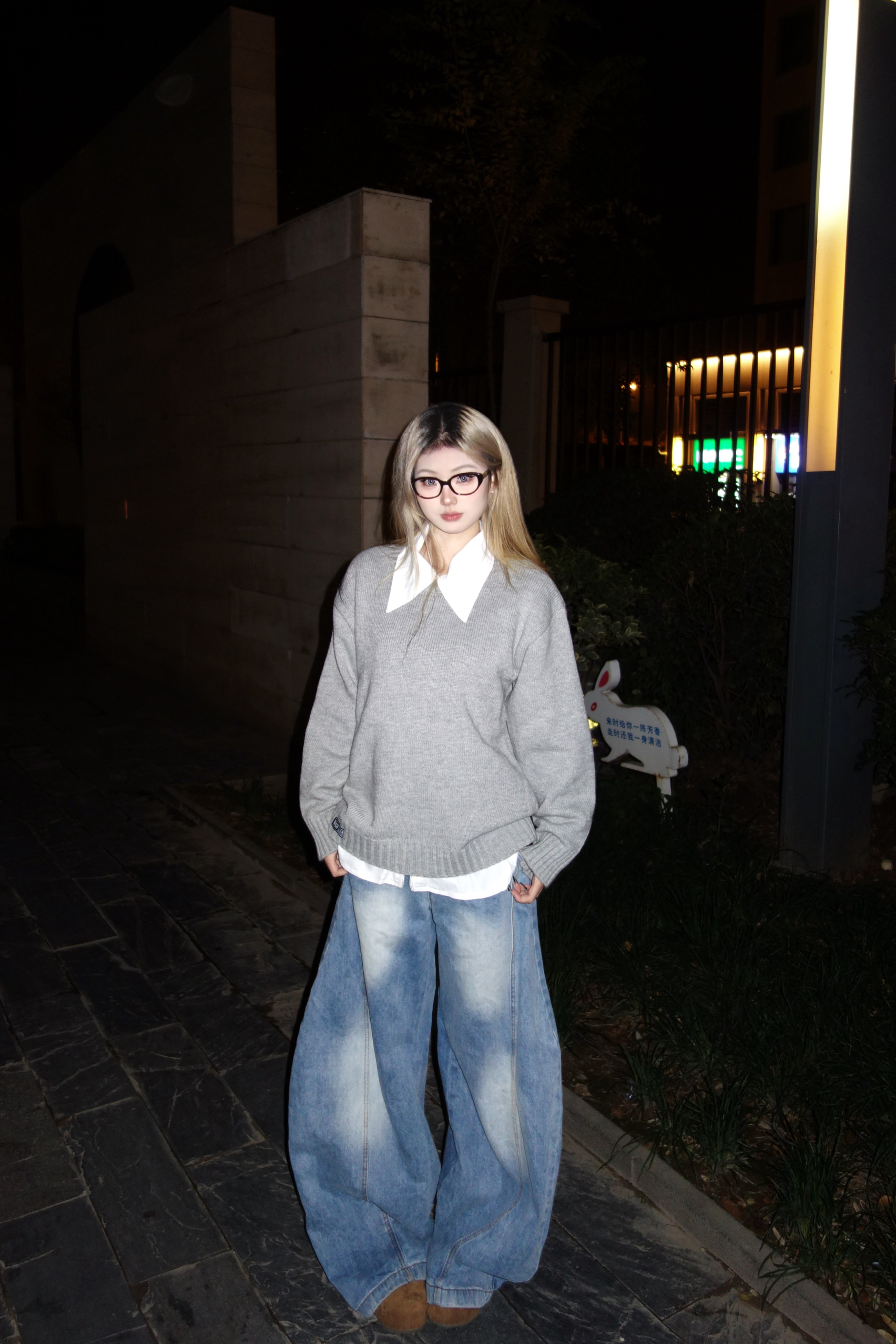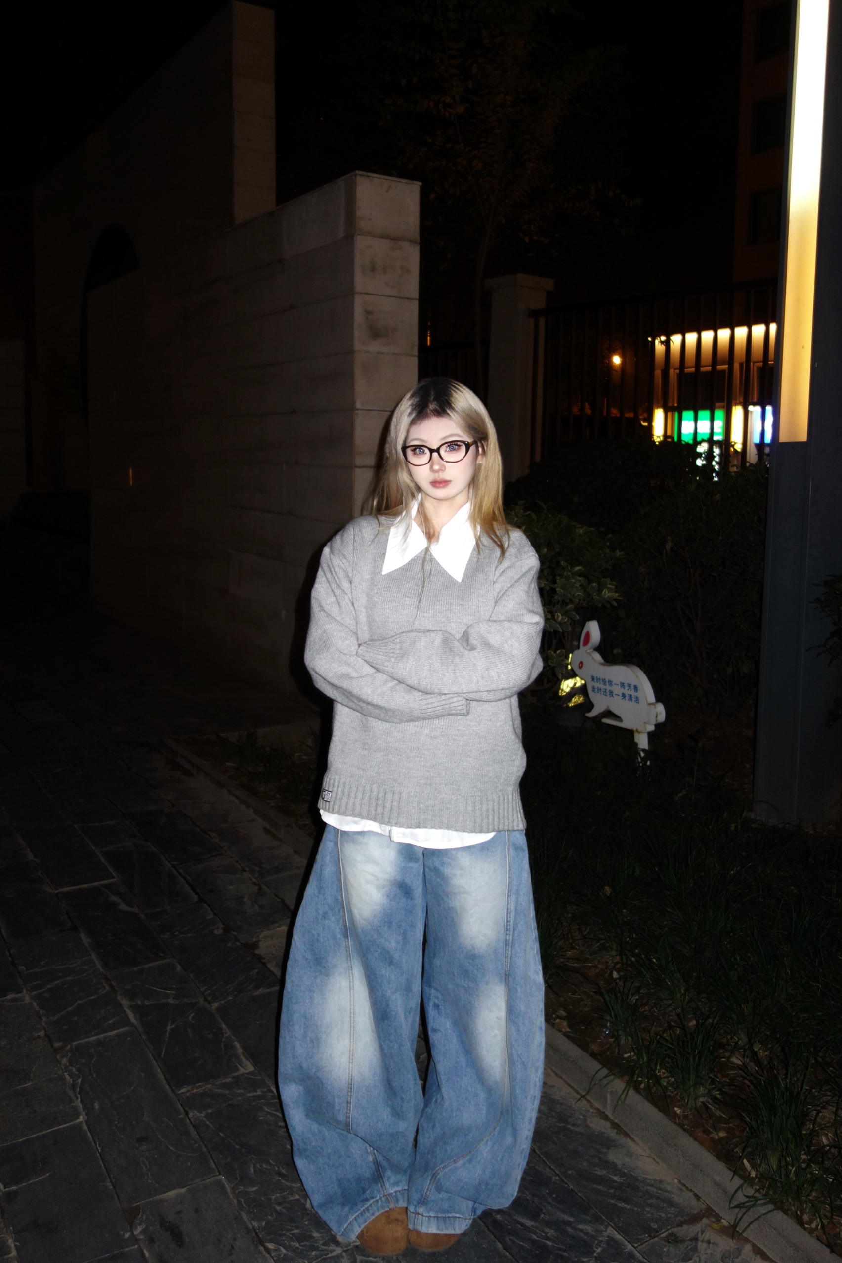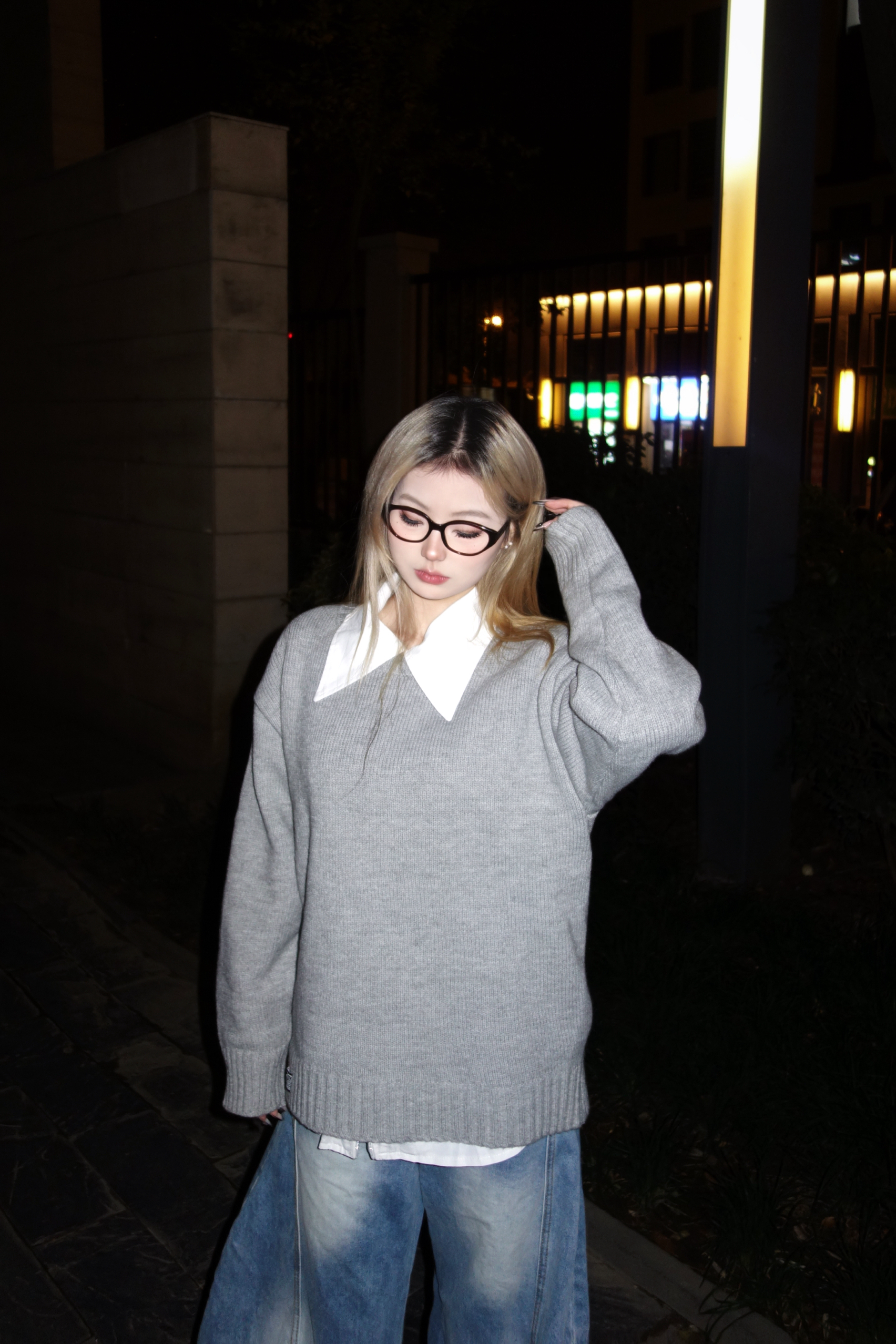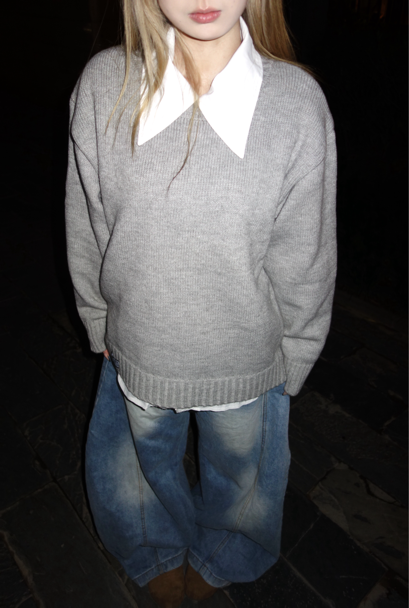 👚:灰色针织毛衣 👖:牛仔弯刀裤 👟:勃肯鞋 今日份cleanfit穿搭 松弛慵懒感满满~ 灰色V领毛衣叠白衬衫 真的是秋日慵懒松弛感作弊器 松垮的灰色毛衣软软糯糯的 搭配夸张的大领口白衬衫 层次感满满哦~ 还能悄悄藏住小肉肉 下装选了超阔的水洗牛仔裤 和毛衣的慵懒感适配度满分 出门这么穿舒服又出片 懒人穿搭党直接抄作业就完事啦~